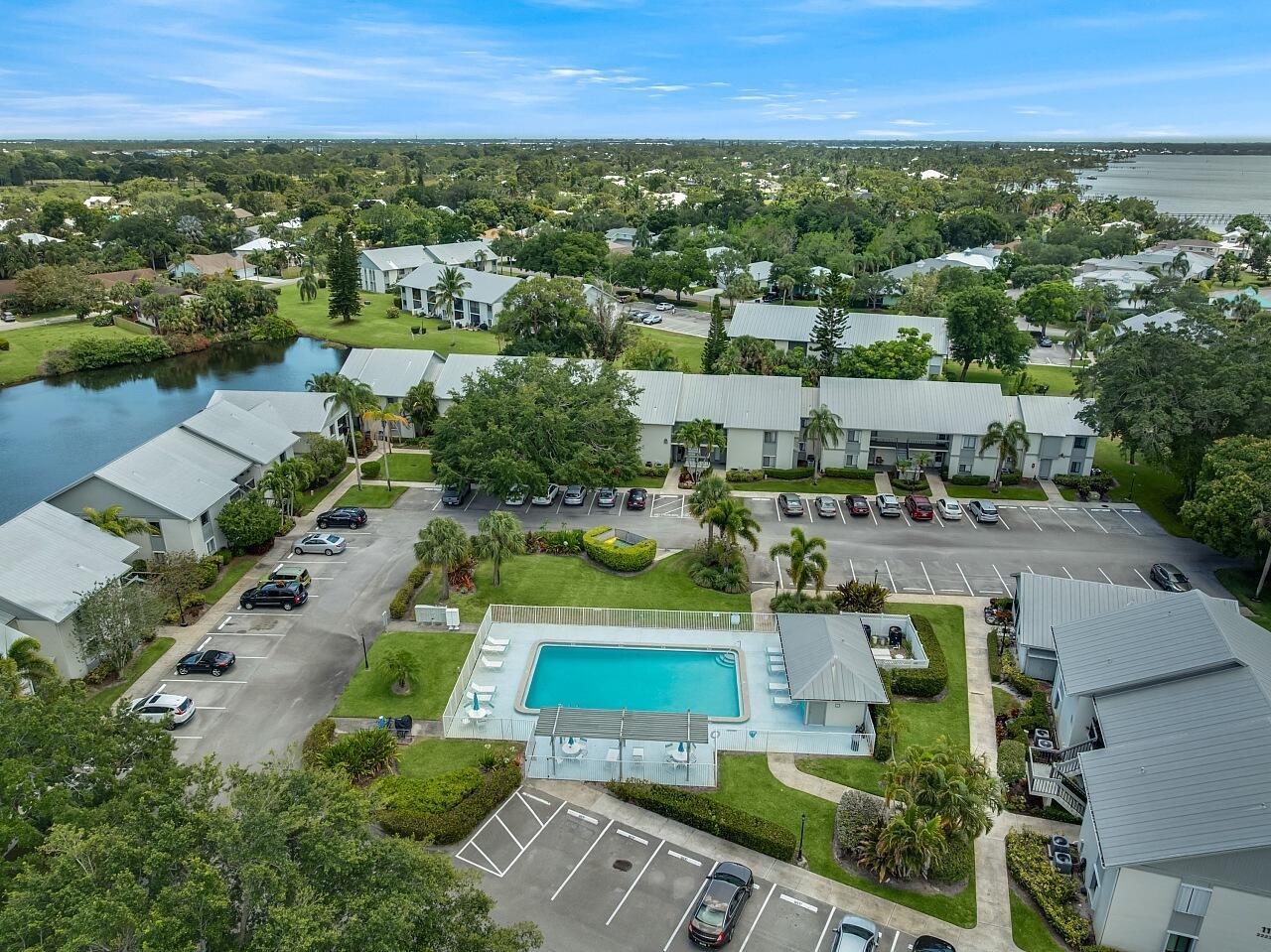 Serene View of Pond & Modern Upgrades Await! Beautifully updated 2BR/2BA condo in the popular, gated Estuary community of North River Shores. This Condo offers sweeping pond views from most rooms. Enjoy watching nature unfold as you relax in your screened-in patio in total tranquility, the living room, kitchen, or main bedroom. The open layout features a remodeled kitchen with 2025 appliances, ample drawers & counterspace, as well as remodeled bathrooms, updated flooring, & fresh paint throughout. This waterfront community includes two pools, a clubhouse, tennis courts, & scenic riverfront walks. Pet-friendly & close to beaches, boating, golf, shopping, dining, & vibrant Downtown Jensen Beach & Stuart. Rentals allowed: 3-month minimum, twice per year. 1 pet up to 25 lbs