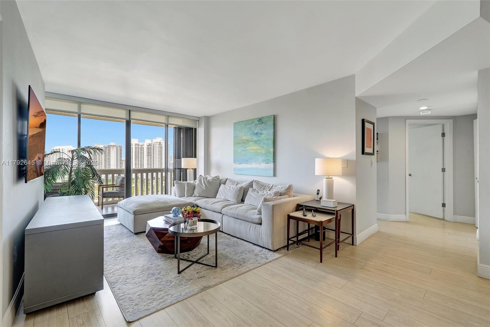 RENOVATED 2 BED /2 BATH UNIT WITH WOOD FLOORS THROUGHOUT. UPDATED KITCHEN WITH STAINLESS STEEL APPLIANCES, QUARTZ COUNTERTOPS, SMOOTH CEILINGS, HURRICANE SHUTTERS. OVERSIZED MASTER BEDROOM. BEAUTIFUL VIEWS FROM 2 TERRACES. SOUGHT AFTER BUILDING WITH REMODELED LOBBY AND COMMON AREAS: LIBRARY, GYM, MOVIE THEATER, CARD AND GAME ROOM. LIVE IN PRESTIGIOUS WILLIAMS ISLAND WITH FULL AMENITIES: 15 TENNIS COURTS, 4 PICKLEBALL COURTS, 4 DINING OUTLETS .... (NEW COMMUNITY POOL AND DINING AREAS OPENED MAY 2025) , STARBUCKS, STATE OF THE ART SPA, MARINA, WALK/JOG PATH, KIDS PLAYGROUND, COURTESY BUS, SYNAGOGUE, AVENTURA CHARTER SCHOOLS & MUCH MORE...BUILDING ALLOWS SELF PARKING