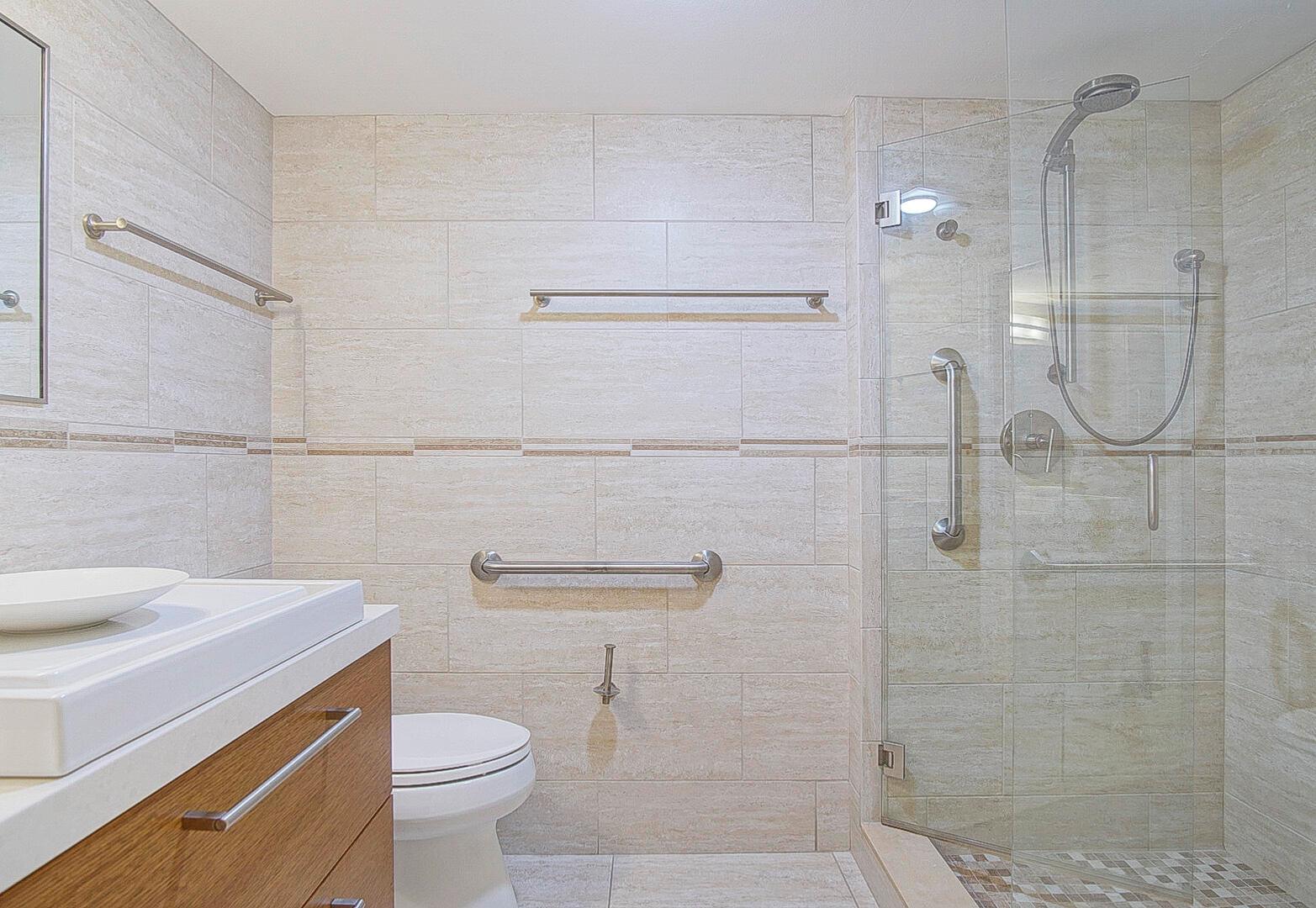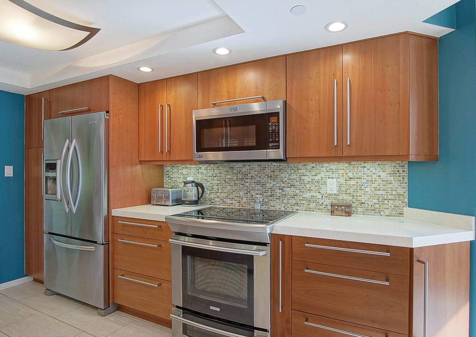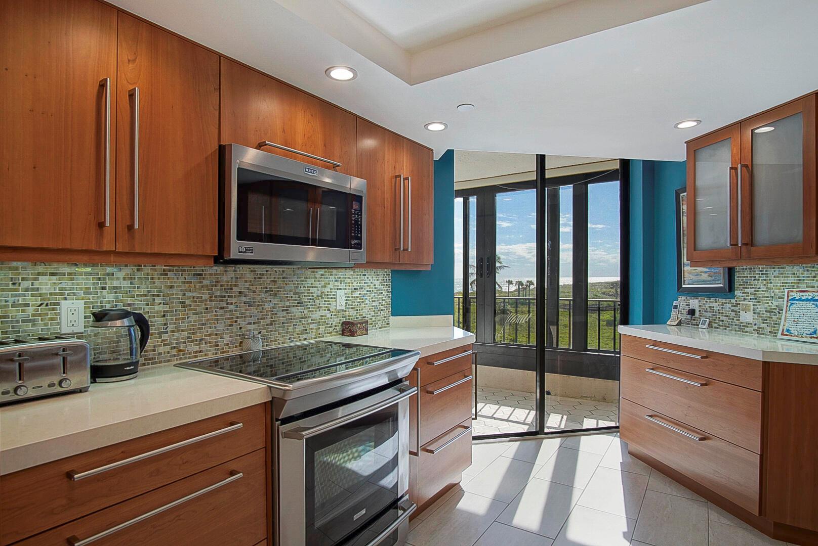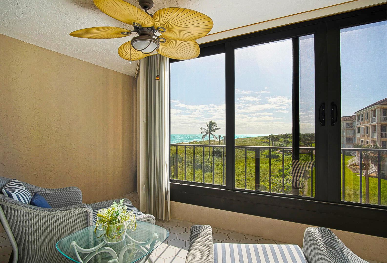 Absolutely stunning 4th floor, TURNKEY ocean view condo, 2 bed/2 bath, features 100% impact glass, beautifully remodeled kitchen and both baths, teakwood furniture, newer HWH and AC, new appliances including an induction stovetop, and garage located close to the beach cross over. Centrally located to the majority of OV's amenities. Great rental income potential as well! Enjoy beautiful Ocean Village and the many amenities it has to offer including 3500 feet of private beach, 9-hole 3 par golf course, bocce ball, shuffle board, tennis, multiple pools, hot tub, sauna, pickleball, new fitness center, new on site restaurant, resort style main pool and tiki, 24 hour gated community and close proximity to the Jetty and historic downtown Ft. Pierce.