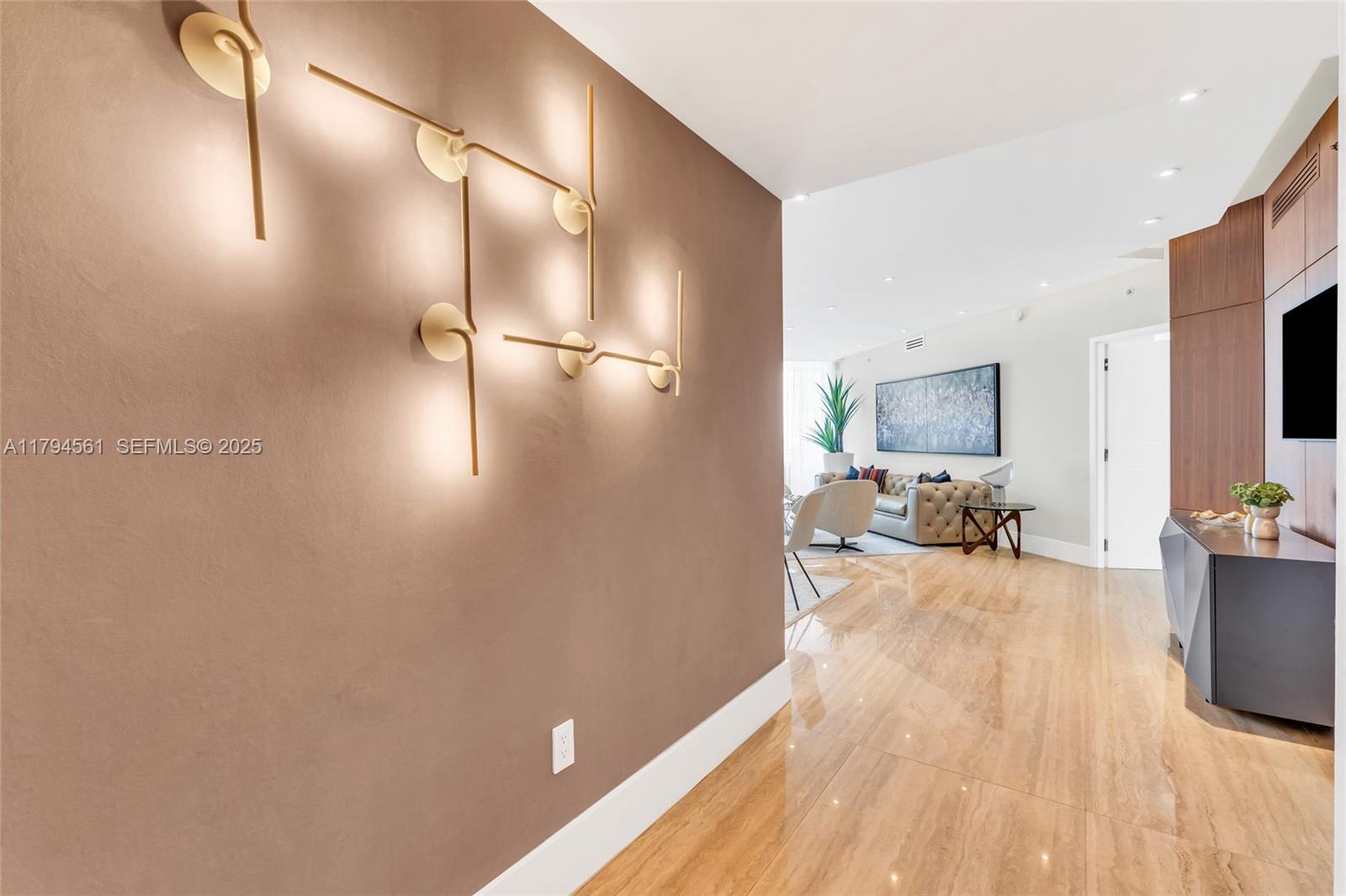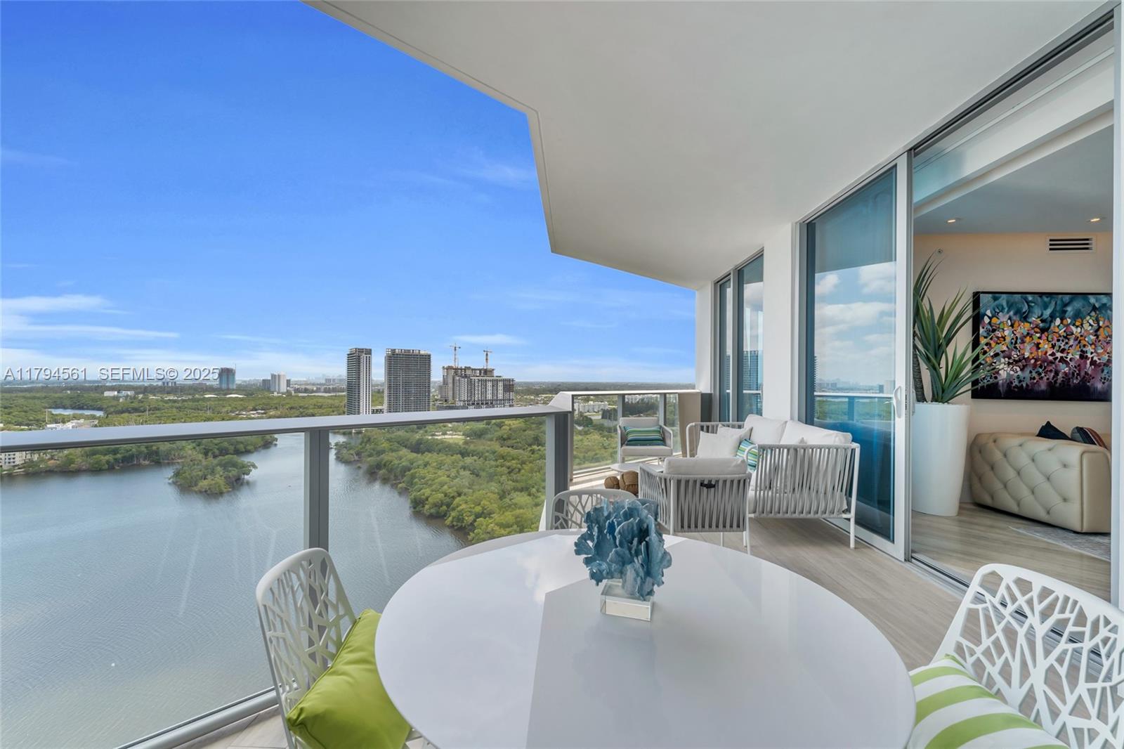 Mesmerizing water views from every room & a private, draping 22nd floor balcony define this special & exquisitely furnished 2BD + den, 3BA. 2017 security bldg. Professionally decorated with beautiful finishes, 5 built in TV’s, every inch has been thoughtfully upgraded, from ambient lighting to thick custom doors. The elegant European kitchen, high-end appliances, & built-out closets elevate the living experience. Enjoy 9.2' ceilings, two parking spaces with Tesla charger, & indulge in luxurious amenities: infinity-edge pool, spa, fitness center with classes & a private marina to rent or park a boat! Minutes away from Aventura Mall and fine dining.