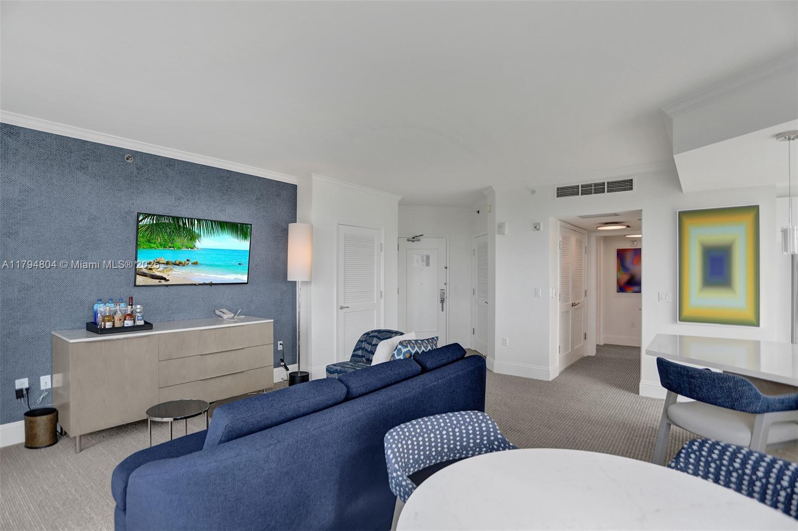 Enjoy full service, vacation-style living in this newly remodeled furnished turnkey corner unit at the Fontainebleau II / Tresor. Offering floor to ceiling glass windows, 2 private balconies, spacious living room with sleeper sofa, open kitchen layout, king bed in master bedroom with walk in closet, washer/dryer & more. Enroll in hotel rental program & receive income while away! The Fontainebleau Resort offers luxury amenities on 22 oceanfront acres including award-winning restaurants, LIV night club, Lapis spa & state-of-the-art fitness center. Maintenance fees include: AC, electricity, valet + daily free breakfast in the owners lounge. Click the virtual tour link to see video of property.