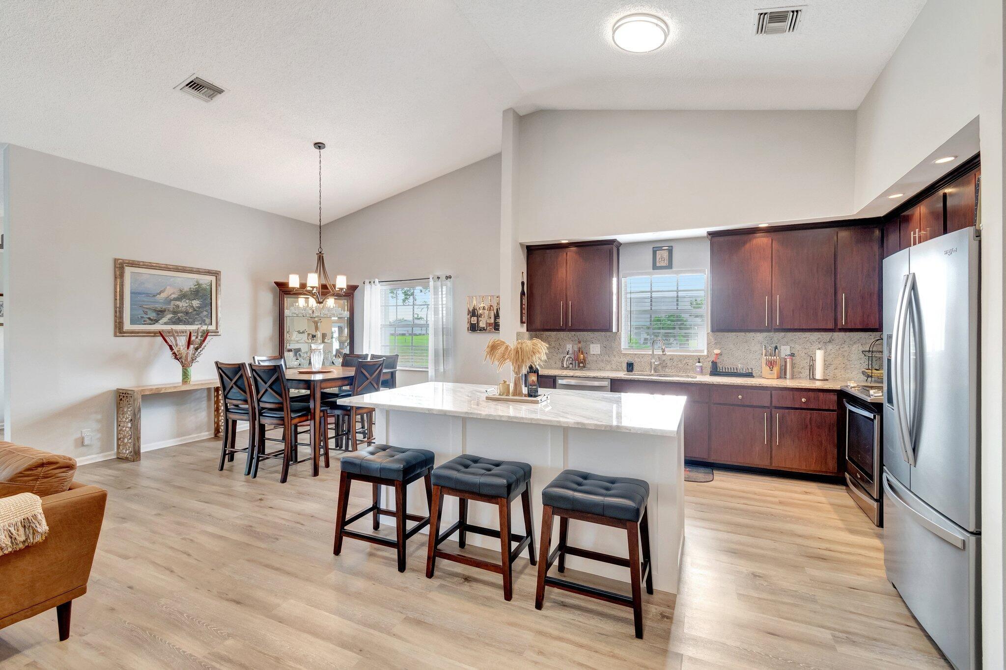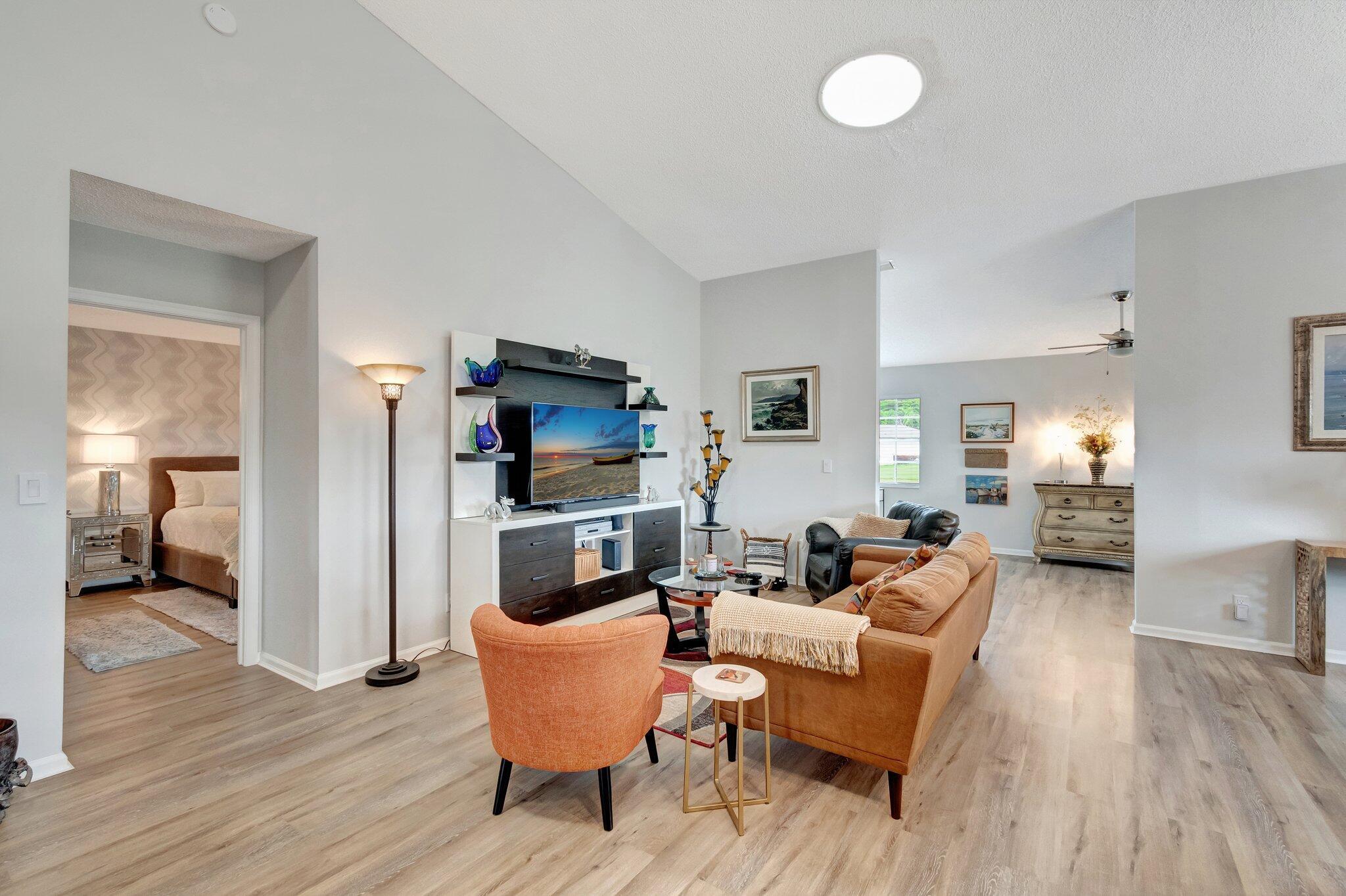 Beautiful home in the most desirable location. , Sunny and bright with open golf course vistas. This renovated home offers 2 bedrooms 2 bath plus, a den with queen-size murphy bed that can easily be turned into a 3rd bedroom, + 2 car garage. Vaulted ceilings and open floor plan that flows seamlessly from kitchen, marble countertop island into the living and dining areas.The den extends the width of the main area and continues into the Florida room that's airconditioned and it features hurricane impact doors with access to the patio, as well as sliding doors that lead into the main bedroom. Cypress Lakes is an Active Adult community with 18-hole golf course, swimming pool, hot tub, saunas, gym, tennis and pickle ball courts. So much more ..a must see.