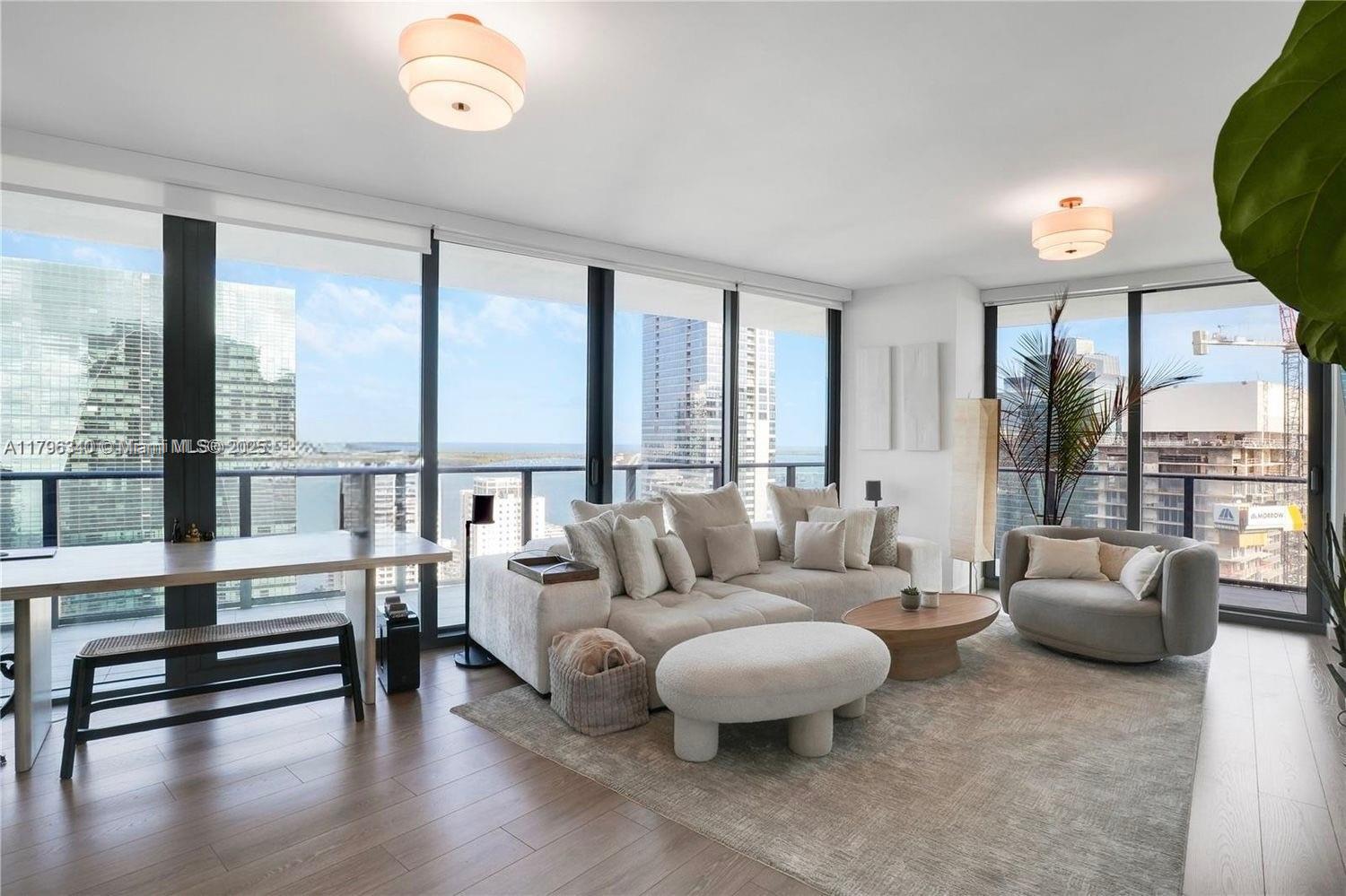 This elegant corner unit offers breathtaking views of the Miami skyline and Intracoastal Bay from a wraparound balcony. Designed by Philippe Starck, the interior exudes luxury, complemented by premium Bosch appliances in the kitchen. Residents enjoy top-tier amenities, including a rooftop pool, spa, fitness center, and five-star dining on the ground level. Located steps from Mary Brickell Village and Brickell City Centre, with easy access to Brickell Avenue and I-95, this home offers unparalleled convenience for both work and leisure.