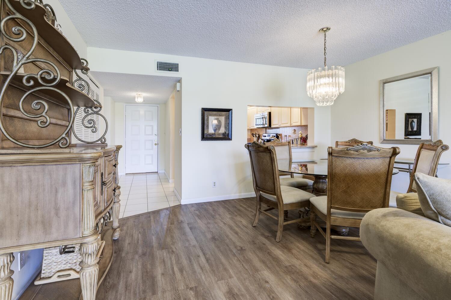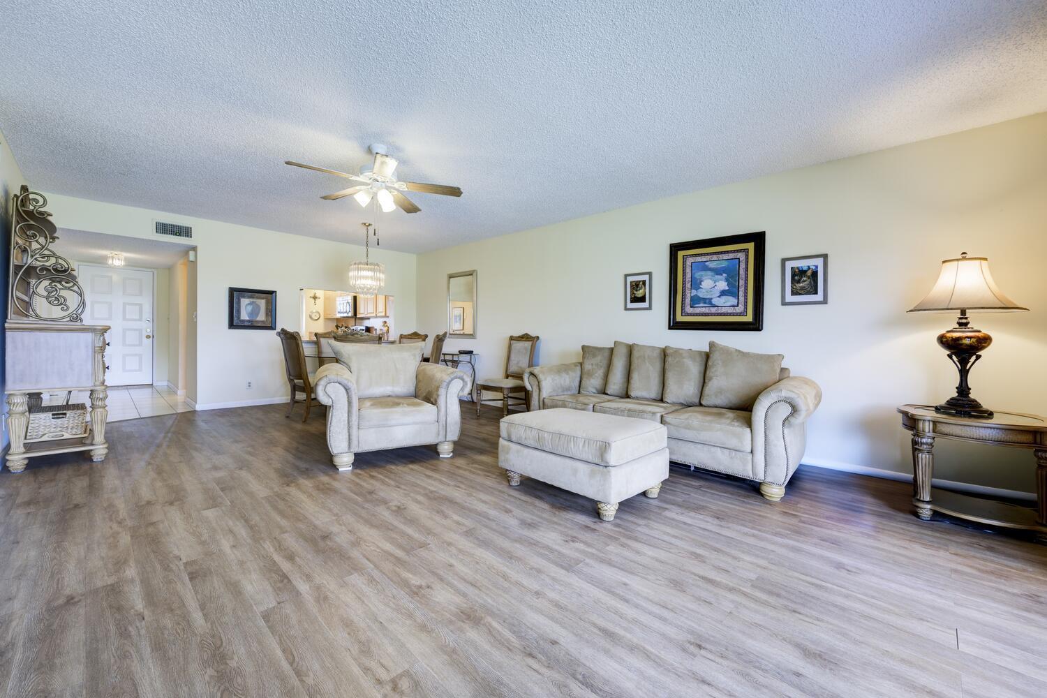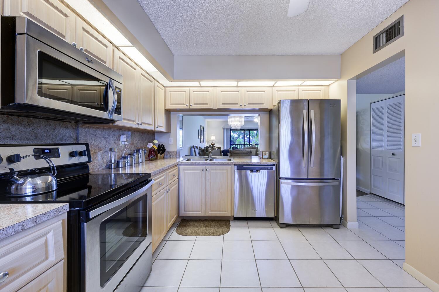 Wake up to stunning lake, golf course, and country club views in this beautifully updated 2-bedroom, 2-bath second-floor condo in the desirable Pinewood Condos within the Eastpointe community. From the moment you step inside, you'll be drawn to the bright, open layout where the kitchen flows seamlessly into the living space and out to a screened balcony--perfect for morning coffee or evening sunsets overlooking the water.This home has been thoughtfully upgraded for comfort and peace of mind, featuring:* Flooring updated in 2021 (Floor & Decor)* Kitchen cabinet refacing, new counters, and backsplash in 2015 (FL Cabinet Refacing)* Stainless steel appliances including refrigerator, range, microwave, and dishwasher (2016)