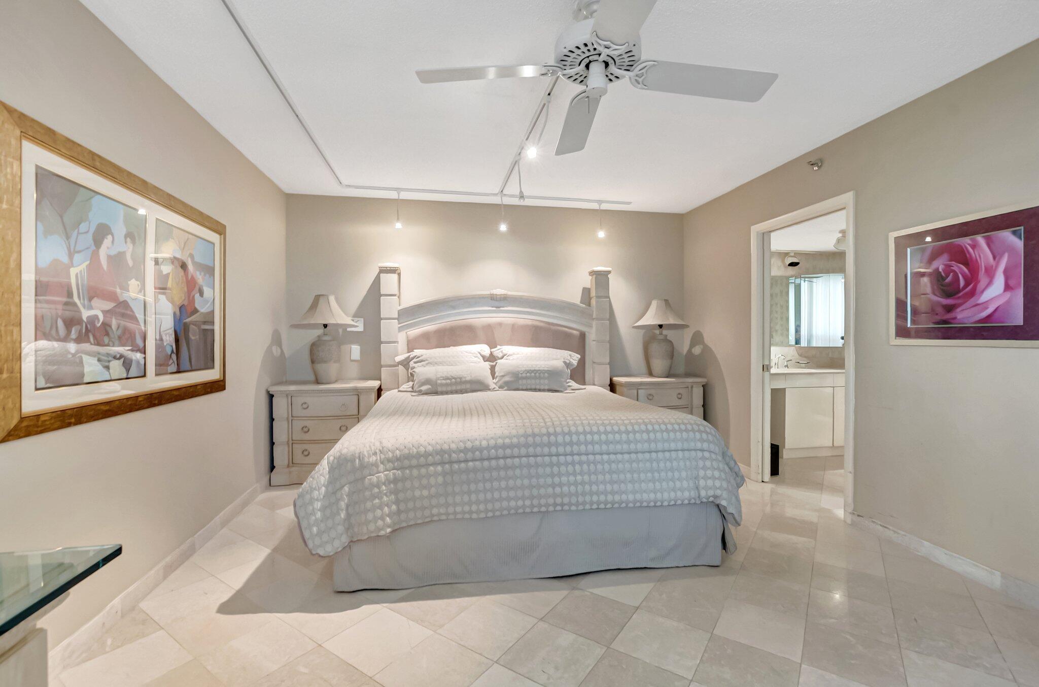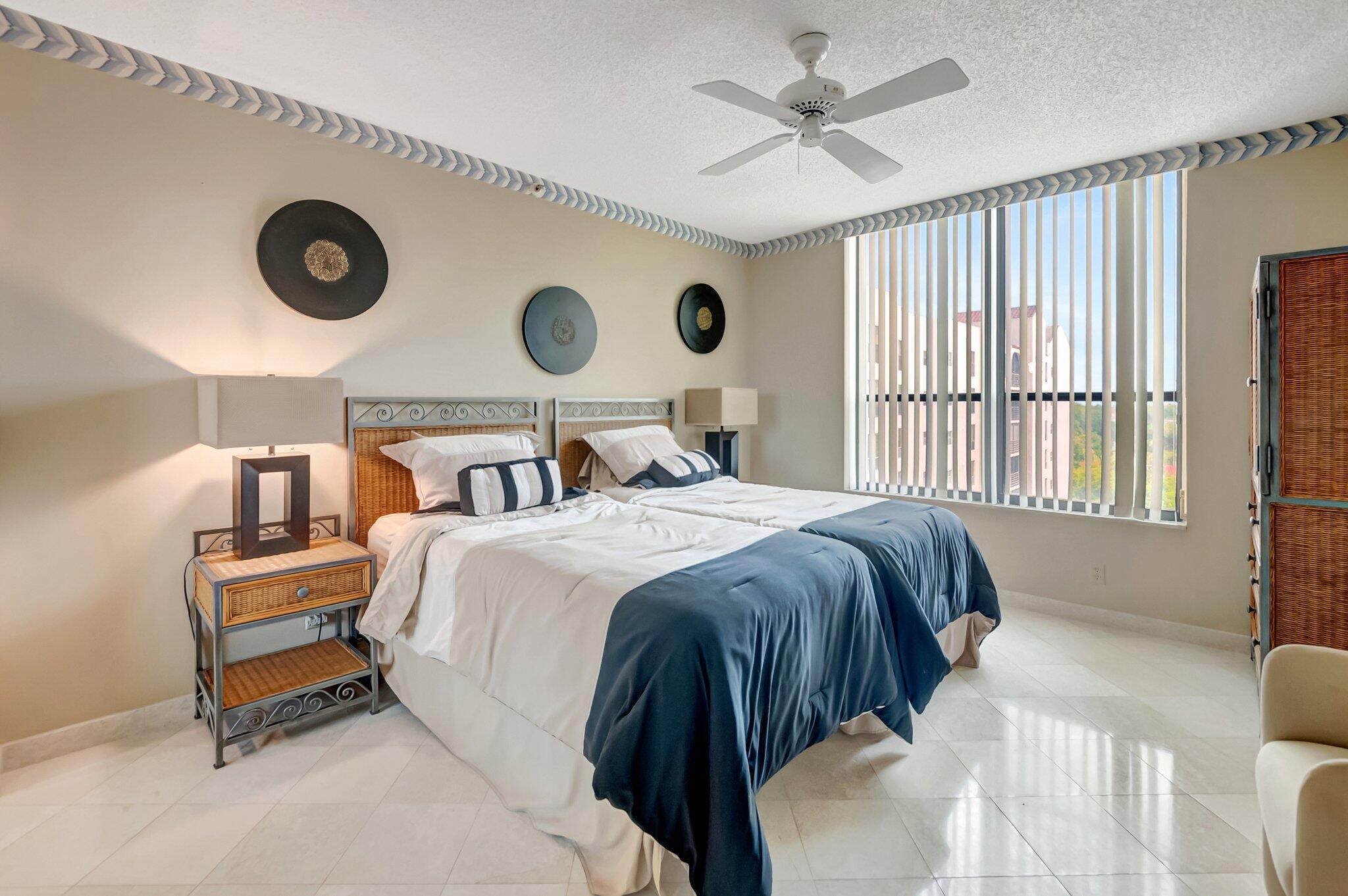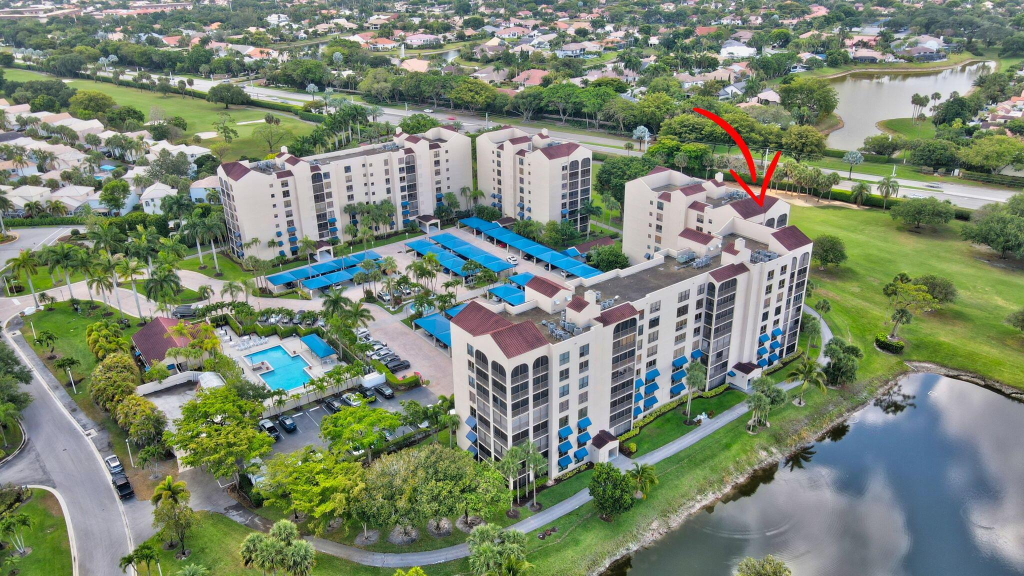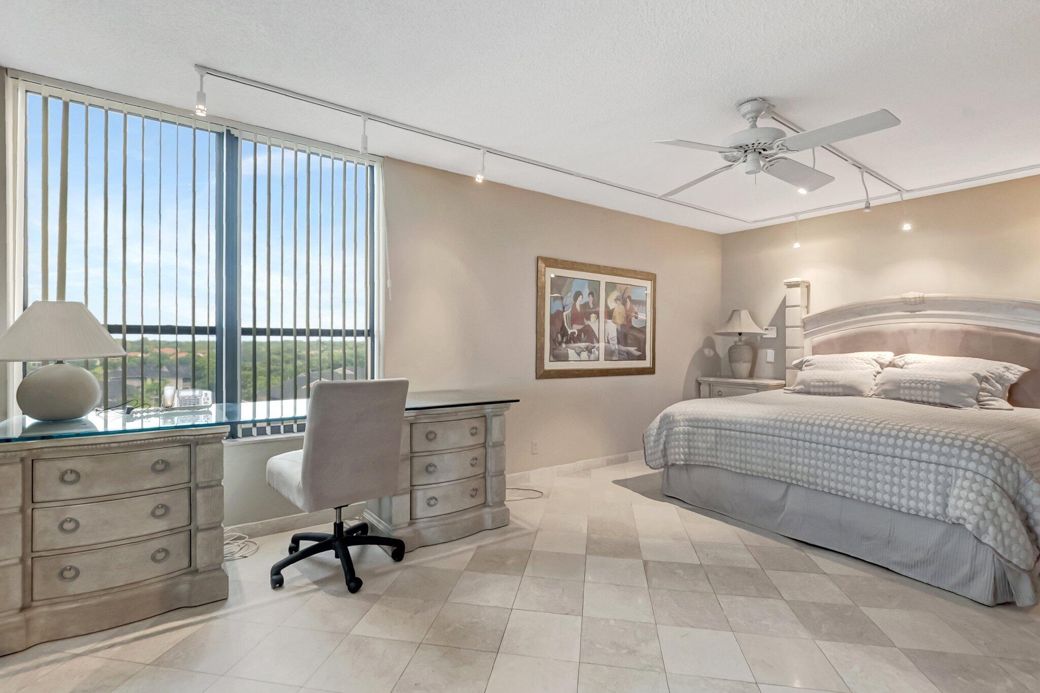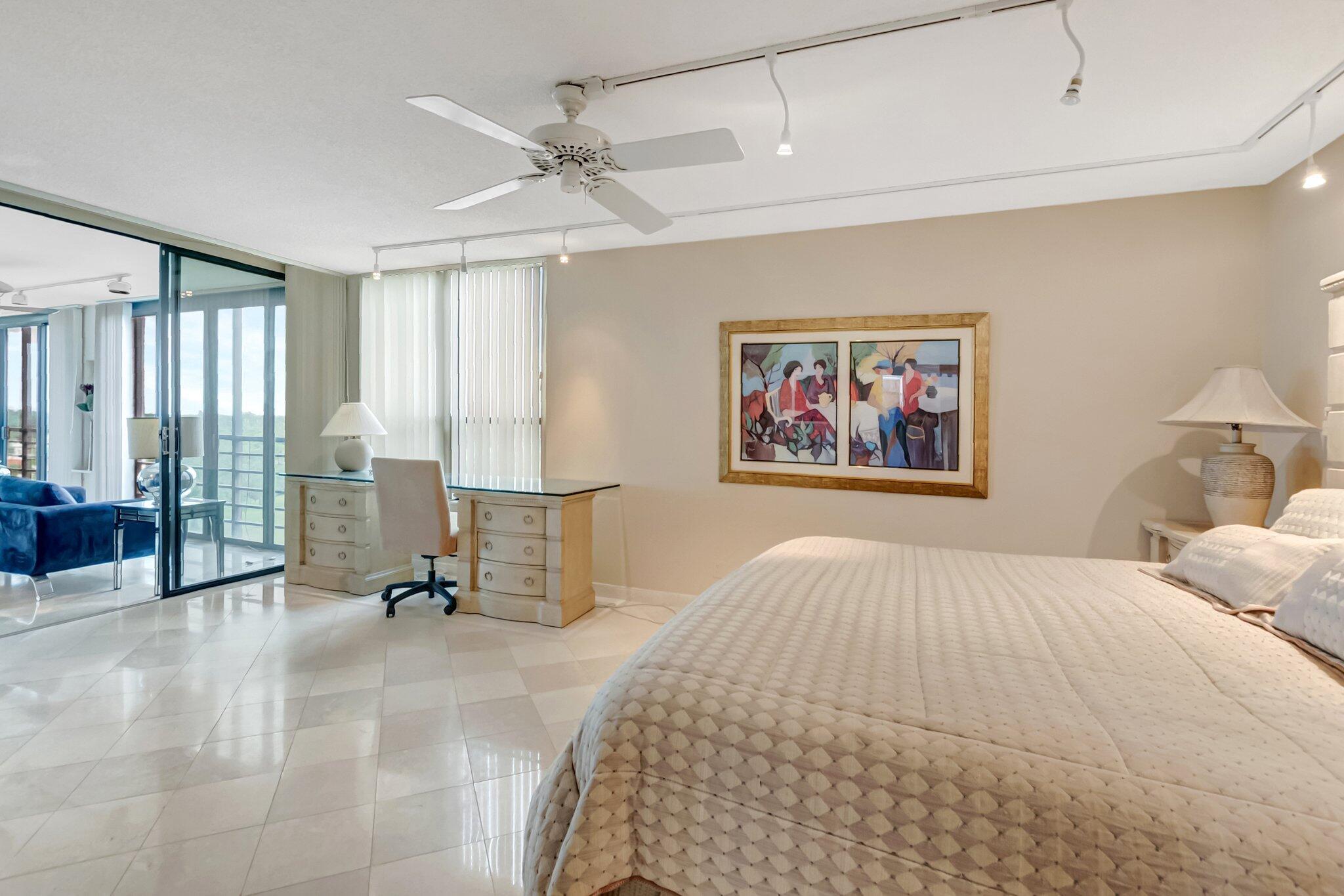 Stunning fully expanded Regency Model with Panoramic Views! This high-floor 3 bedroom 2.5 bath residence features a fully enclosed and expanded wraparound glass-enclosed patio for additional living space with impact glass doors, showcasing spectacular golf and water views with sought-after southwest exposure. Enjoy elegant marble flooring throughout and smooth ceilings in the main living areas for a sleek, modern feel. Custom built-in closets offer exceptional storage, including an additional closet in the living room. Sold fully furnished and move-in ready! Includes two assigned covered parking spaces--a rare bonus. Community features pool, community room and 24 hour manned gate.