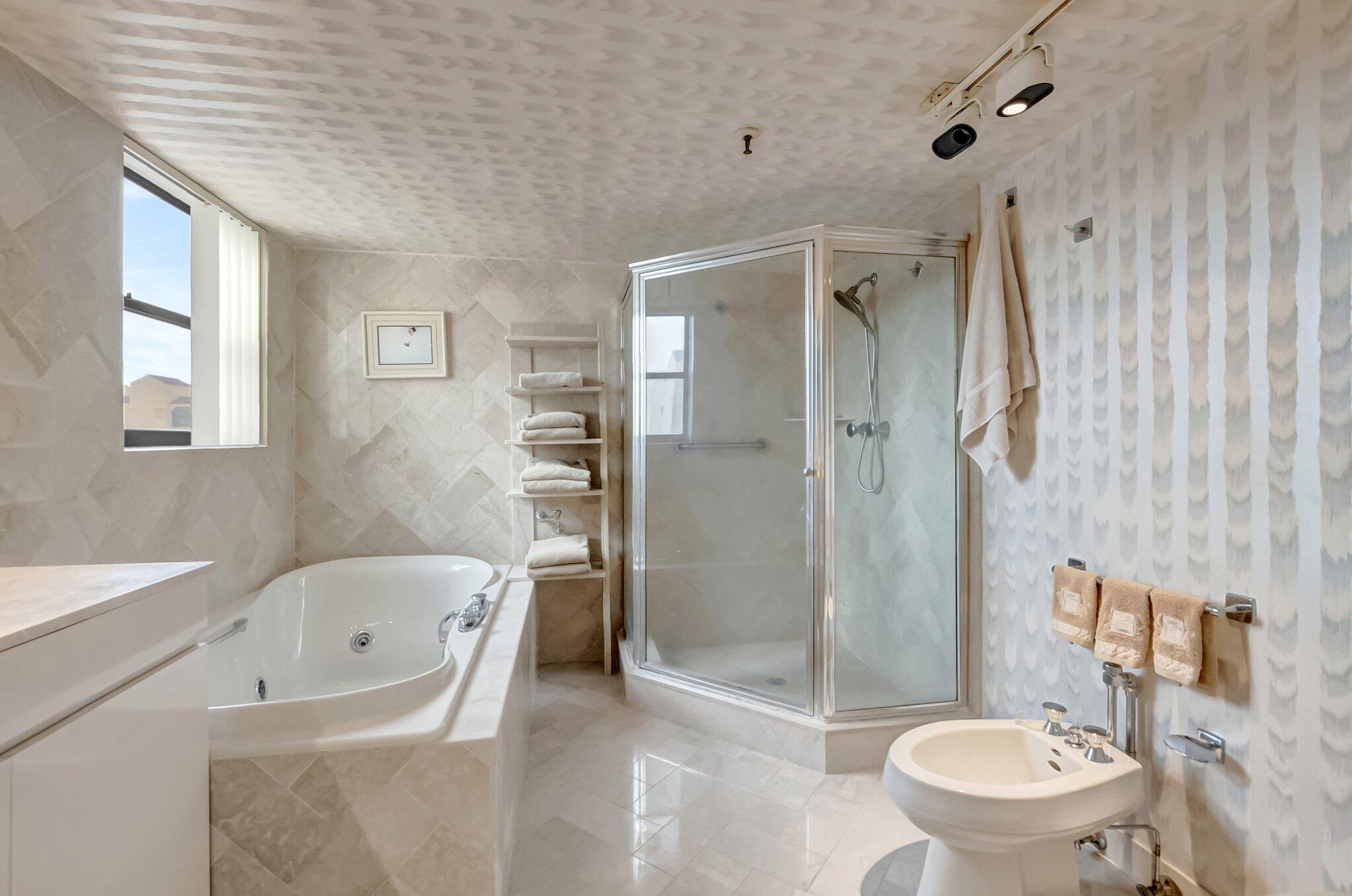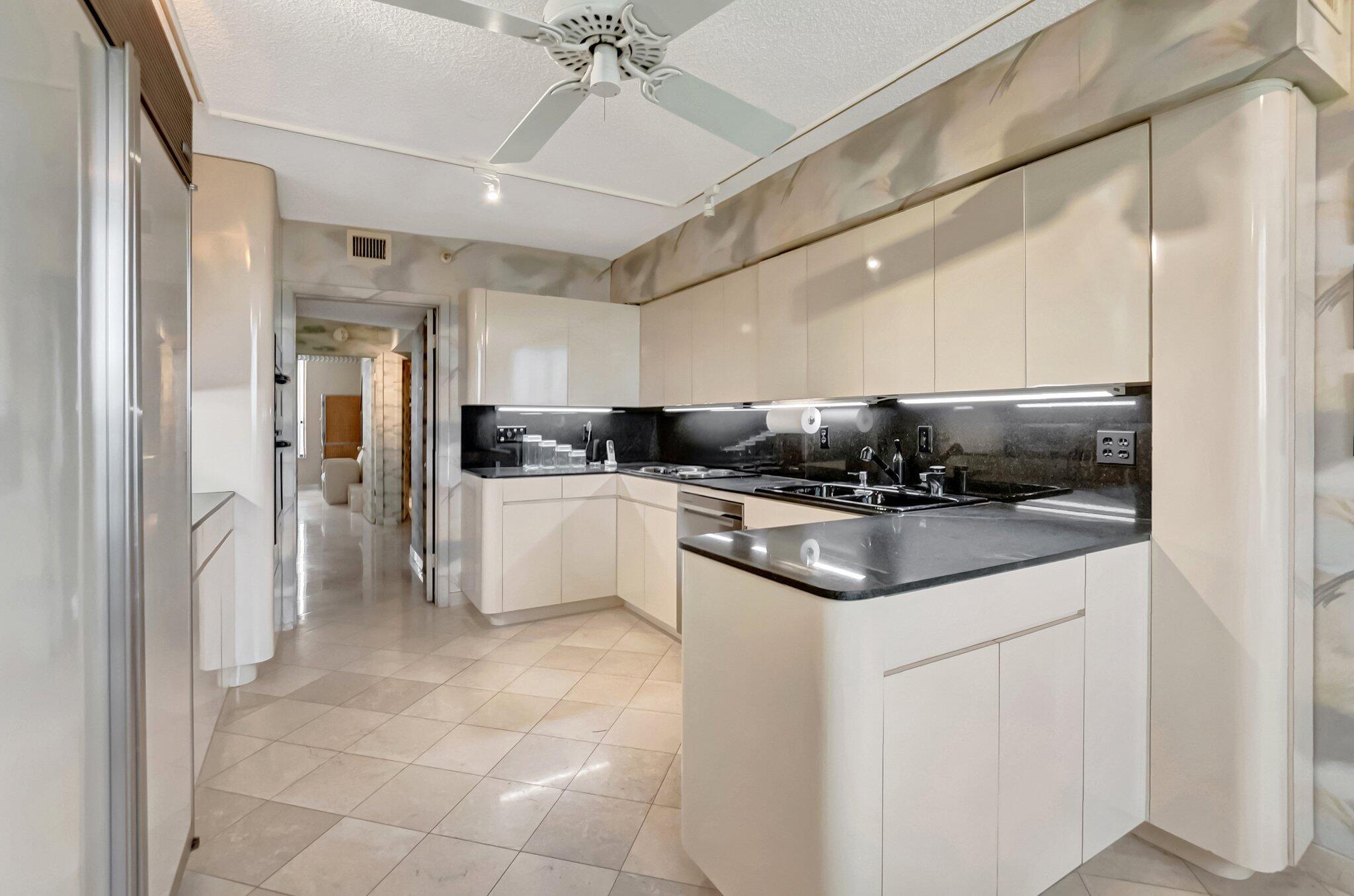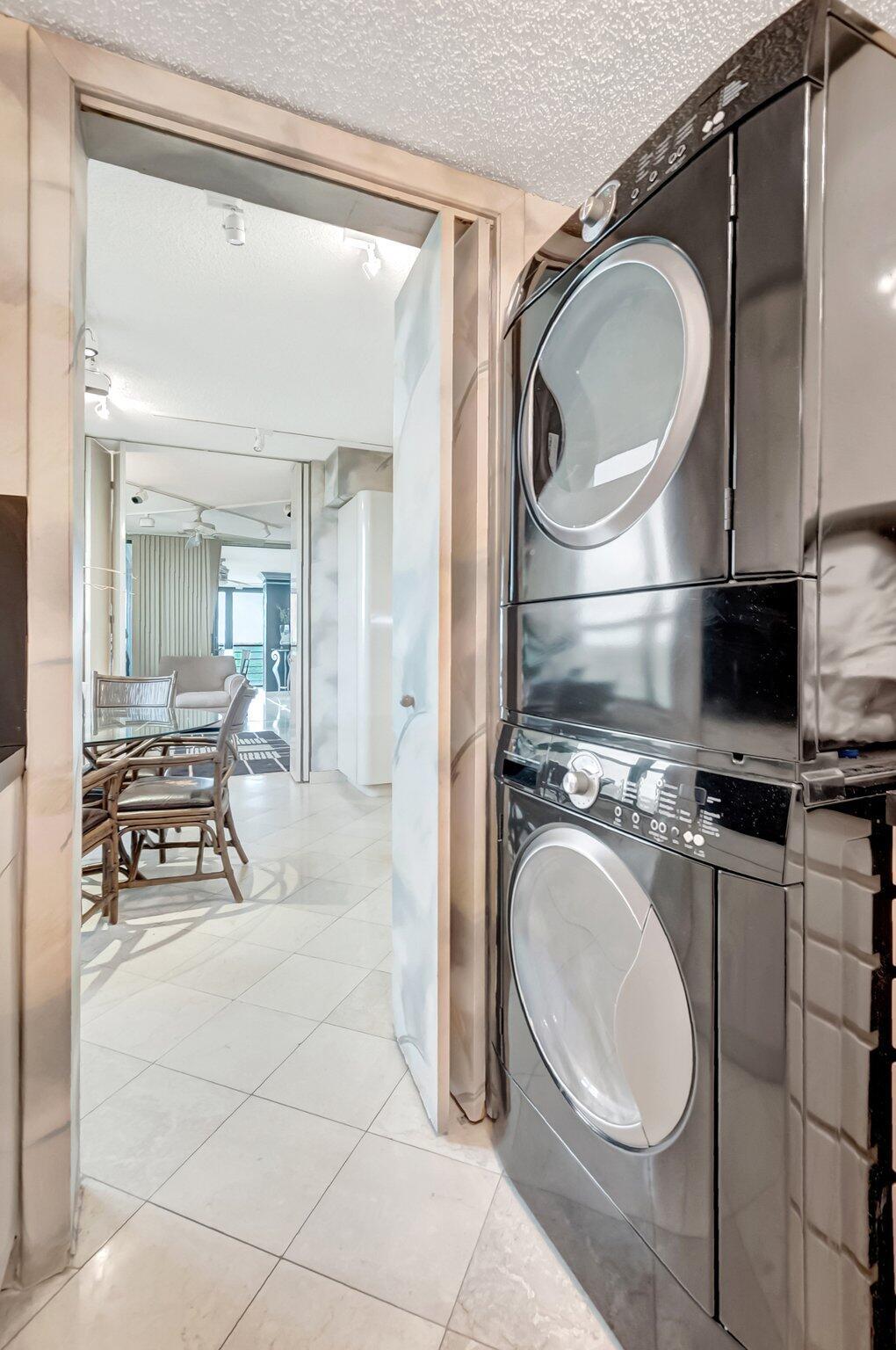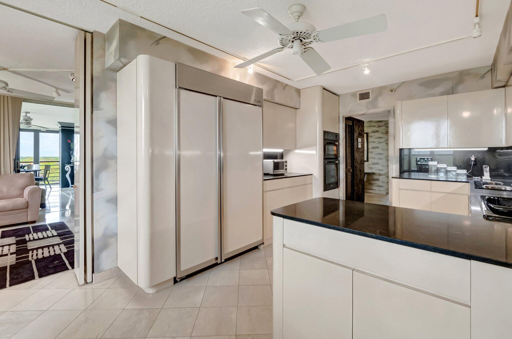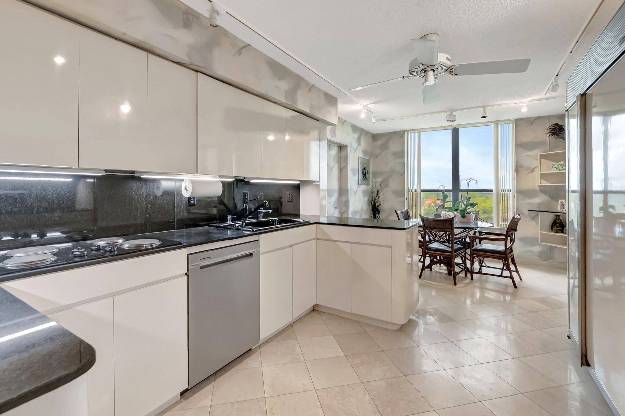Stunning fully expanded Regency Model with Panoramic Views! This high-floor 3 bedroom 2.5 bath residence features a fully enclosed and expanded wraparound glass-enclosed patio for additional living space with impact glass doors, showcasing spectacular golf and water views with sought-after southwest exposure. Enjoy elegant marble flooring throughout and smooth ceilings in the main living areas for a sleek, modern feel. Custom built-in closets offer exceptional storage, including an additional closet in the living room. Sold fully furnished and move-in ready! Includes two assigned covered parking spaces--a rare bonus. Community features pool, community room and 24 hour manned gate.