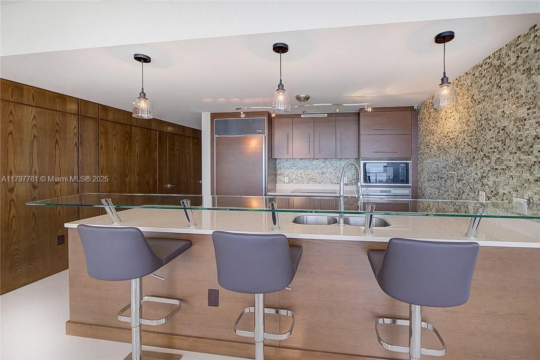 Experience the pinnacle of luxury, breathtaking, unobstructed bay and ocean views that showcase the best of Brickell. This stunning residence is decorated with custom finishes, exuding elegance from the moment you step inside. The primary suite boasts floor-to-ceiling doors open to an oversized balcony with panoramic bay views. Enjoy the luxury of double walk-in closets with custom-built-ins, a lavish bathroom with a separate tub, shower, bidet, and double sinks. The secondary bedrooms offer a private suite with amazing views, and a full bathroom. The European gourmet kitchen shines with stainless steel appliances and ample storage. Icon offers a resort-style variety of amenities. In the heart of Brickell, steps away from parks, restaurants, shopping, short drive to beaches, and more.