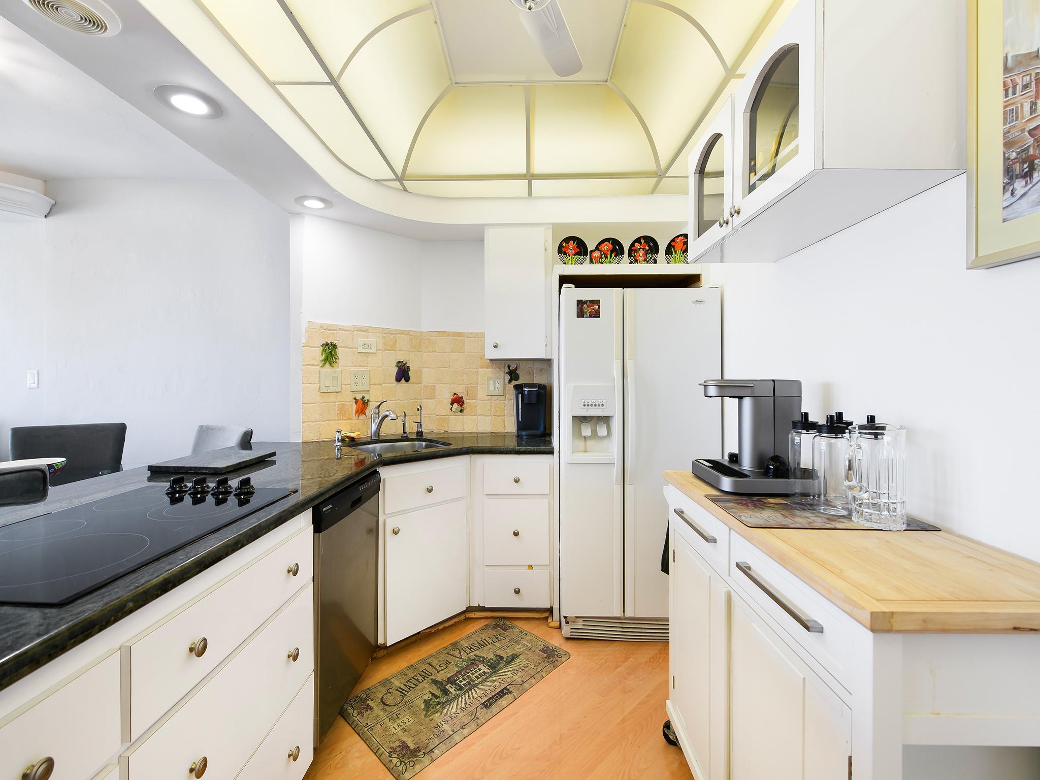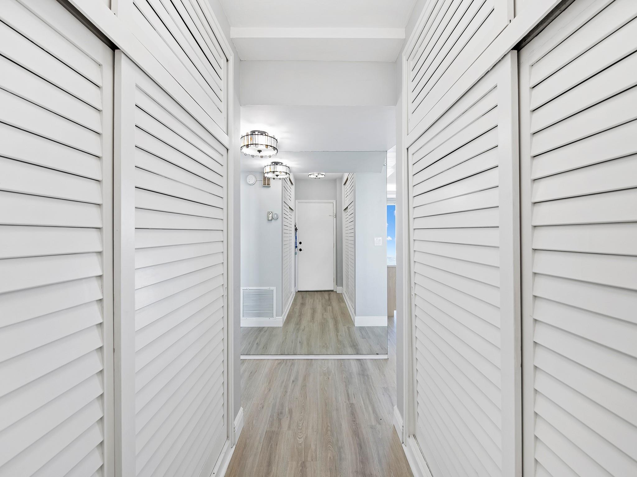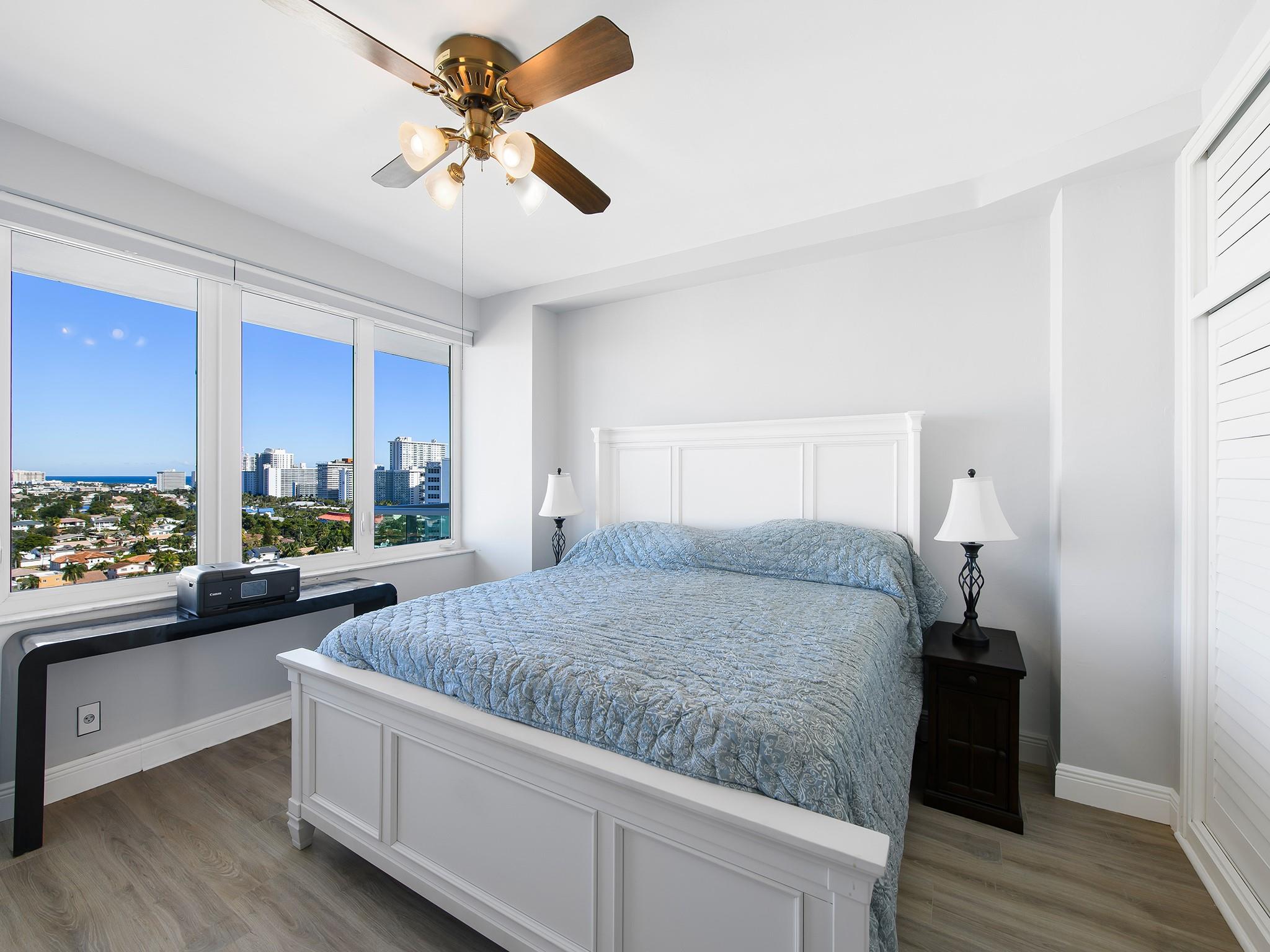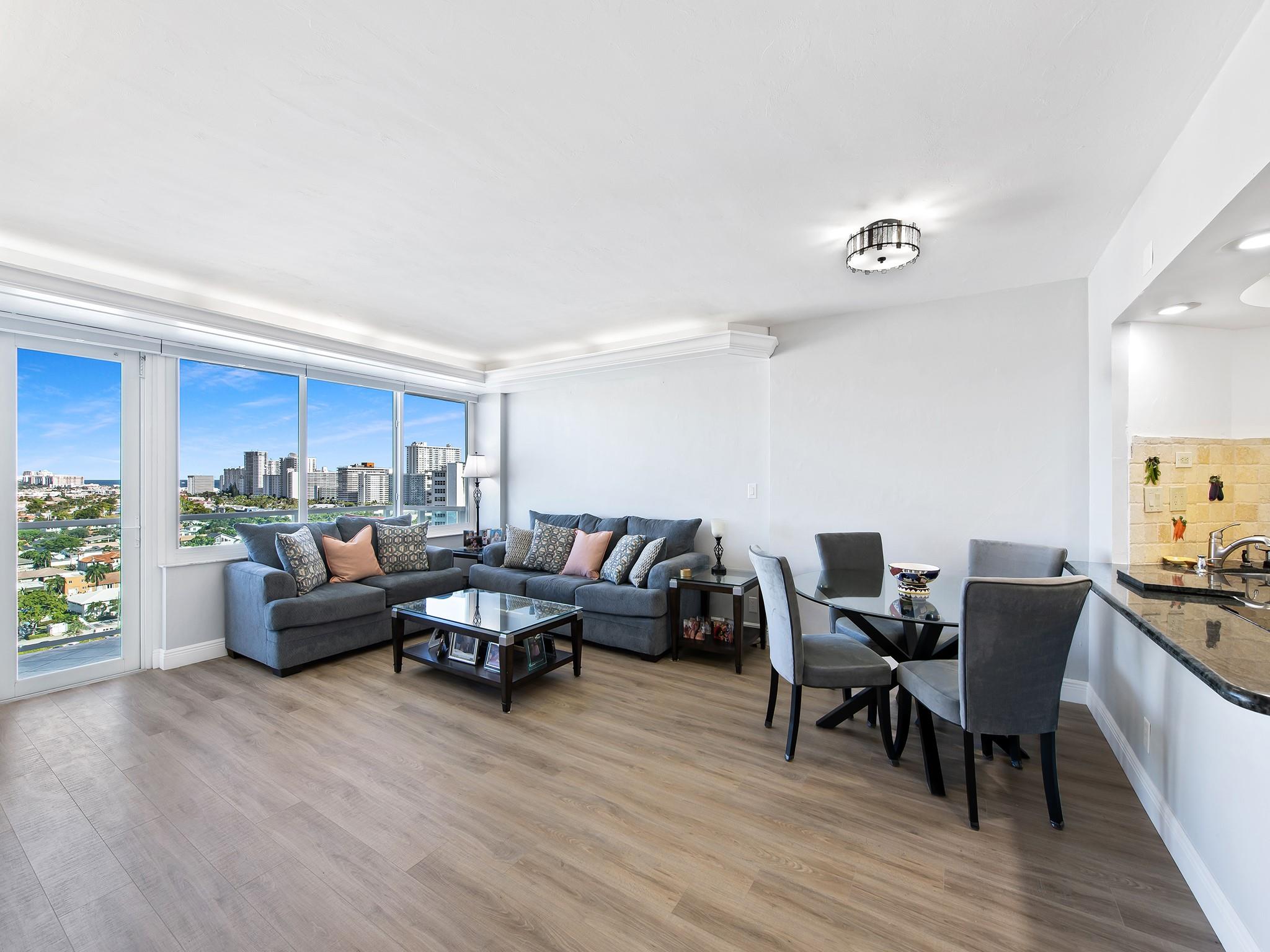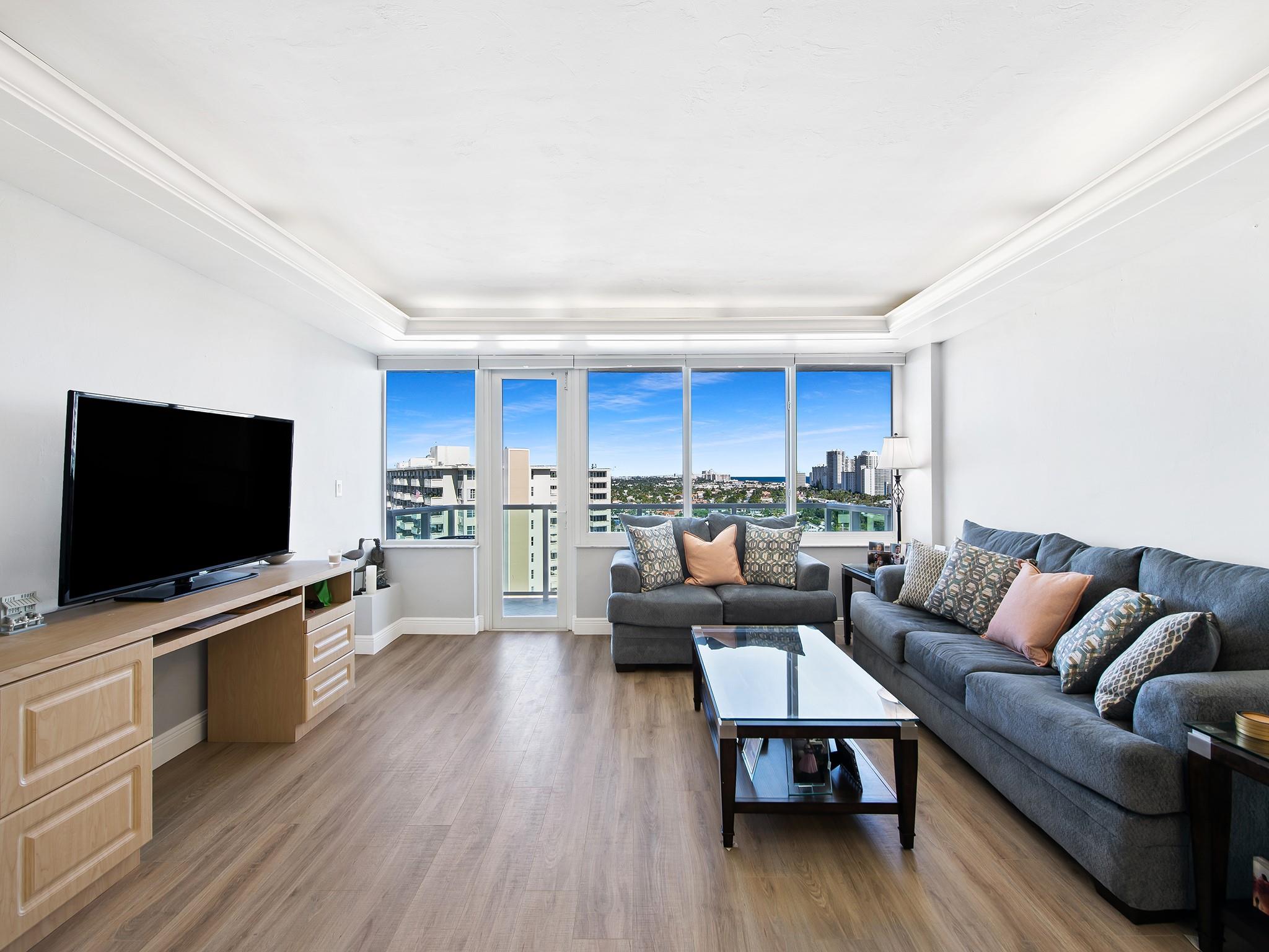 The one you've been waiting for! This updated 1-bedroom, 1-bathroom north-facing unit offers stunning Intracoastal views from every room. Best views in the building!! The open kitchen, upgraded bathroom, and tile flooring throughout adds modern style and comfort. Enjoy the view from your new glass balcony. The building is finalizing a $9.6 million renovation, including concrete restoration, new balconies, and elevator modernization. Amenities include a heated pool, shuffleboard, putting green, community herb garden, BBQ area, fitness room, and 24-hour security. Convenient to shopping and dining. 55+ community. No Land-Lease!