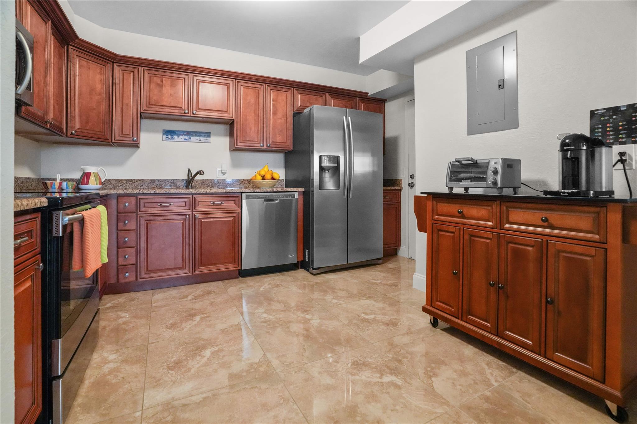 Beautiful and elegant 2 Bed, 2 Bath apartment, meticulously maintained with large wraparound balcony. Kitchen cabinets and bathroom vanities have been updated to complement luxurious granite countertops, with the floor being porcelain tile throughout. Updated with new hurricane impact windows and doors for improved safety and reduced noise from outside. Also comes with plentiful storage, with a spacious walk-in closet in the primary bedroom and 2 personal storage lockers just outside the unit on the same floor. Furniture negotiable. Complex is directly by the ocean. Amenities include: beach service, onsite restaurant, 2 heated pools, 2 fitness centers, a sauna, 24-7 security, valet, business center, billiard and ping-pong room, library, kids play-room and even a golf practice room.