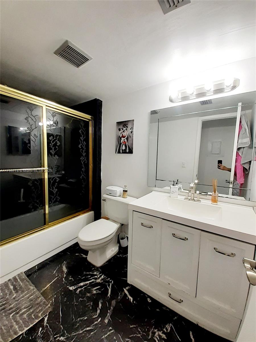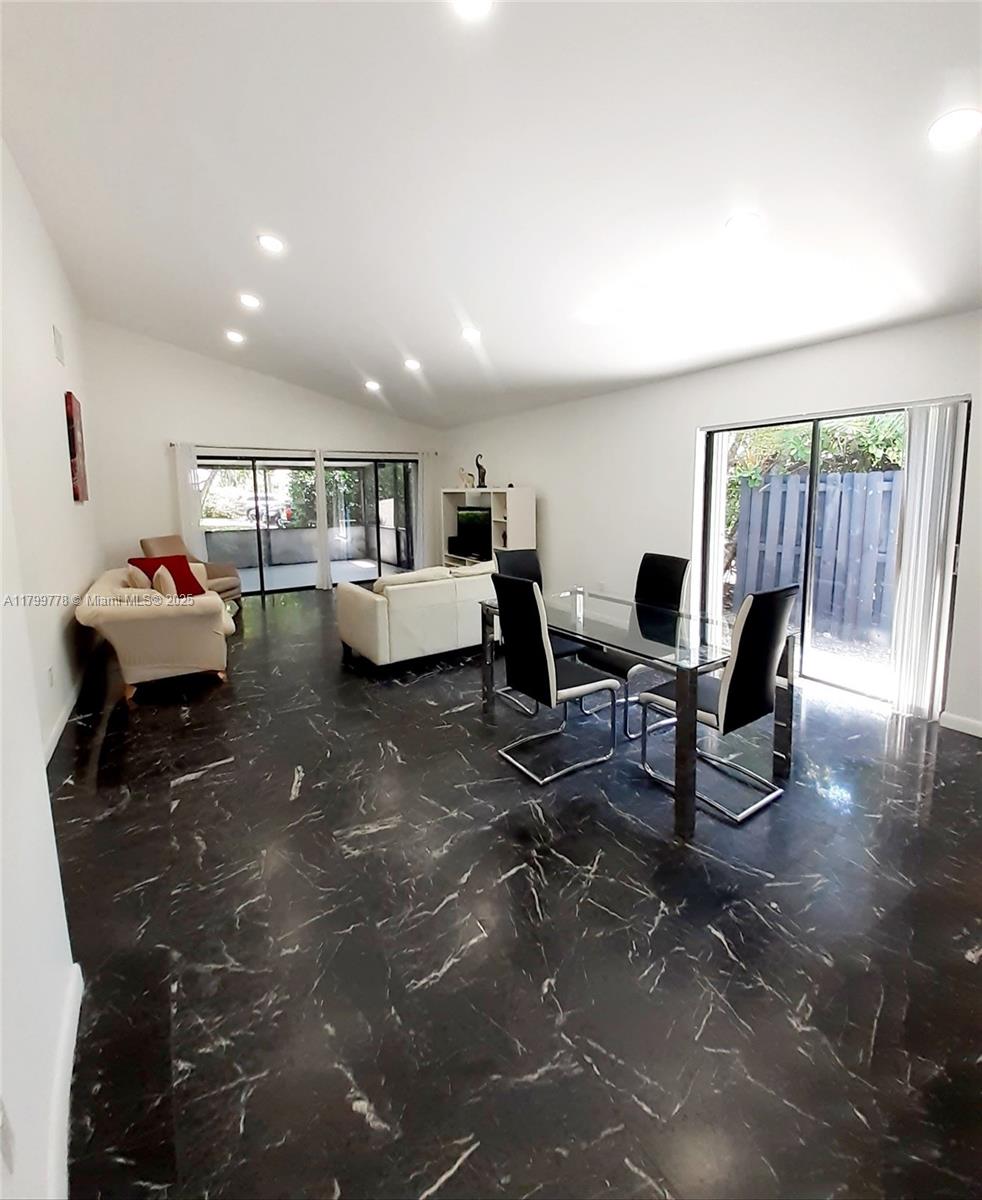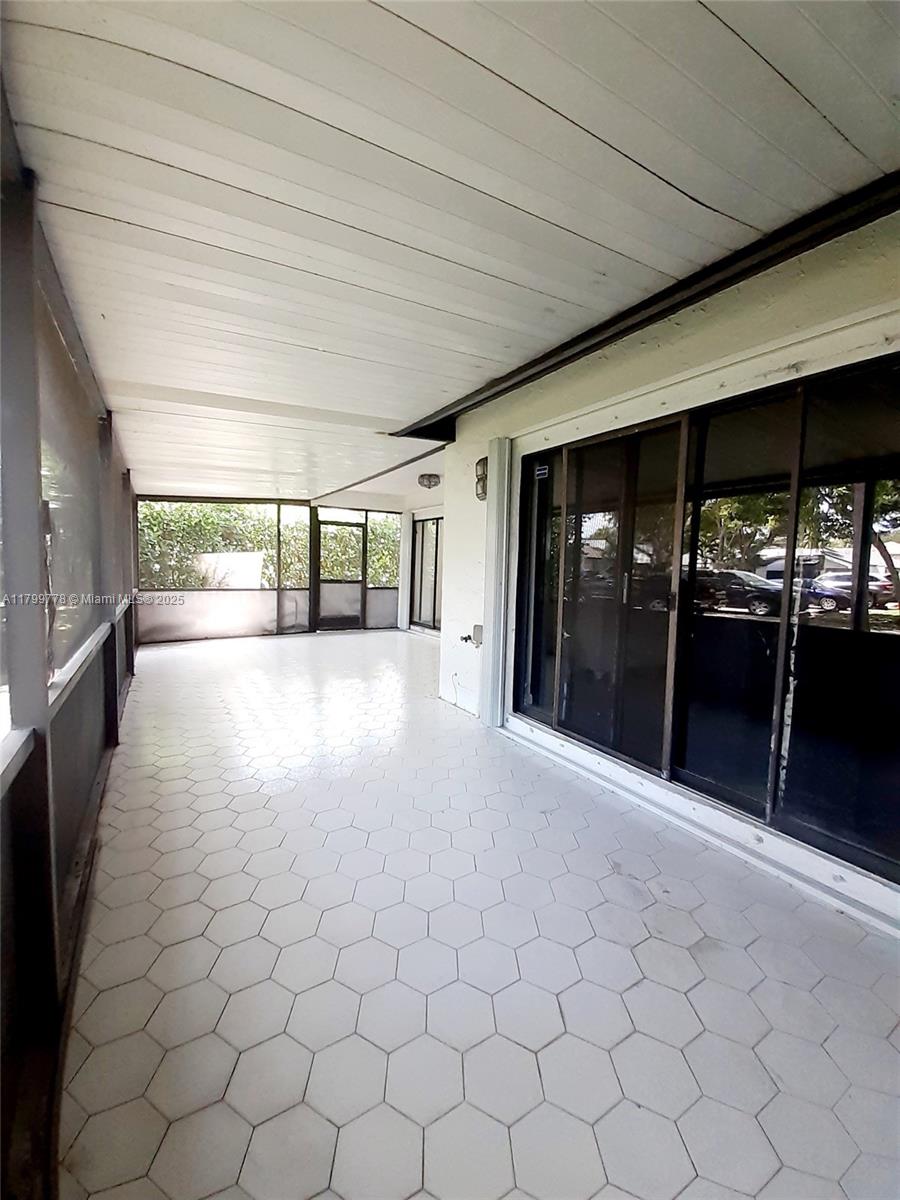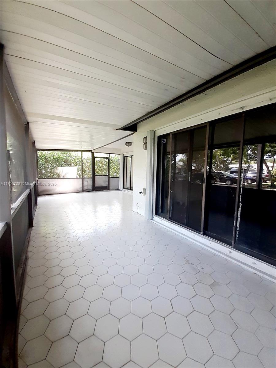 This corner unit features a two-bedroom, two-bathroom layout in Villas At Bonaventure. The large open floor plan includes a combination living and dining area, and numerous sliding doors that allow natural light to fill the home. Enormous master bedroom suite with ample closet space and private access to a large screened-in back porch. The front room also boasts double closet space and a private front patio area through additional sliders. Amenities include: clubhouse, gym, bowling alley, and tennis courts. Maintenance fee covers water, sewer, cable, internet, lawn, roof, and exterior building upkeep. The roof was installed in July 2024, and the property also has a newer air compressor and water heater. Additionally, the property includes full hurricane protection with accordion shutters.