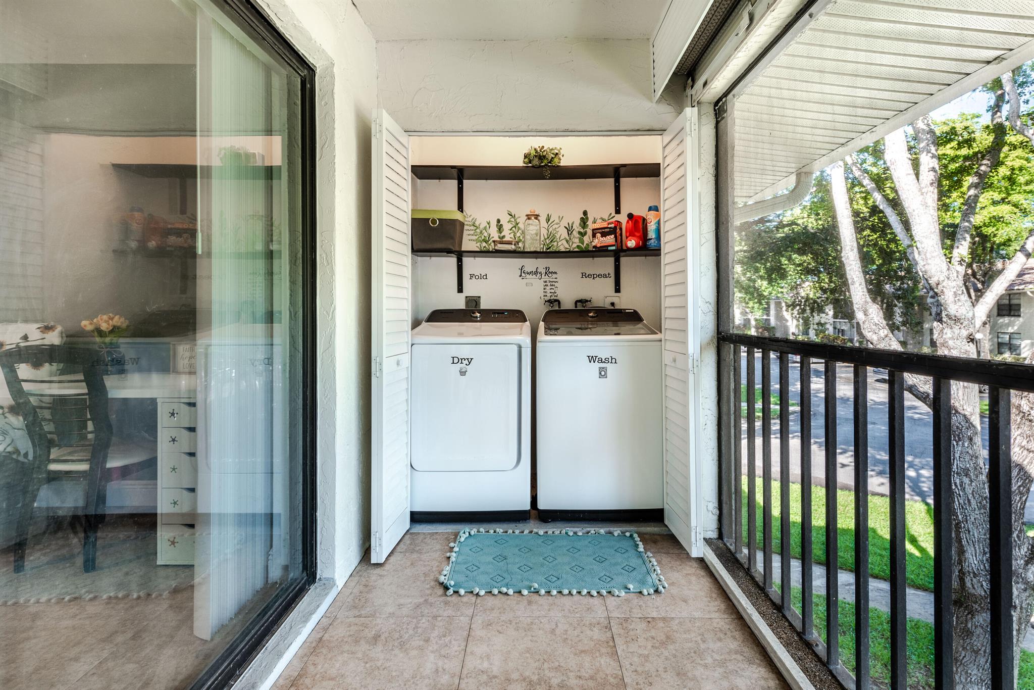 Welcome to this light-filled, second-floor 2-bedroom, 2-bath condo with a modern touch!Step into an updated, open concept kitchen featuring contemporary finishes, newer appliances, perfect for hosting friends and family. You'll love the bonus interior storage room, ideal for a large pantry, craft space, or extra organization. Available for rent as well.Enjoy the Florida lifestyle on your screened-in patio, which also includes a dedicated laundry area. Accordion shutters on all windows and roll-down shutters on the patio provide added peace of mind during storm season. Min 20% This all-ages, gated community offers a private road, heated pool, clubhouse, gym, and an overnight security guard for extra comfort. HOA covers building insurance, water, trash, and maintenance of common areas