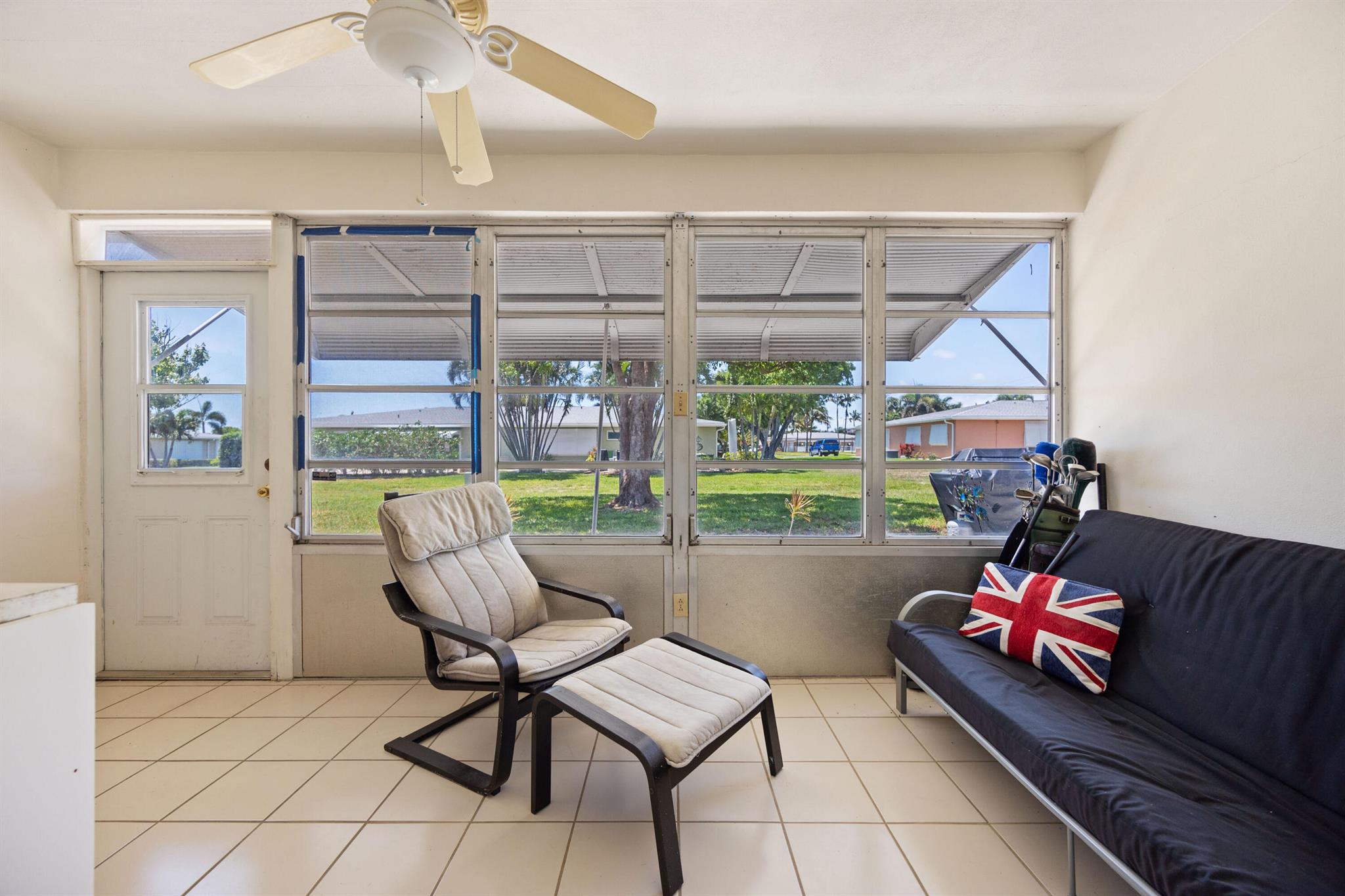 Steps to the Clubhouse! This 1 bedroom/1.5 villa-style condo in High Point Section 2 offers open kitchen with granite countertops, tons of cabinetry, tile backsplash. Tile flooring throughout NO CARPETING. Large primary room with 2 walk-in closets. Additional FL room perfect for guest or a home office. Patio overlooking huge green space. This unit has been in the family for over 30 years and is ready for new owners to update to their taste & style. Unit is offered furnished/turnkey.