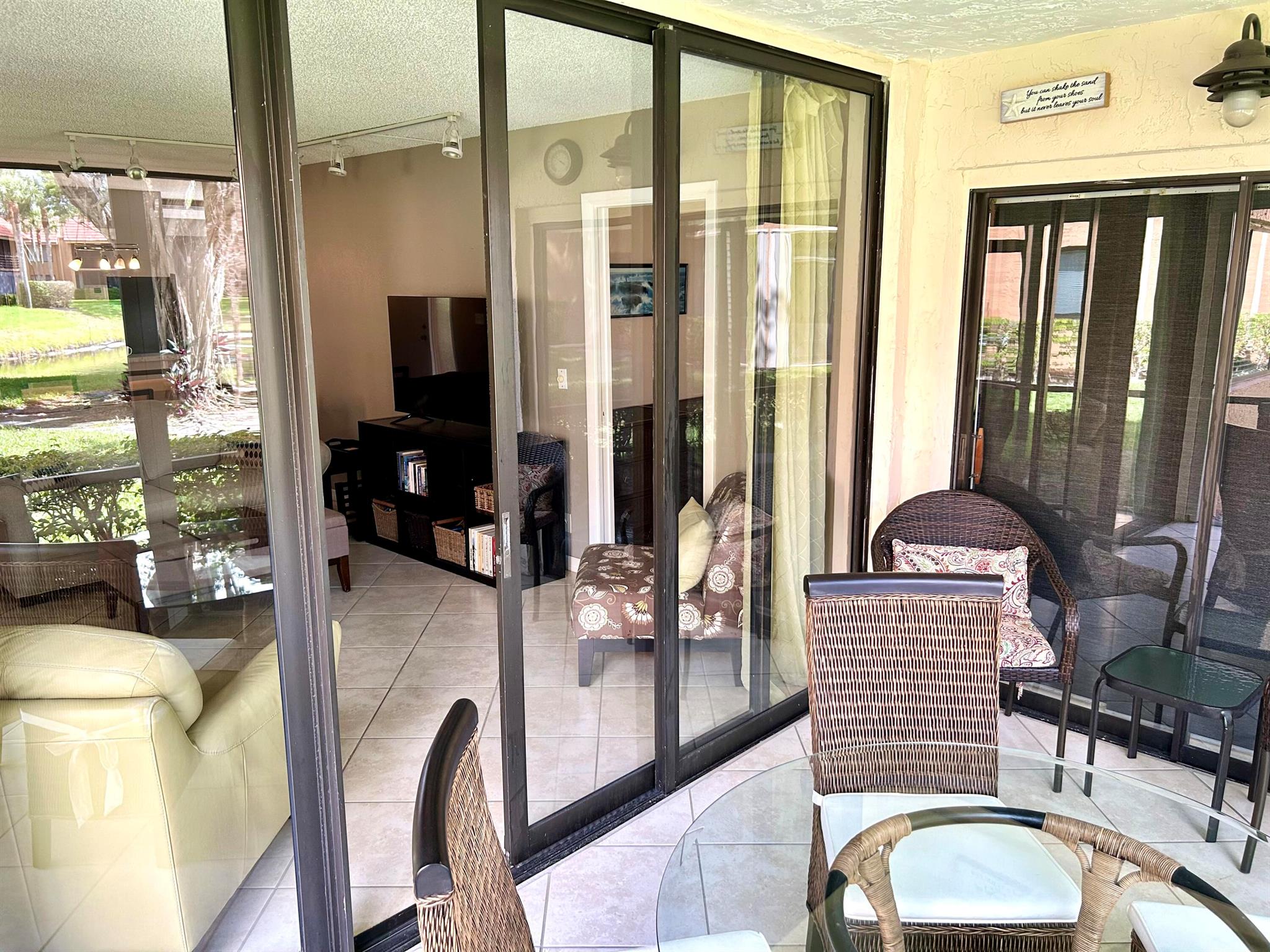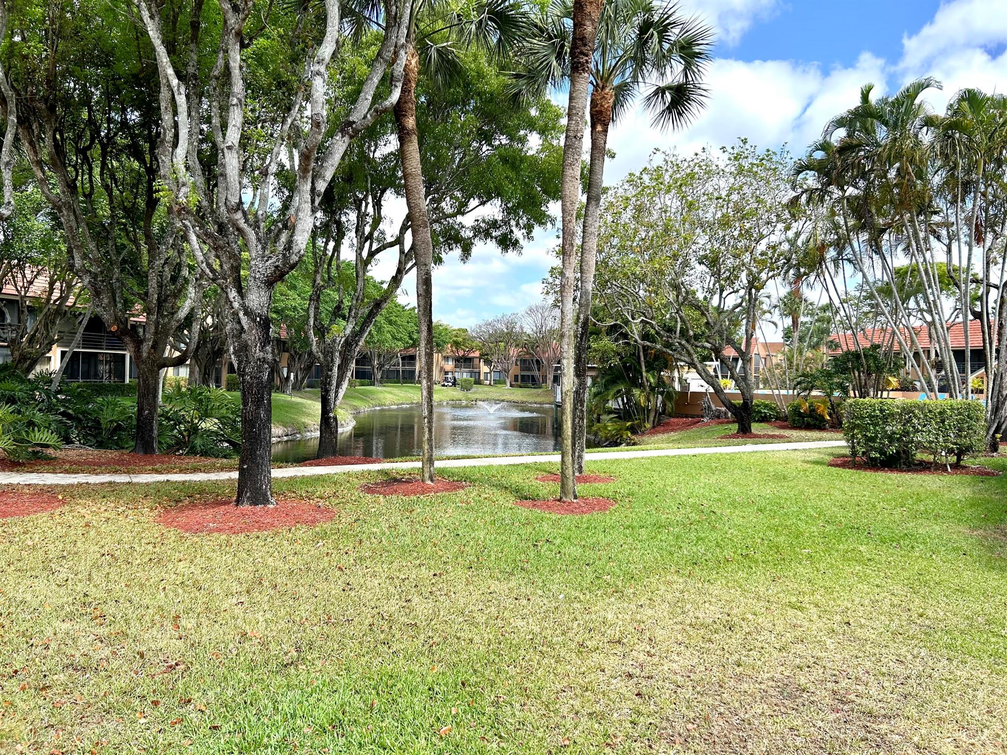 Beautiful corner unit on the ground floor, featuring 2 bedrooms and 2 bathrooms. Stylishly decorated with modern taste, this condo is located directly across from a pond and just steps from the pool. Ideal for those seeking a peaceful and tranquil environment. Optional membership available at Indian Spring Country Club.