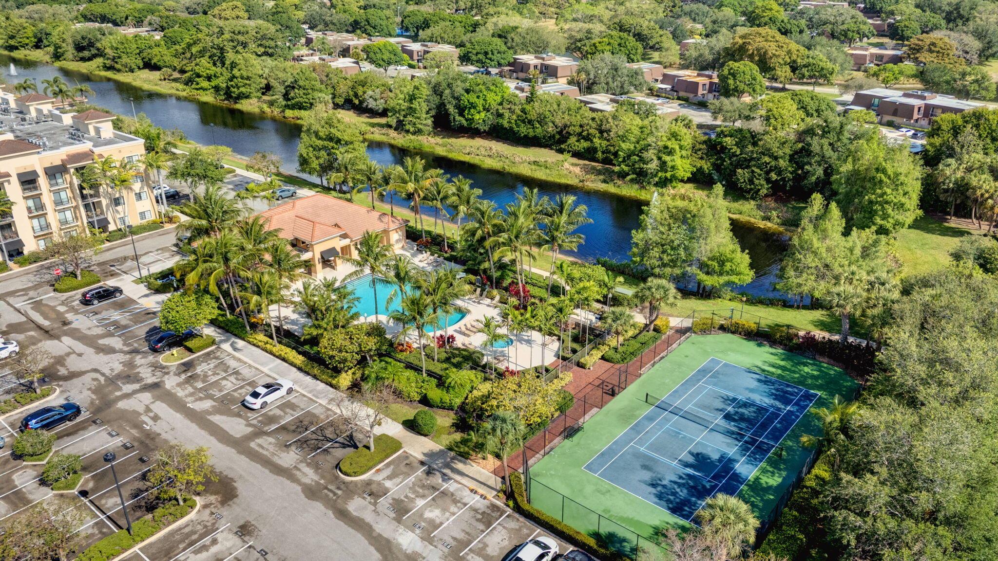 Pristine condo. Newer water heater, refrigerator, washer /dryer and microwave. Stunning wood like light porcelain tile throughout. Crown moldings, Hurricane impact windows leading to a relaxing balcony w/tropical & side water view. Gated community with secure building access & 2 elevators to this 3rd. floor condo. Resort like clubhouse w/ heated pool & spa , tennis, pickleball courts, fitness center, media center. Onsite Prop manager. Prime location in PBG adjacent to shops, restaurants,, supermarkets, I95 & Turnpike. Minutes from sandy beaches.
