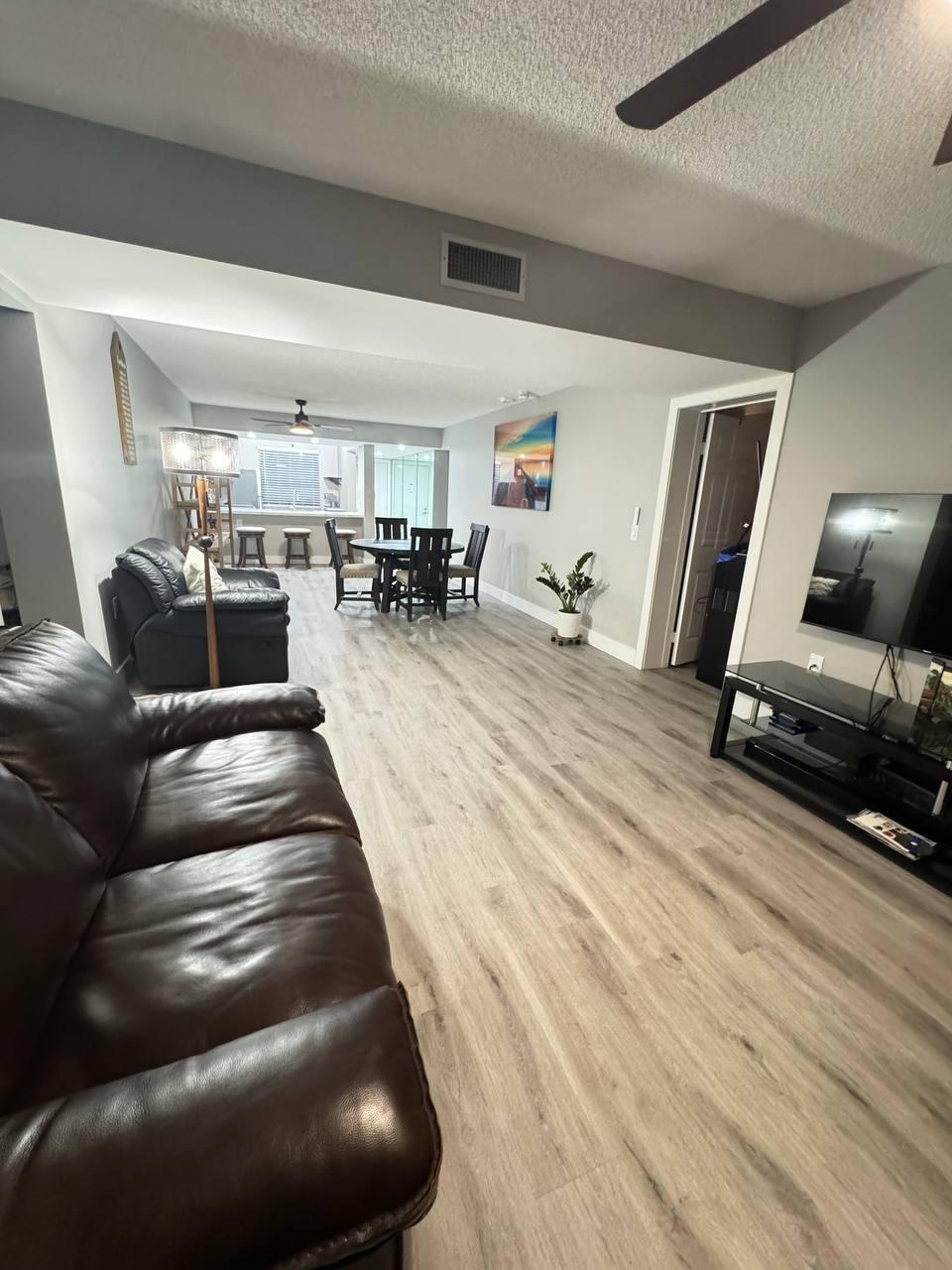 Beautifully renovated 2BR/2BA condo in desirable Whitehall with views of the clubhouse, gardens & pool. Features include an open kitchen with quartz countertops, stainless steel appliances, luxury vinyl plank flooring, spacious living/dining area, and large bonus/laundry room perfect for office or gym. Master suite offers a walk-in closet & upgraded bath. Enjoy a private balcony, 4 saltwater pools, clubhouse, and prime location near airport, shopping, dining & I-95. Rent immediately!(The large mirror found in the master bedroom, plus the gray cabinet, washer, and dryer, will not be sold with the home)