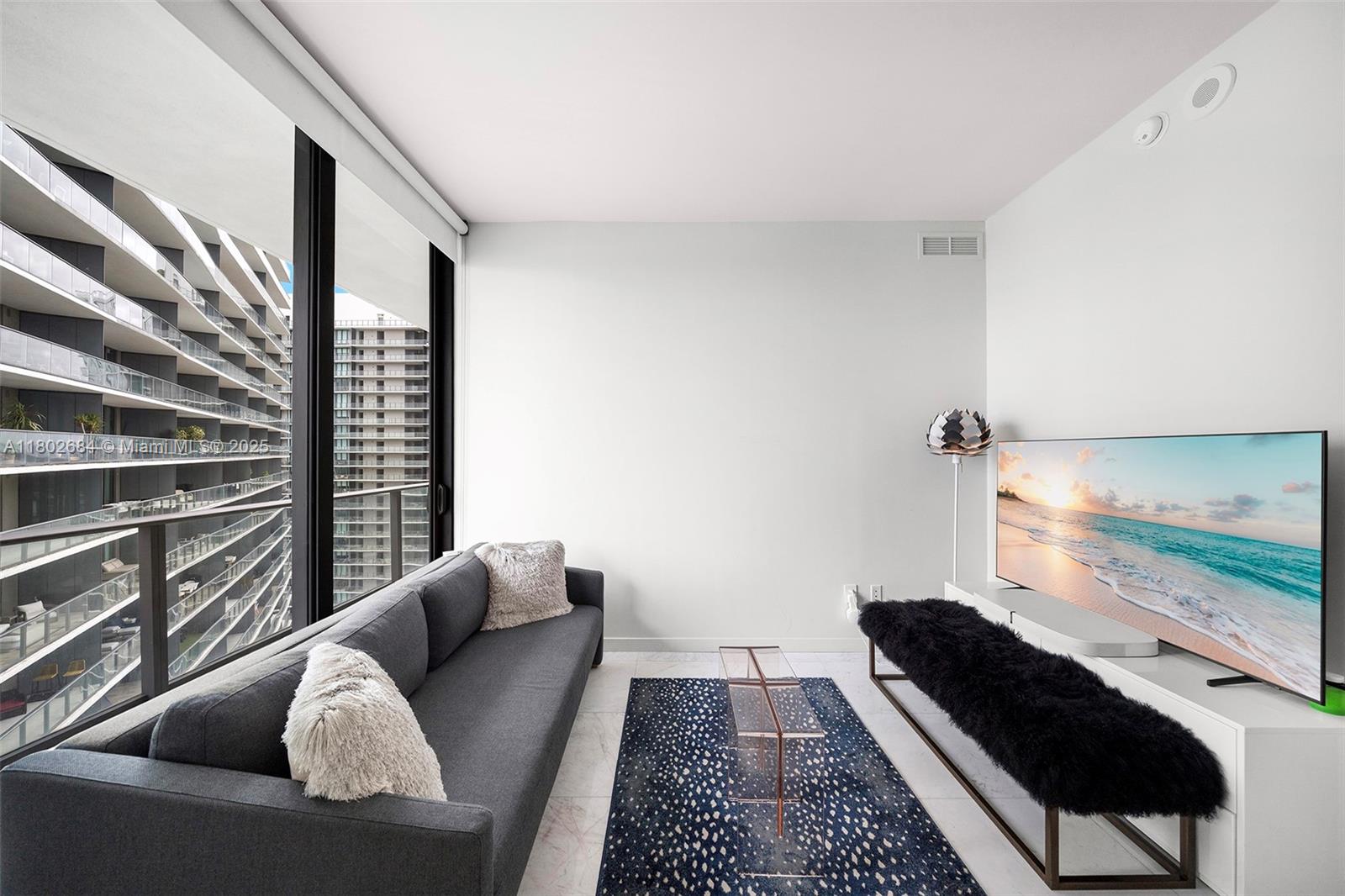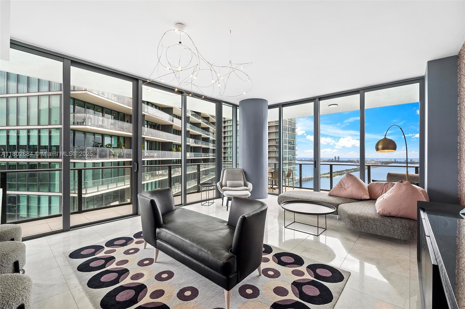Experience elevated waterfront living in Unit 4207 at Gran Paraiso, a premier luxury residence in Miami's vibrant Edgewater neighborhood. This 3-bed+ den, 3-bath condo spans 1,649 square feet and offers breathtaking, unobstructed views of Biscayne Bay from its expansive balcony. The open-concept layout features floor-to-ceiling glass, sleek porcelain flooring, and a modern kitchen equipped with top-tier appliances. The spacious den provides versatility as a home office or guest room. The building offers A lagoon-style pool with cabanas, State-of-the-art fitness center/spa/hammam, tennis courts, golf simulator,Bowling lanes, billiards room, private screening theater,Wine cellar, cigar lounge,Children’s playground and wading pool, and a Business center. Paraiso District offers a dog park.