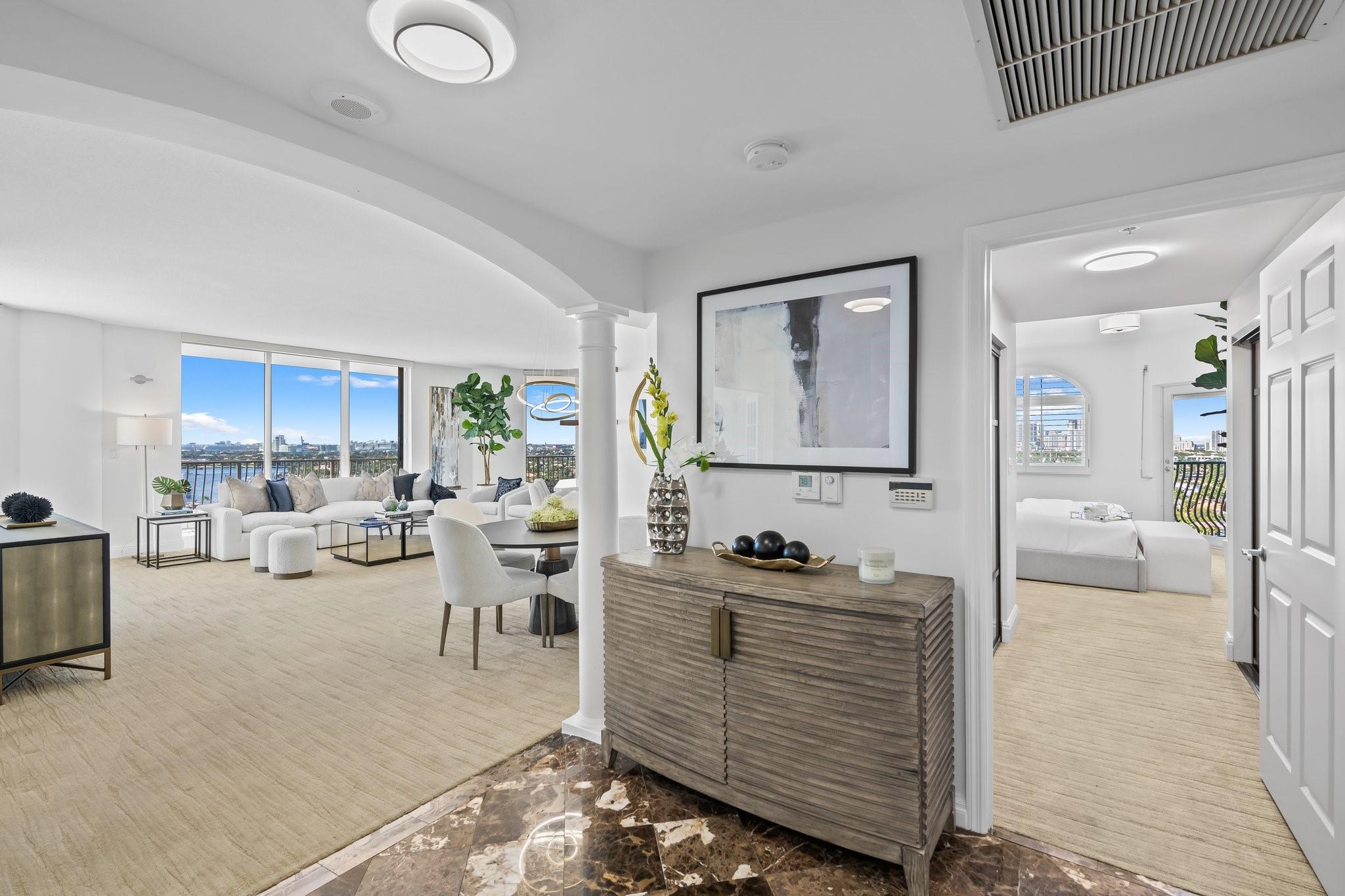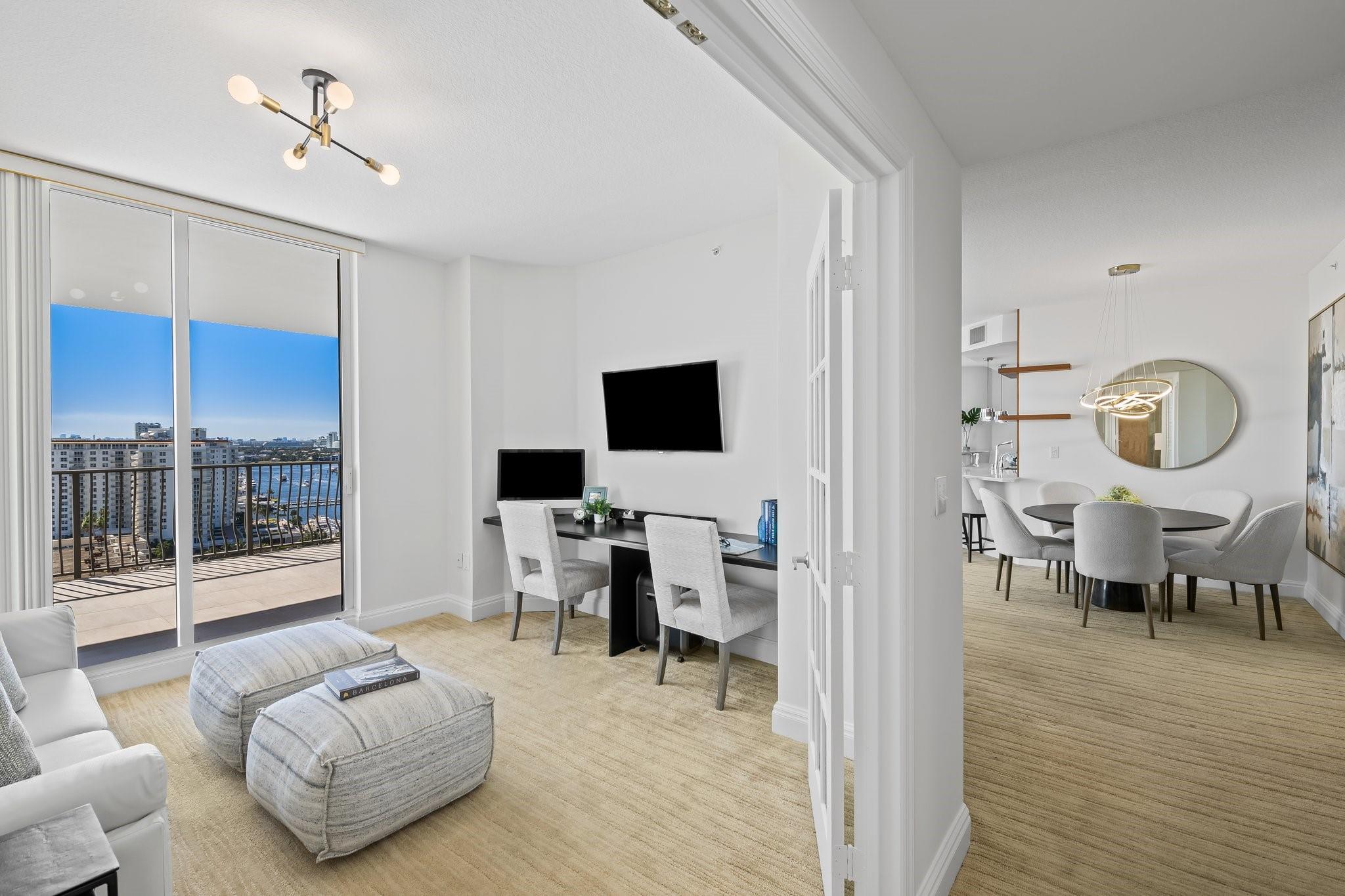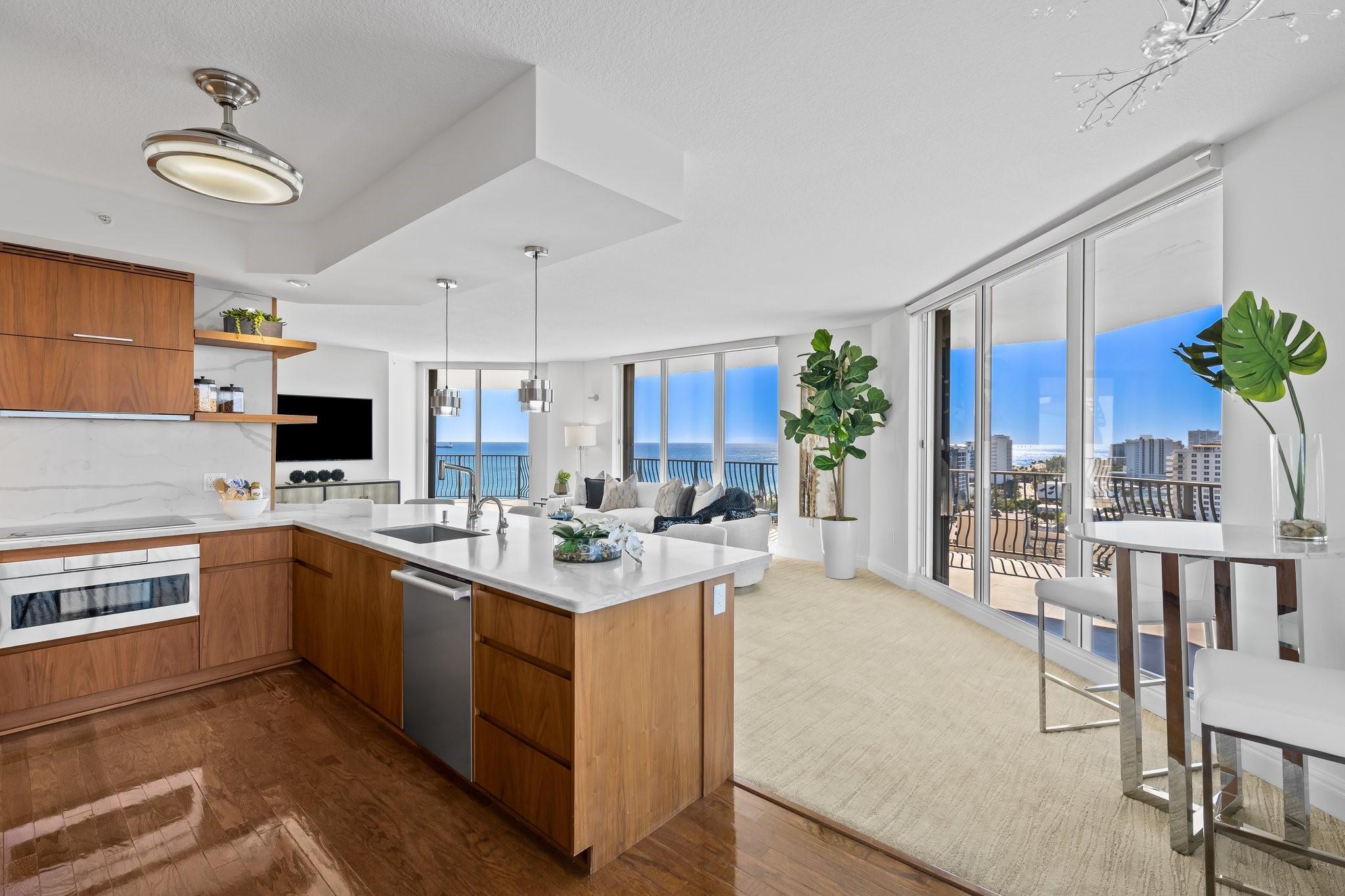 Incrrdible opportunity to own this rarely available SW corner true 3 BR, 2.5 BA residence with breathtaking views of the Intracoastal, ocean, and city and overlooking the new Las Olas Marina-the home to Mega Yachts. The newly renovated kitchen features premium Miele appliances, and the new primary bathroom ensures modern comfort. Floor-to-ceiling sliding glass doors connect indoor and outdoor spaces, creating an open, airy ambiance. Incredible oversized 715 SF wraparound terrace is great for sunset watching, relaxing and entertaining. A direct elevator access from the garage into a private foyer, provides both privacy & ease of access. The pet-friendly building offers amenities like a doorman, gym, heated pool, valet parking, and more, with additional parking space available for purchase.