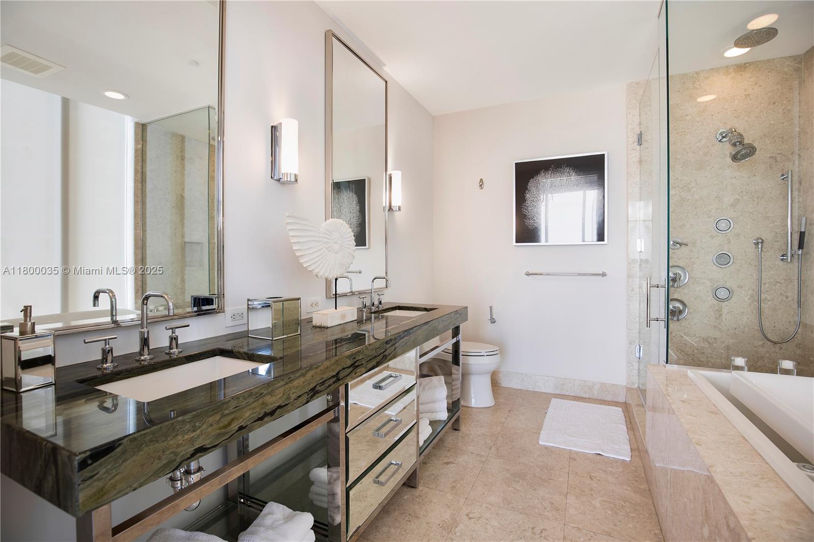 A true turn-key opportunity at the iconic St. Regis Bal Harbour now available for those looking for a first class lifestyle experience. This immaculate residence features 2 spacious bedrooms plus 2 & 1/2 baths. High floor-corner unit with stunning intracoastal/water & city views. Finest décor by Artefacto,top-of-the-line appliances and high end finishes throughout. Enjoy the exclusive 5 Stars 5 Diamonds resort amenities such as State of the Art Spa, Concierge- Butler, Pool & Beach service , 24 hours in-room dining and much more!