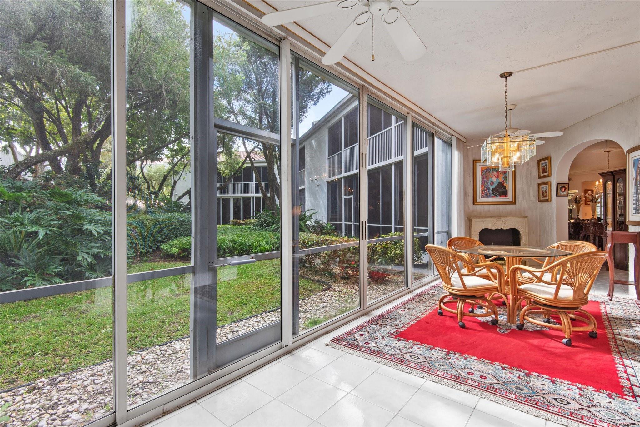 Highly desirable 3/2 ground floor Coronado model with floor to ceiling windows overlooking a lush garden courtyard in private and gated Vizcaya. Unique open and spacious floorplan features a huge glass enclosed porch (27x9), huge eat-in updated kitchen with window overlooking front courtyard with fountain. Guest bedroom and 3rd bedroom have access to a screened porch. Master bathroom also has a screened porch. Unit is tastefully and fully furnished, turnkey and ready to welcome a new owner. New mattresses, new sleeper sofa, new TV, new closets, totally outfitted kitchen with new dishes, glassware, coffee pot, toaster, new ceiling fans and new lamps.