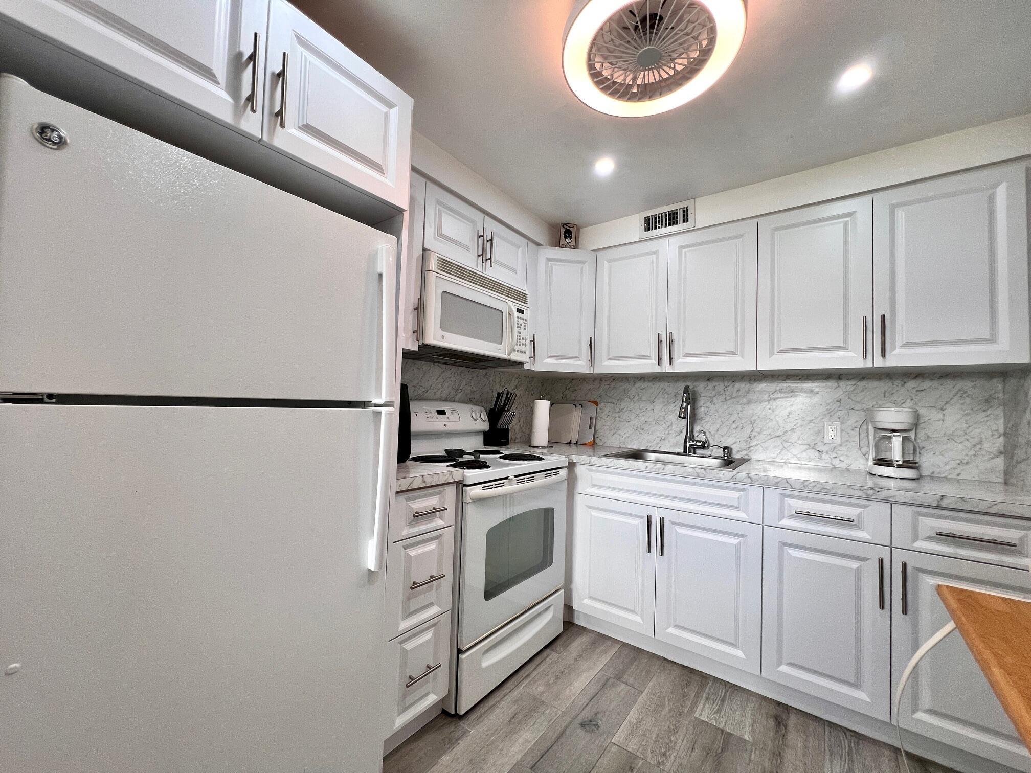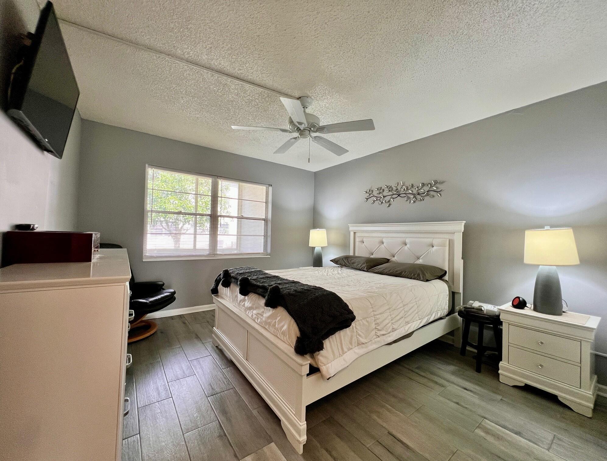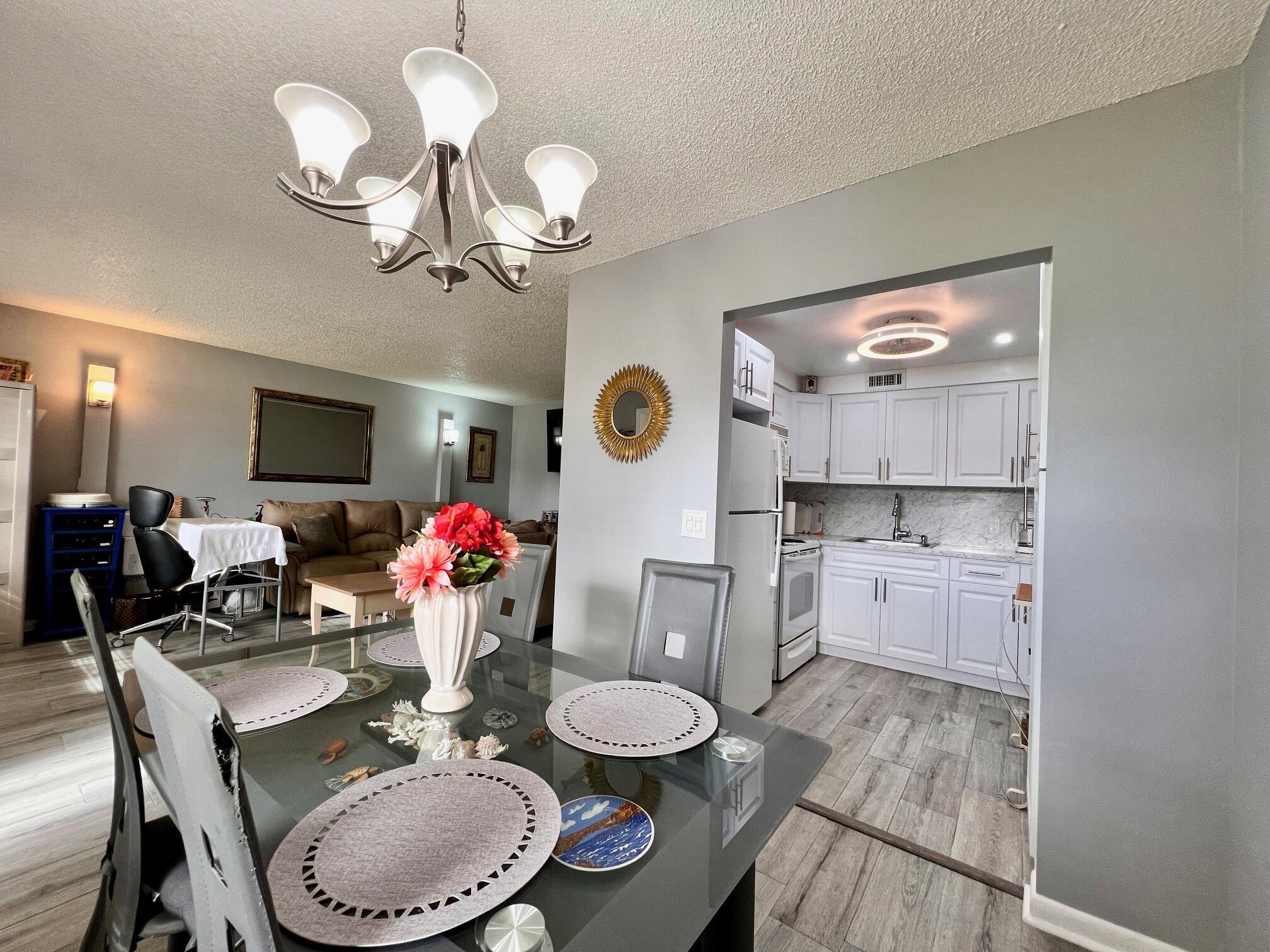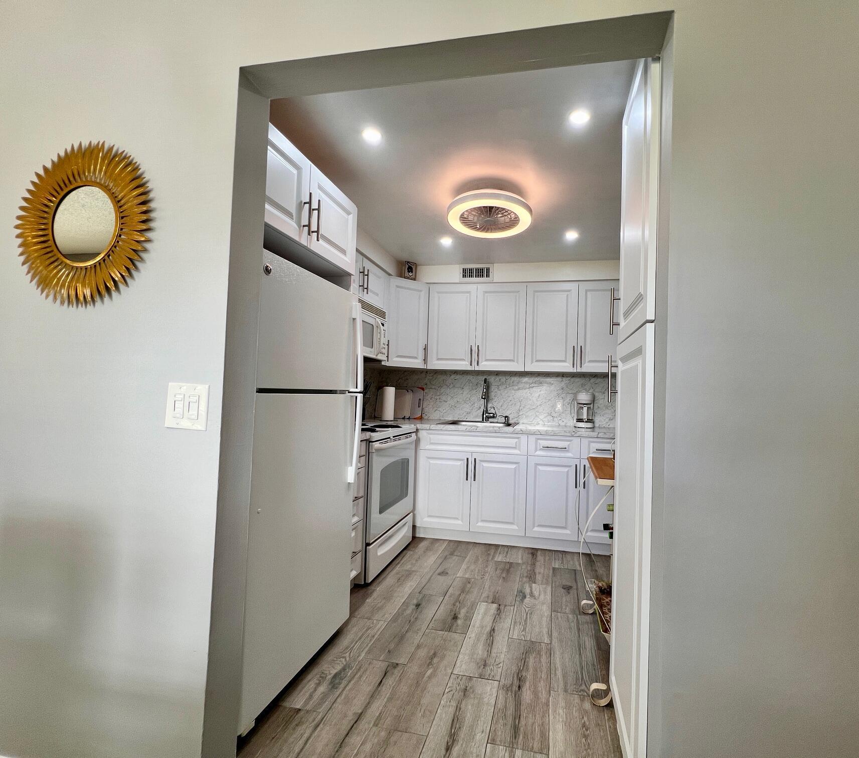 GORGEOUS, LOADED WITH QUALITY UPDATES IN A FANTASTIC LOCATION! Move In Ready 2/1.5 FIRST FLOOR CONDO In the Coveted Chatham Section of 55+ Century Village. Beautiful NEW Sparkling White Kitchen! NEW Ceramic Tile Flooring Throughout! NEW AC! NEW Interior French 6 Panel Doors, Electrical Switches & Sockets! Updated Baths. Freshly Painted. Updated Ceiling Fans In Bedrooms & Lanai. Included In Sale; 3 Wall Mounted Smart TVs & Ring Security Doorbell. Furniture Is Negotiable. Well Maintained Building With New Roof (2020), Reserves, and Lovely Resident Patio With Lush Tropical Landscaping, Grill, and Seating Areas. Quiet & Peaceful Location Close To Hastings Fitness Center and The Main Clubhouse. Century Village is a Resort Style 55+ Community in Vibrant West Palm Beach, FL...