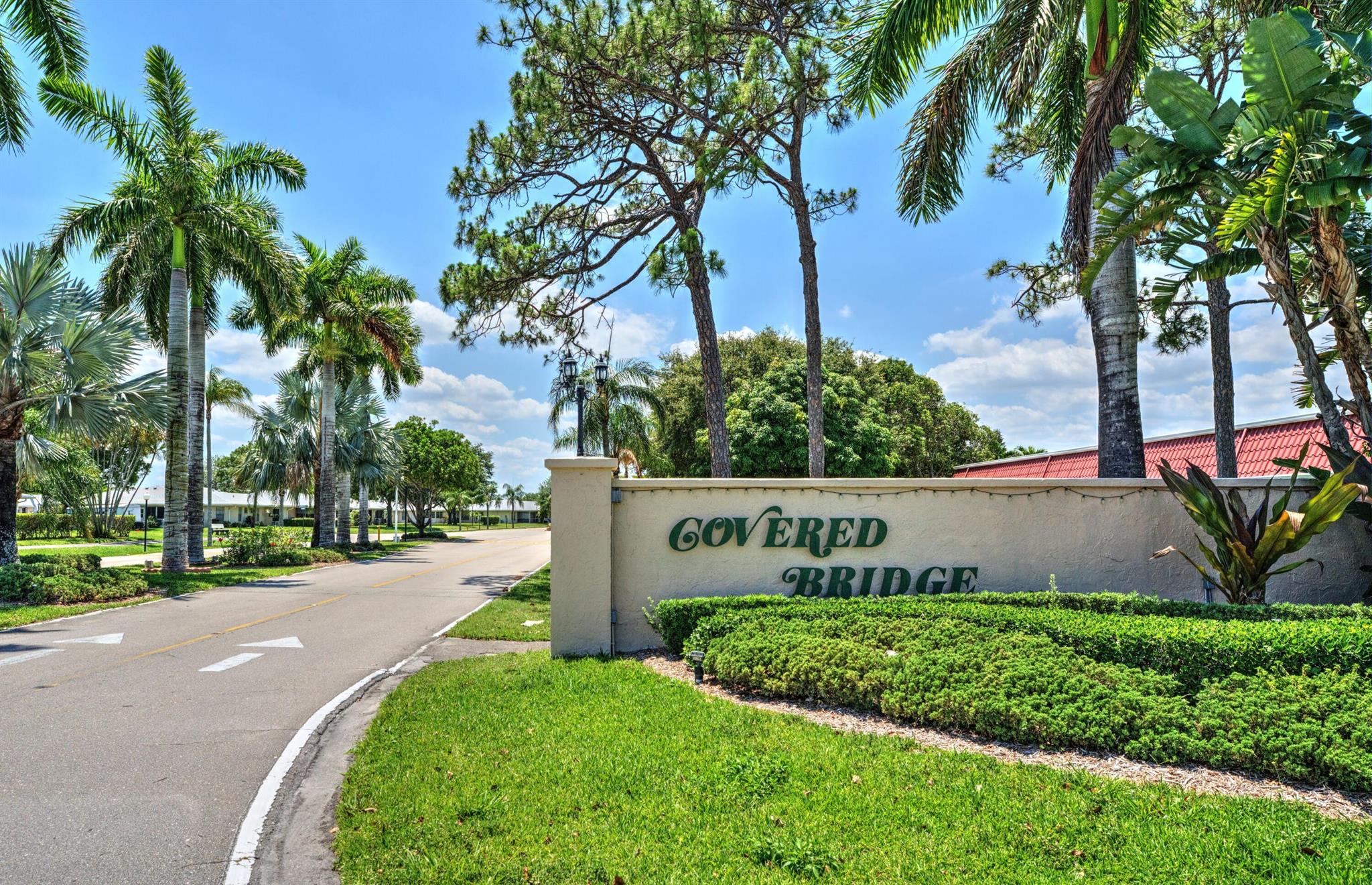 Desirable corner unit, 2 bedroom, 2 bath, spacious living area with sliding glass doors opening to enclosed patio with storage closet. Enjoy the outdoor side patio in garden setting. Roof replaced in 2023. Make this your home and enjoy all the amenities Covered Bridge has to offer including clubhouse, tennis, pool, fitness center and more. Close to shopping centers and near the Turnpike. All information deemed reliable but not guaranteed. All sizes approximate.