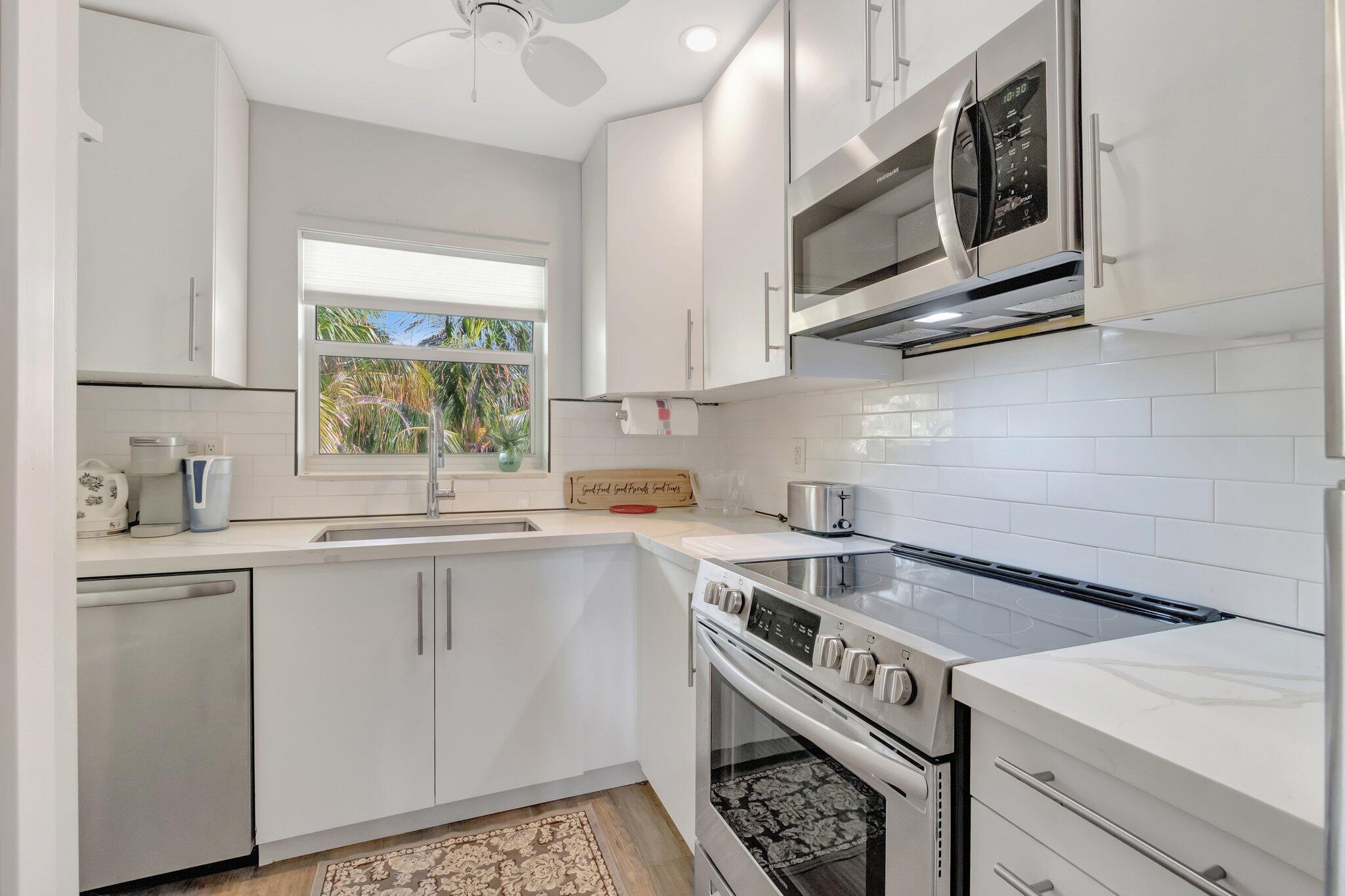 Come on over to this 2 bedroom, 2 bath beach area condo. Move right into this absolutely beautiful, immaculate home where oceanside living awaits you! Located in the boutique community of Boca Capri, this charming condo offers the perfect blend of coastal relaxation and vibrant lifestyle. Enjoy an oceanside experience with 2 fantastic private walkways to the beach--just steps from your door. Prefer to explore? Walk, bike, or drive to nearby shops, restaurants, and bars, lively Deerfield Pier, and the popular Mizner Park, all just minutes away. Inside, you'll love the remodeled kitchen with stainless steel appliances, Quartz countertops, elegantly remodeled bathrooms, and stylish brand new flooring.