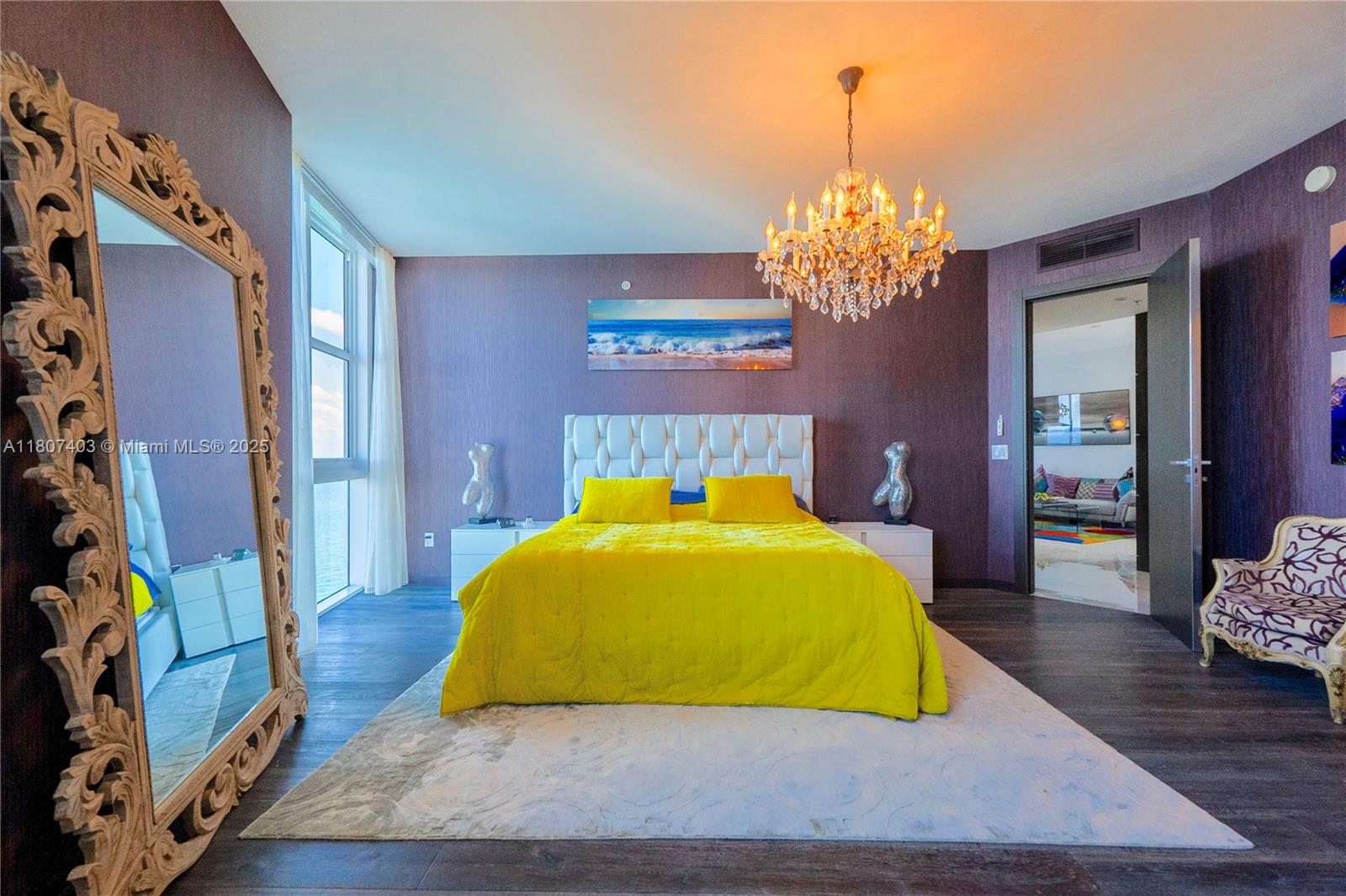 This spectacular 2BR, 2BTH + 1 half-bath/powder room. Direct ocean views from every room. Thoughtfully designed with impeccable attention to detail, the residence features high-end finishes, Roche Bobois furniture, custom closets, decorative lighting, and Italian kitchen with Quartz countertop and Miele appliances. Beautiful wood flooring in bedrooms and marble flooring, extensive wood paneling in the foyer, automated blinds, and brand-new Bosch washer/dryer unit. Private elevator entry. 24-hr concierge, beach access with 1,000 feet of oceanfront, 4 pools, tennis courts, a luxury spa, fitness center, and multiple on-site restaurants. Tropical landscaping,lagoon and lap pools,waterfalls, and a smart building infrastructure. Newer A/C system, new toilets, and updated exhaust fans. Furnished