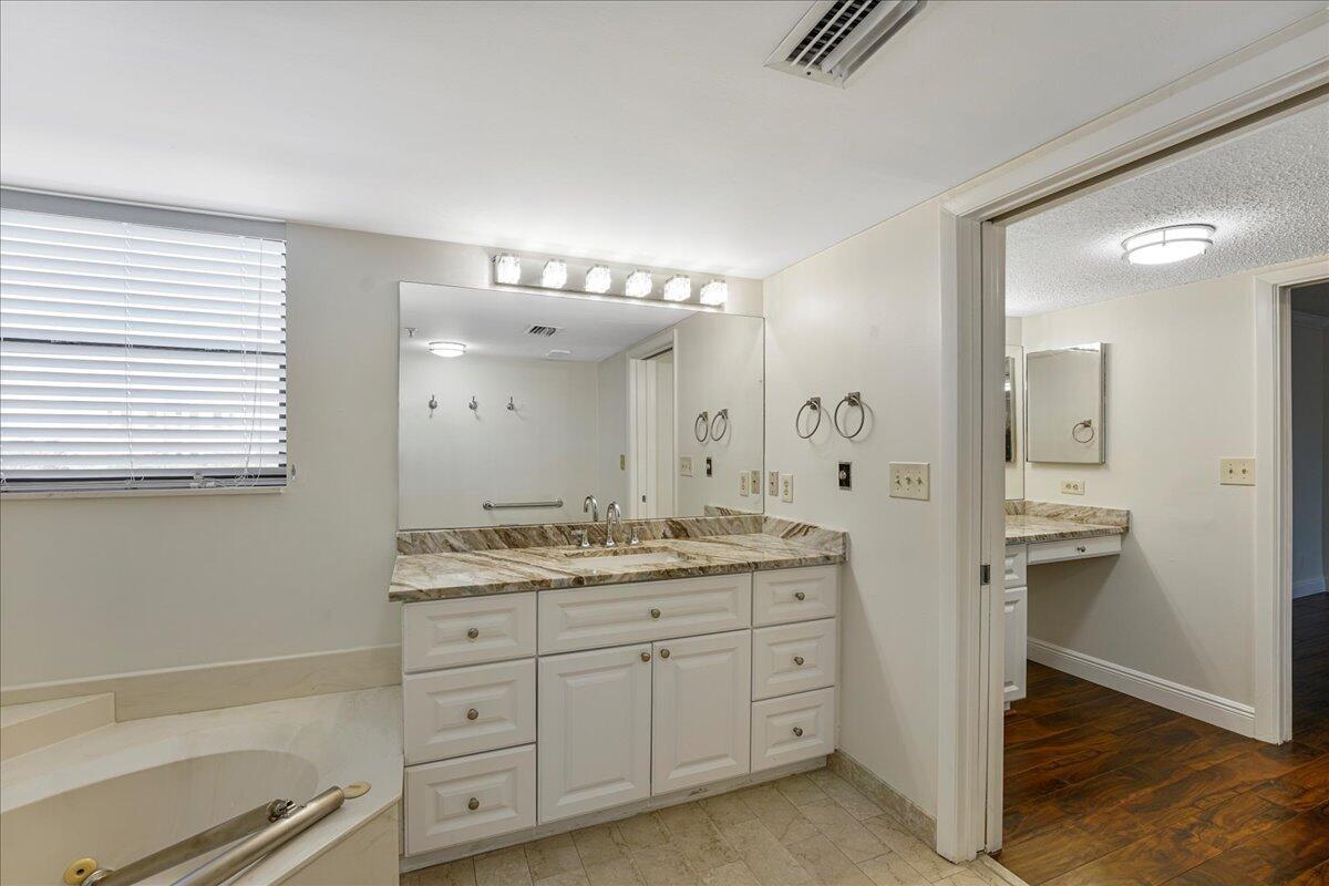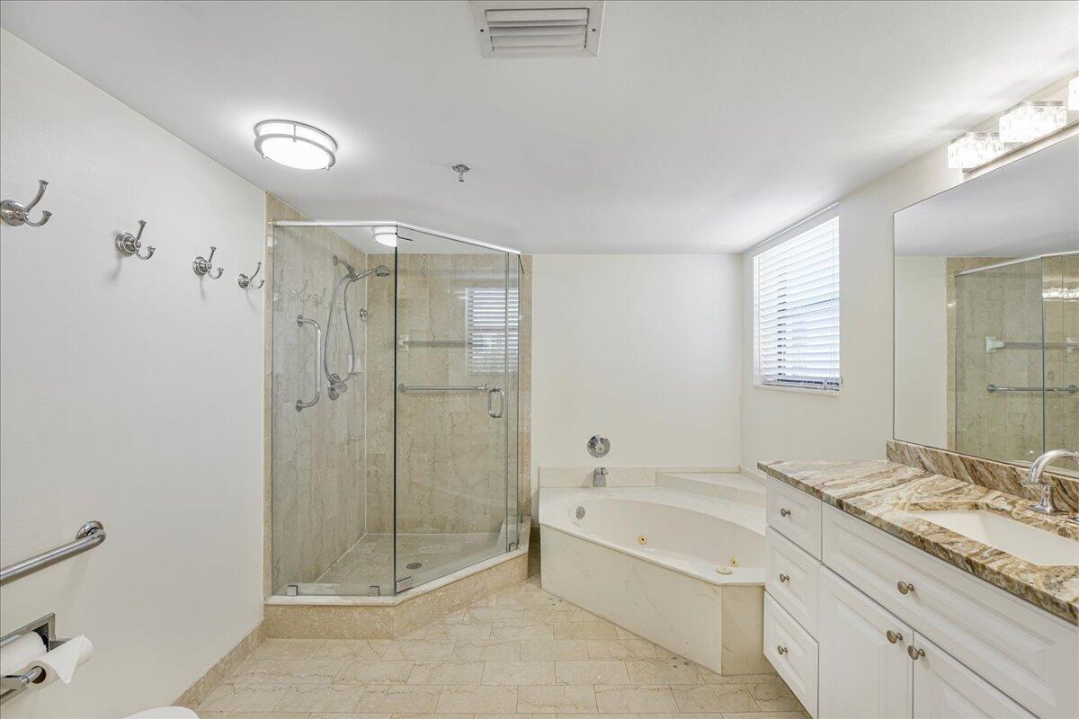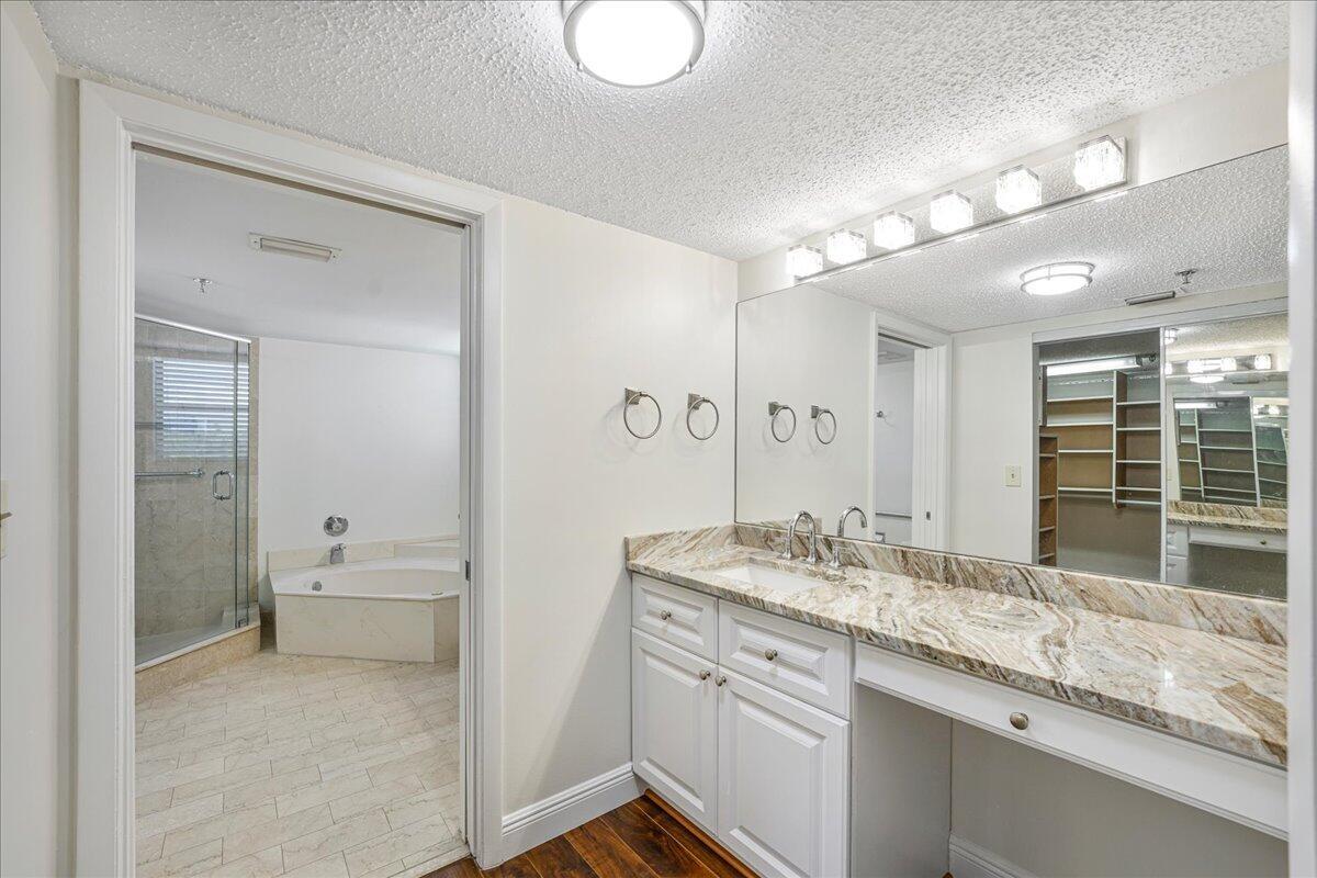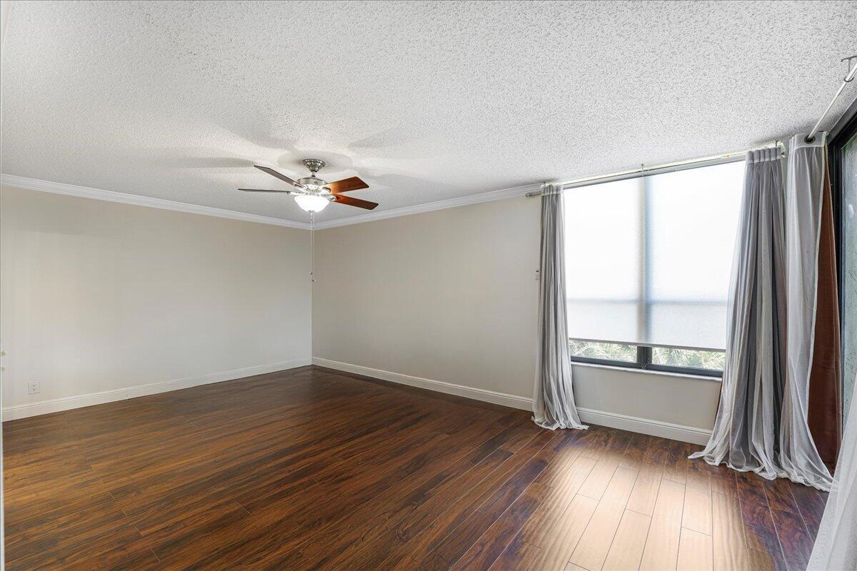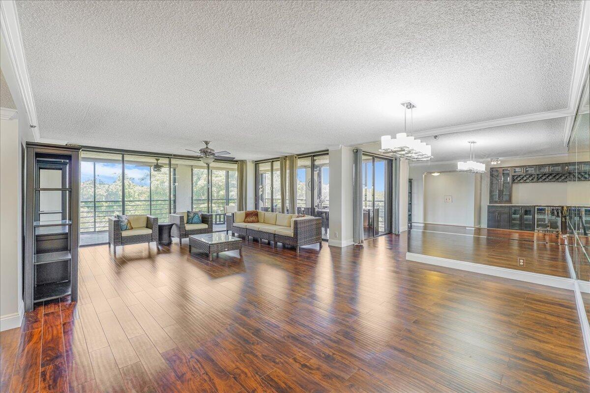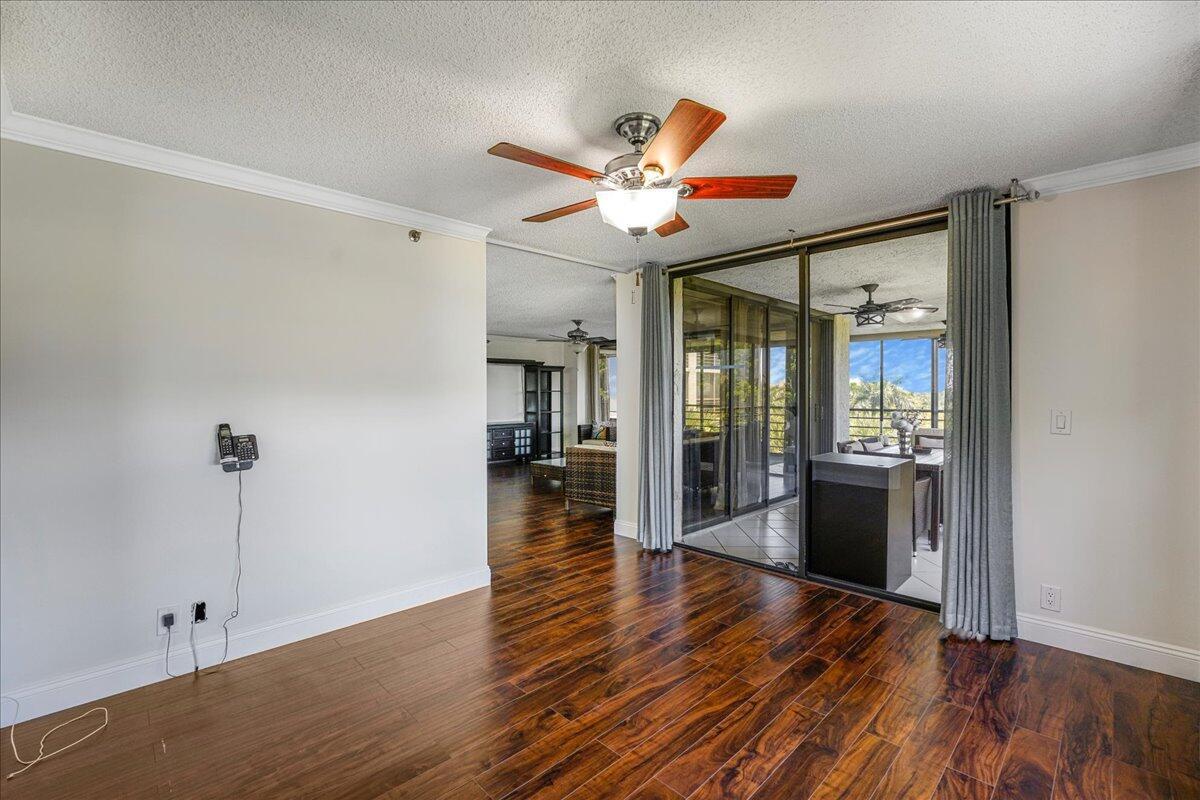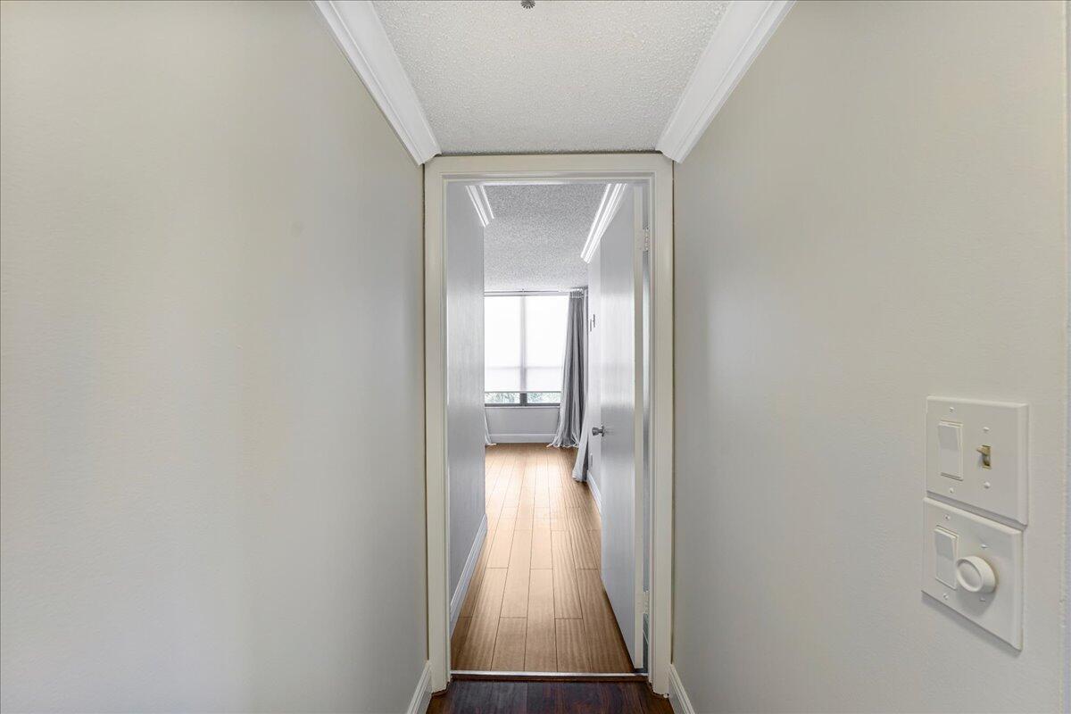 Freshly Painted, Laminate Floors Built-in Bar. Kitchen with white cabinets, granite counters, stainless steel appliances, and glass tile backsplash. Large, enclosed patio with Southeast exposure with electric sunshades. Bedrooms has crown molding. Newly updated 2nd & half bath. Large built-in closet.