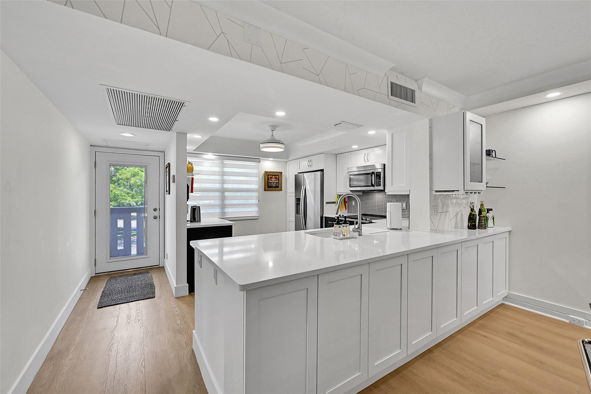 Luxury Floor Plan Remodeled: A Property of Distinction. This exceptional residence exemplifies unparalleled elegance and functionality, with every detail reflecting a commitment to innovation and award-winning design. Located in the highly desirable Aruba Village, this remarkable apartment offers modern living at its finest, enhanced by a striking eastern exposure that ensures an abundance of natural light throughout the day. Meticulously renovated, this property is a true masterpiece, incorporating high-end features such as waterproof vinyl flooring, quartz countertops, smooth ceilings, new doors, and curved crown molding. Boasts all impact windows,front door, and glass enclosure. A/C 2017, includes an A/C silencer for enhanced quietness and comfort. See all photos, then see for yourself!