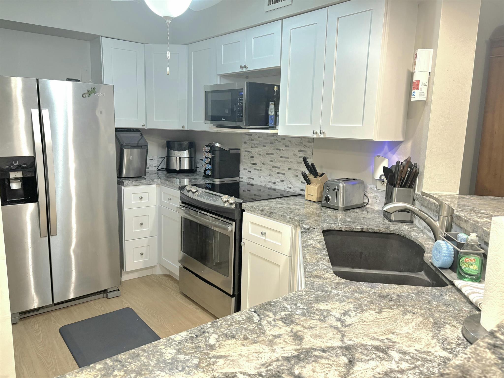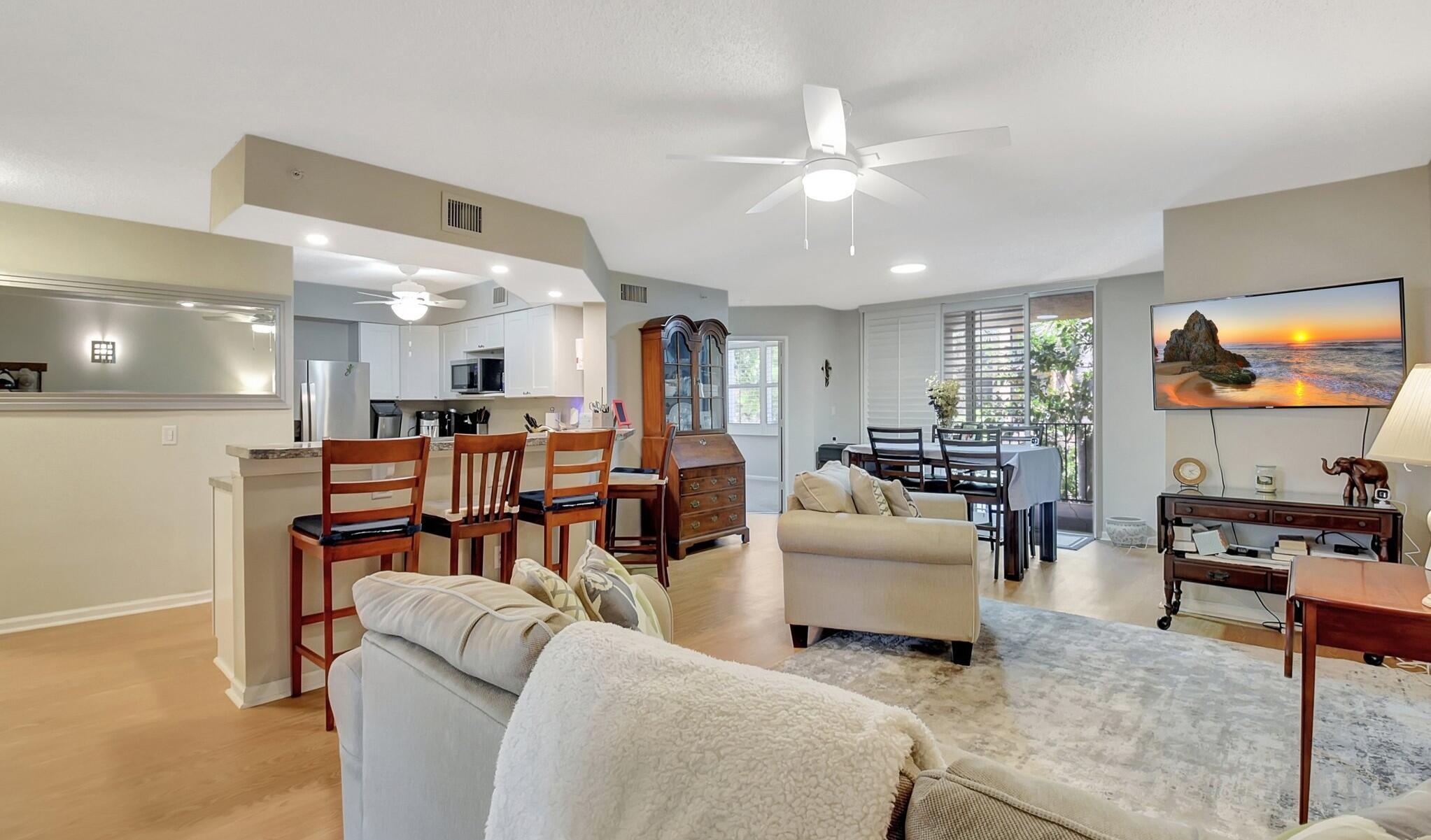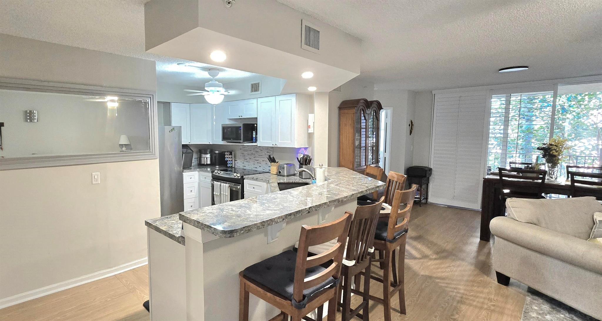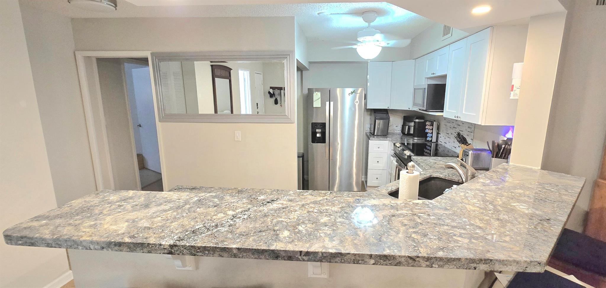 New roof 2023! Beautifully remodeled 3BR/2BA townhome w 1-car garage in a waterfront Intracoastal community. Features a modern remodeled kitchen with granite counters, stainless steel appliances, extended bar seating & pantry. Open-concept, split-bedroom layout w spacious living areas. Large primary suite offers walk-in closet, dual-sink quartz vanity, and walk-in shower. Two generous guest rooms and updated second bath w walk-in shower. Full-size washer/dryer inside. Relax on the oversized balcony w peaceful tree views. Resort-style amenities: Intracoastal pool, private beach, gym, sauna, clubhouse with billiards, kayak storage small fee, and marina next door offers boat club. Prime location near downtown & I-95. Amenities, exterior insurance, water & reserves included. Pets & Lease Ok.