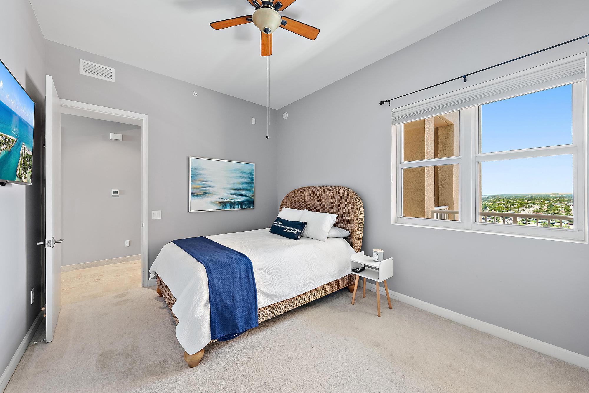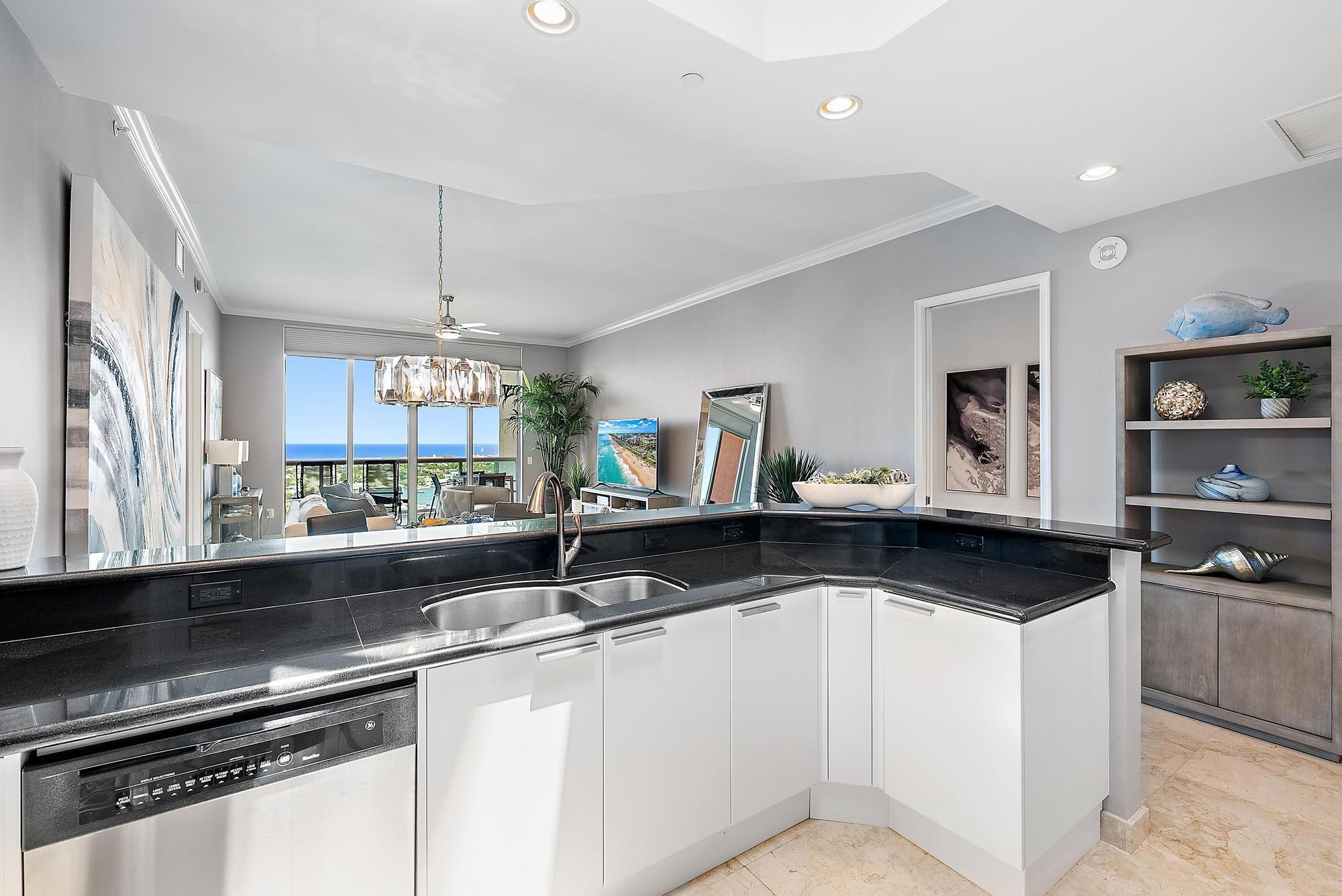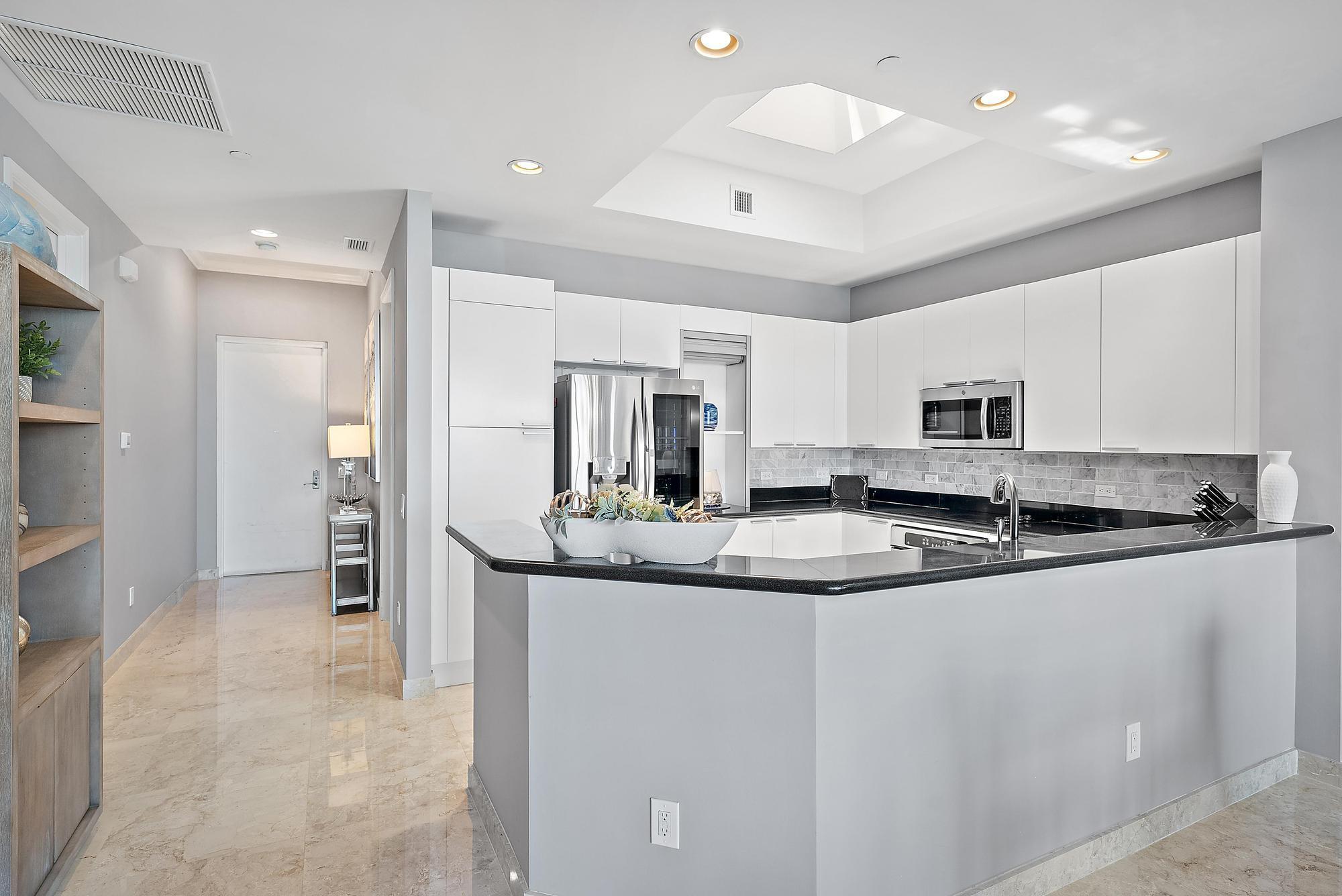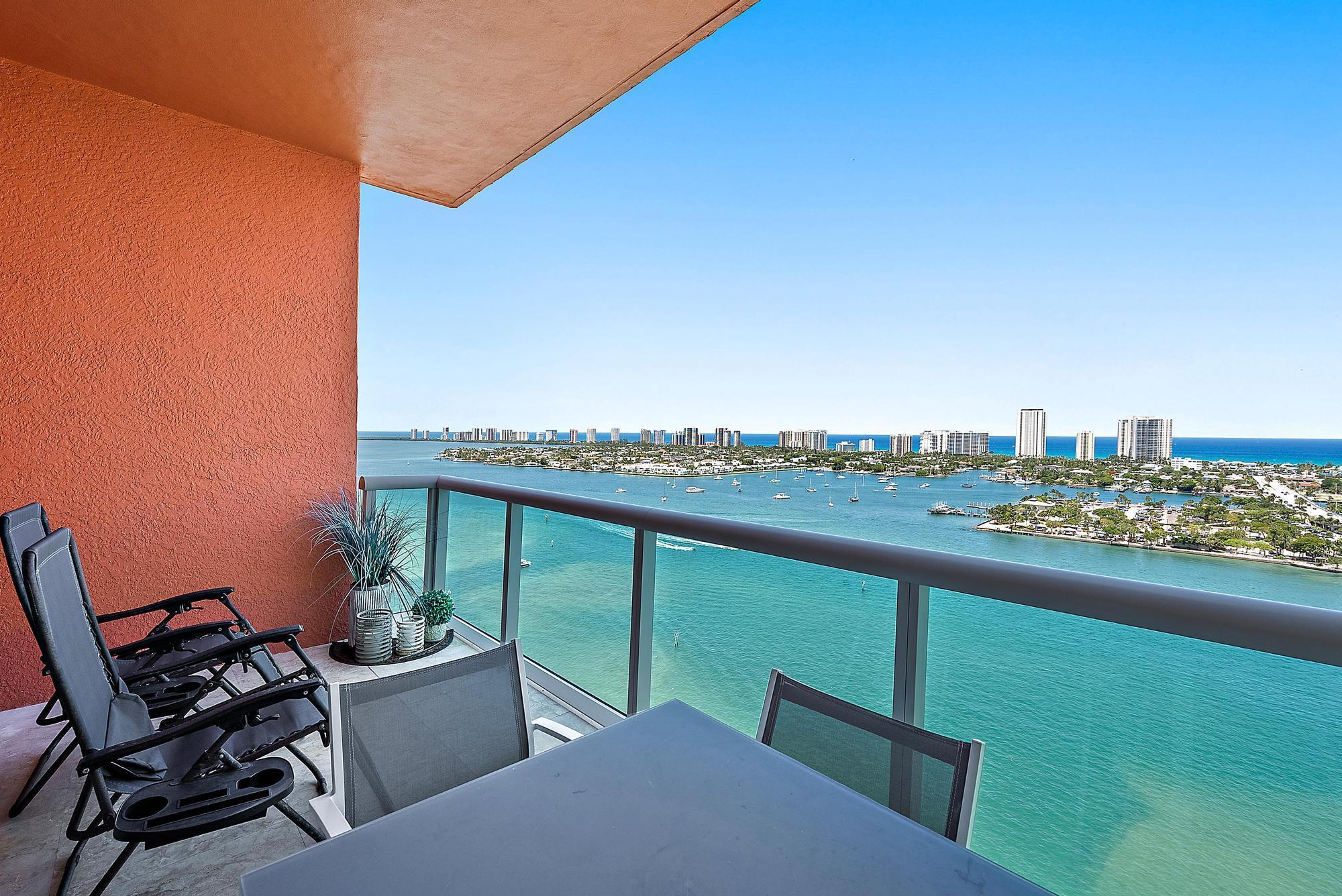 Discover luxury living at the Marina Grande Ocean Tower. This PENTHOUSE condo boasts 2 bedrooms, 2.5 bathrooms, and 1,637 square feet of open living space, featuring Italian marble floors, HIGH CEILINGS WITH SKYLIGHTS, and panoramic views of the Intracoastal, Atlantic Ocean and Singer Island.The spacious PRIVATE BALCONY is perfect for relaxing or entertaining. The gourmet kitchen is equipped with granite countertops, and stainless steel appliances. The master suite offers dual sinks, a jet tub, and separate walk-in closets. Impact-resistant windows and doors ensure peace of mind. This turn key unit is move-in ready, as it will come completely furnished upon request. Enjoy resort style amenities including a newly renovated roof top pool, jacuzzi, fitness center, tennis/ pickle ball court