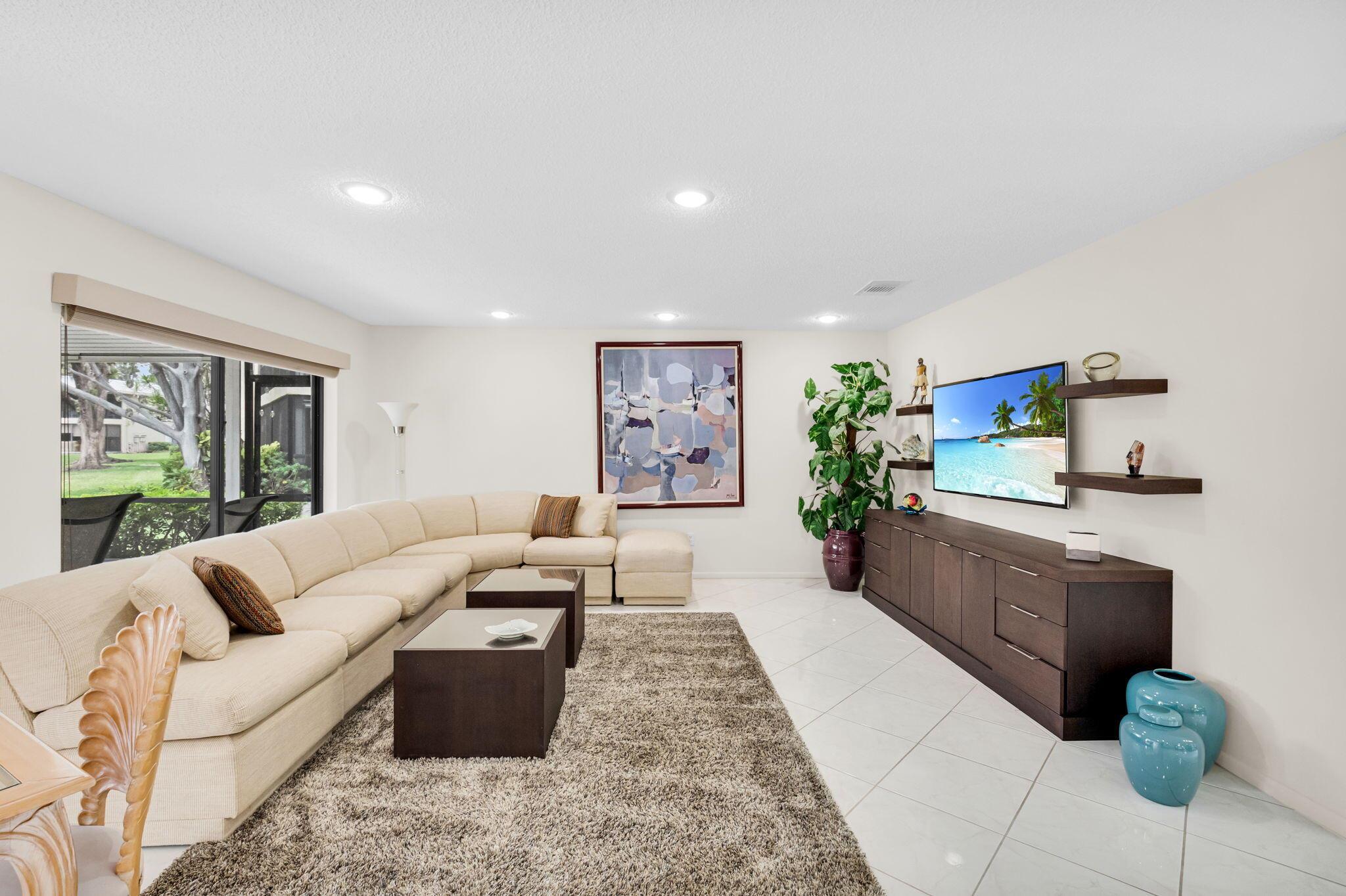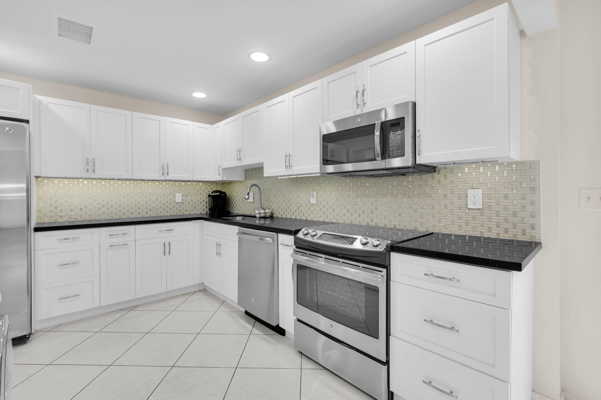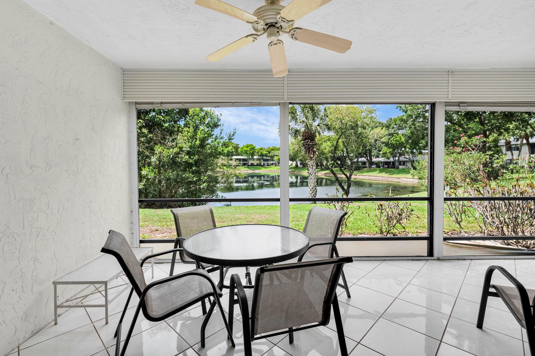 Enjoy serene water views from this light and bright first-floor condo, perfectly designed for comfortable living and effortless style. The updated white shaker kitchen features sleek stainless steel appliances and offers both functionality and charm. Neutral ceramic tile, elegantly set on an angle, flows throughout the main living areas, creating a modern and cohesive feel. An inviting bonus room, filled with natural light, offers the flexibility to be used as a third bedroom, home office, or cozy den. A perfect blend of comfort, style, and peaceful waterfront living awaits. Hunters Run is a mandatory buy-in and yearly membership, amenities-filled community, offering 3 championship 18-hole golf courses, tennis & pickle ball courts, 6 dining venues, pools, a fitness center, spa & salon,