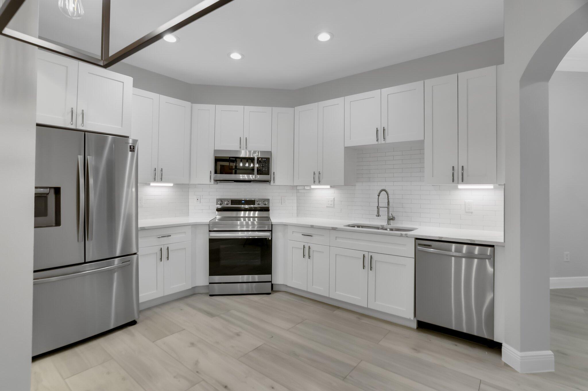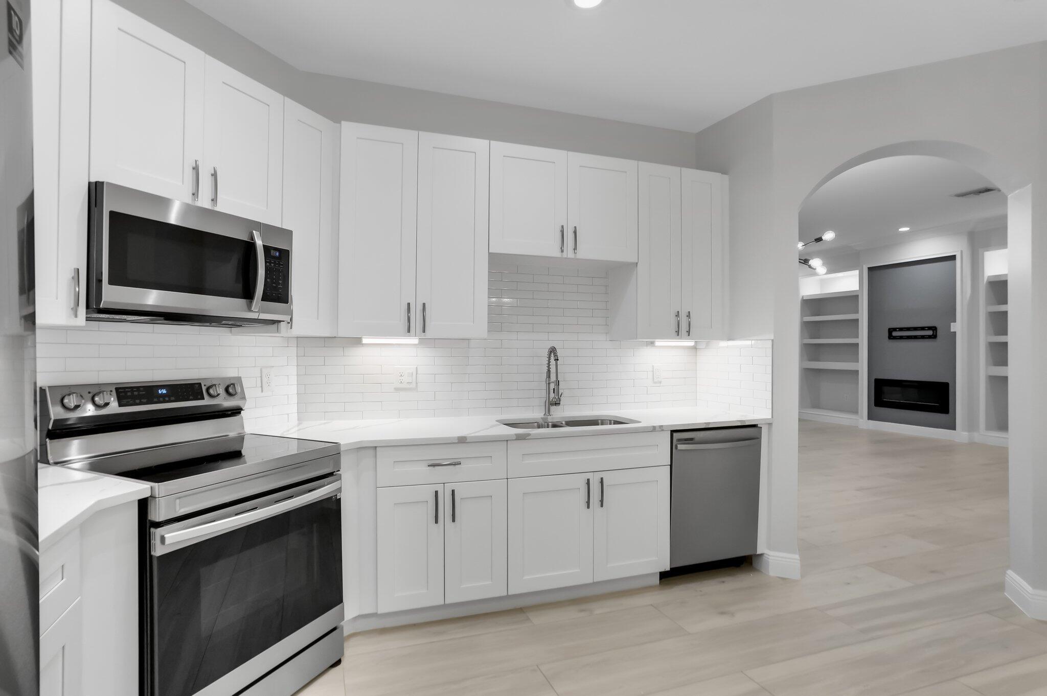 Fully Renovated Home in Prime Boynton Beach Location This beautifully updated home offers a clean, modern design with high-end finishes throughout. The brand-new kitchen features white quartz countertops, a stylish tile backsplash, and stainless steel appliances. Sleek tile flooring runs through the main living areas, complemented by new doors, lighting, and fixtures that give the home a fresh, contemporary feel.The spacious master suite includes his-and-hers closets and a fully remodeled bathroom with a large walk-in shower and modern tilework. Every detail has been upgraded to create a move-in ready space. Located in a quiet, convenient neighborhood close to shopping, dining, and major roadways, this home offers both comfort and value. Schedule your showing today.