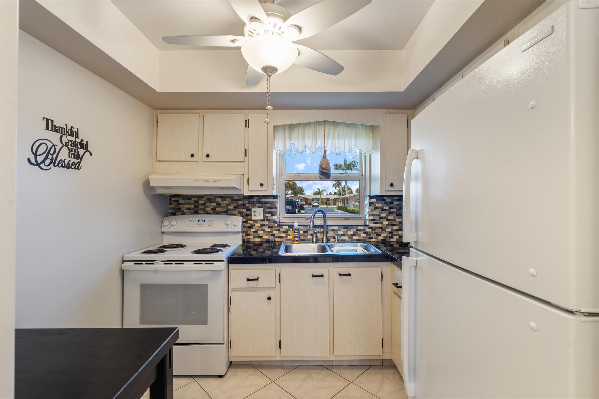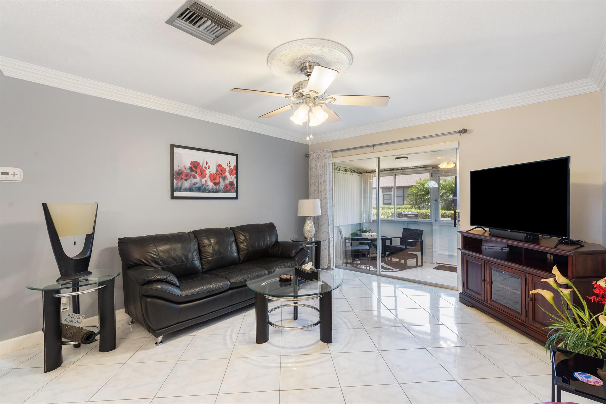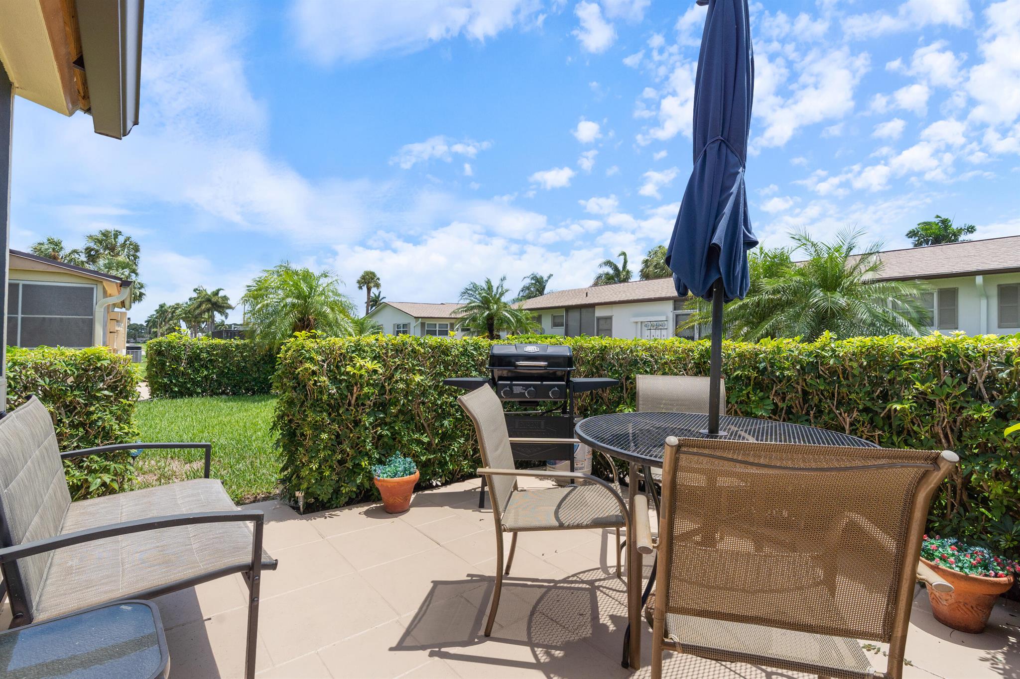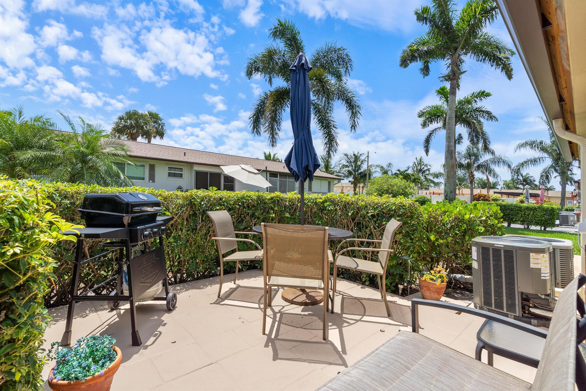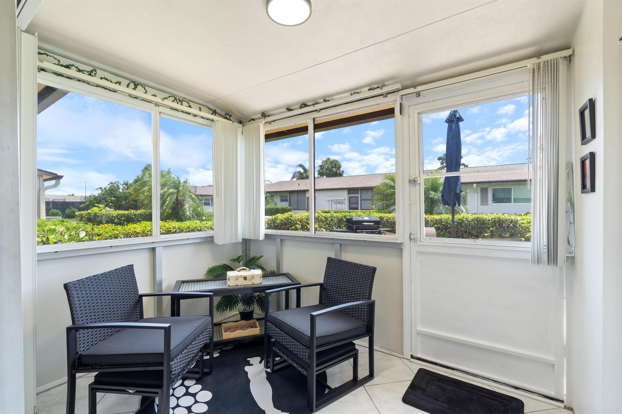 Fully furnished villa, from towels to bed linen to kitchen dishes, and brand-new futon for a guest. All furniture of quality. Bedroom closet, utility room, and porch closet offer a lot of storage space. Fridge less than 2 yrs old, new electrical panel, new roof, HVAC servicer said A/C like brand new, water heater just couple years old. One of the lowest HOA's in Florida. The unit has hurricane shutters for every window and the sliding door. Porch and patio furnished and new propane grill included. All fresh paint (including patio), and the place is immaculately clean. Community amenities include salt pool, shuffleboard, sauna, library, gym, woodwork shop, billiards, a main hall, and a meeting room. The laundry is community with new washers, dryers, utility sinks, and clothes lines outside