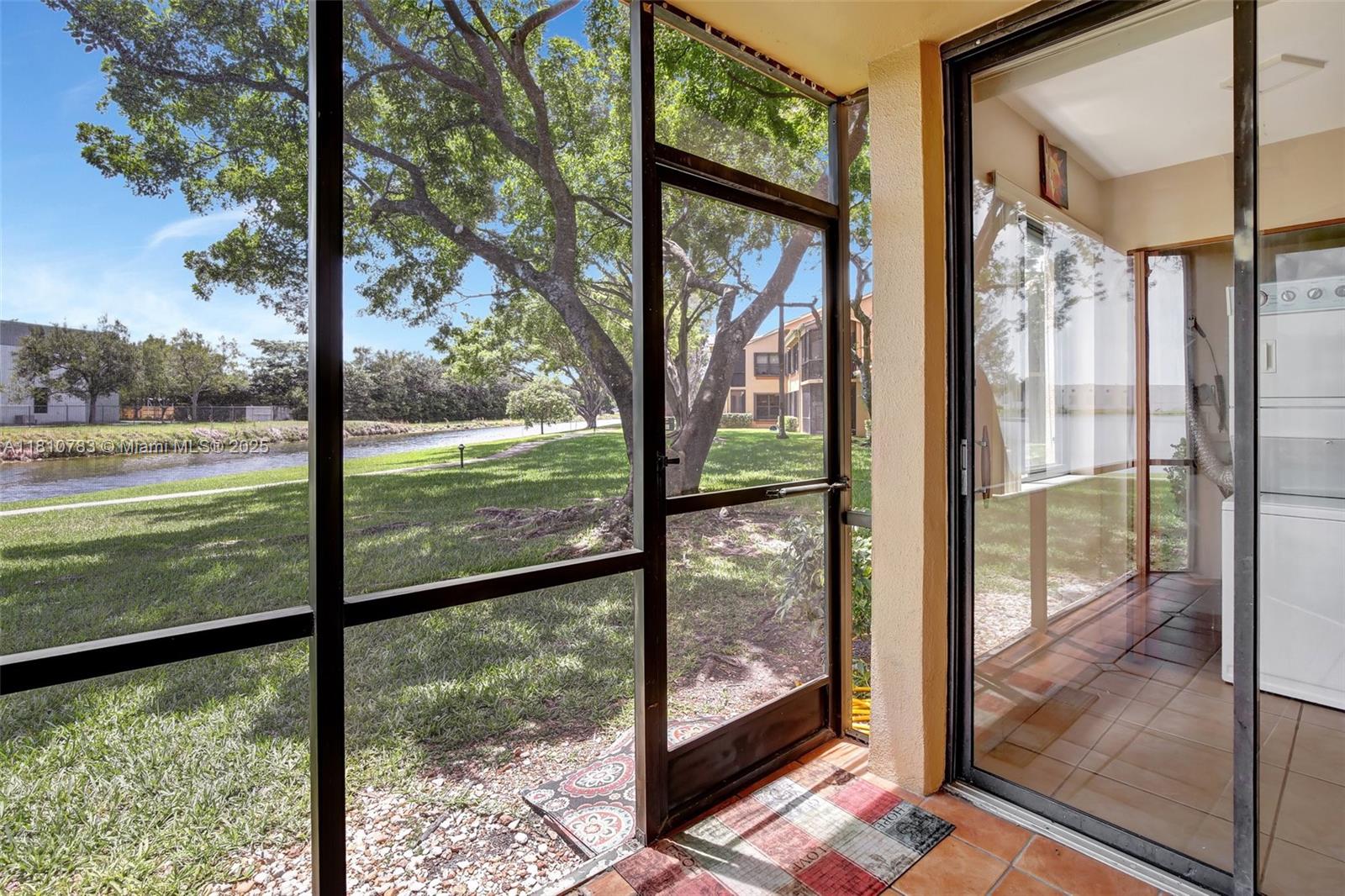 Seize a rare opportunity to own in the coveted Celebration Point of Miami Lakes! This inviting, first-floor condo offers 2 bedrooms and 2 full baths, and a brand new roof. Complemented by plentiful storage solutions and walk-in closets. Revel in modern living with newer (2021) stainless steel appliances and the convenience of an in-unit washer and dryer. Water is included. Unwind in your private screened patio with stunning water views. Indulge in the community's resort-style amenities, including a sprawling pool, 24-hour security, ample open parking, and picturesque walking/jogging paths. Perfectly situated minutes from the vibrant Main Street’s entertainment and within a premier school district. This unit is a gem that won't last long. Experience the finest of Miami Lakes living today!