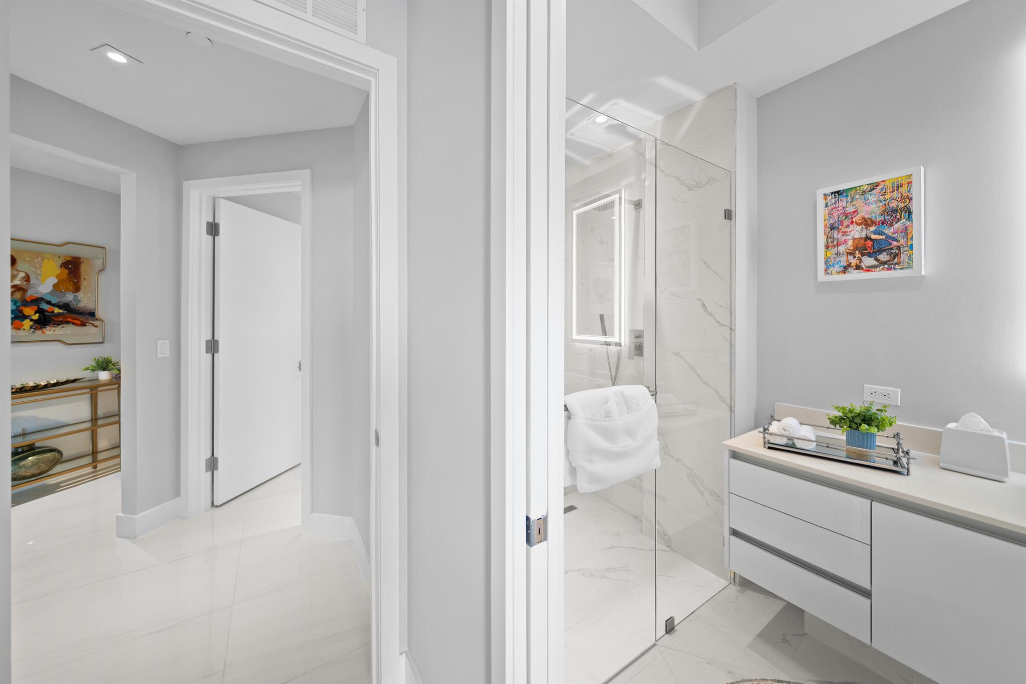 Welcome to your personal paradise at Amrit Ocean Resort and Residences in Singer Island, Florida. This stunning corner condo offers mesmerizing ocean and intracoastal views, complemented by a wraparound balcony where you can indulge in the beauty of passing boats and spectacular sunrises and sunsets. Step inside this sophisticated 2-bedroom, 3-bath haven, featuring expansive 10-foot floor-to-ceiling windows that bathe the space in natural light. The contemporary kitchen, equipped with top-tier Miele appliances, allows you to create culinary masterpieces while enjoying the vibrant waterfront activities. As a resident, revel in luxurious amenities including an ocean-view restaurant, spa, gym, and beauty salon, all while benefiting from valet parking and room service.