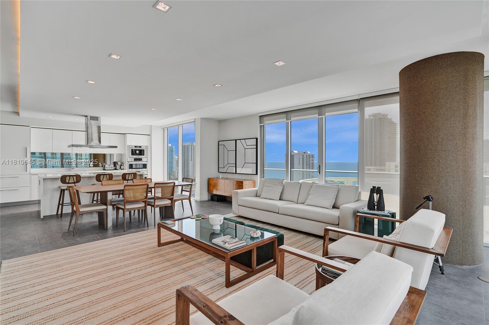 Experience turnkey luxury in this fully furnished 3BD/3.5BA corner residence on a high floor with SE exposure and breathtaking panoramic views of the Intracoastal, ocean, and skyline. This coveted line boasts 10ft ceilings, impact glass, a spacious wraparound balcony, and elegant upgrades including custom millwork, LED cove lighting, textured designer wallpaper, floating vanities, motorized shades, and high-end finishes throughout. The sleek kitchen features European appliances, while the spa-like primary suite offers a walk-in closet and serene ambiance. Includes storage, 1 garage space + valet. Enjoy resort-style amenities: Beach Club, pools, gym, spa, theater, concierge & more—all just steps from world-class shopping, dining, and the beach.