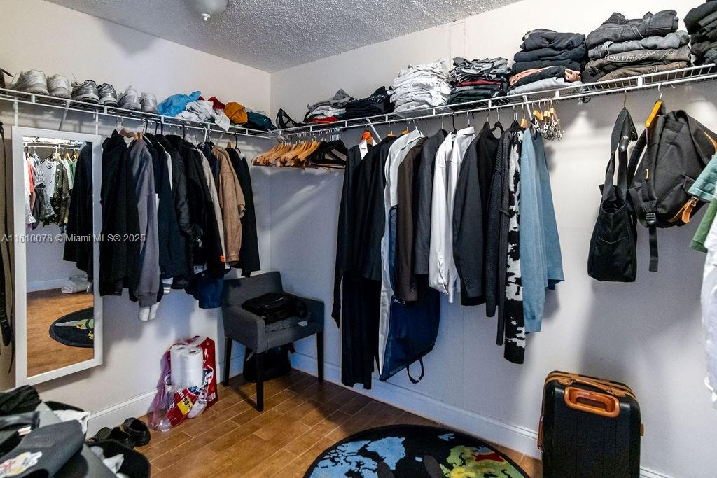 Hard-to-find 3-bedroom model at Parkside – Super spacious with big bedrooms, each with its own walk-in closet. The master bedroom is huge and has an extra-large walk-in closet (11' x 7'2" – seriously!). Tile floors throughout, in-unit washer and dryer, and accordion shutters for added peace of mind. Comes with one assigned parking spot, a decal for a second car, and plenty of guest parking too. The community features a pool, clubhouse, and tennis court. Plus, the 40-year certification is already done!