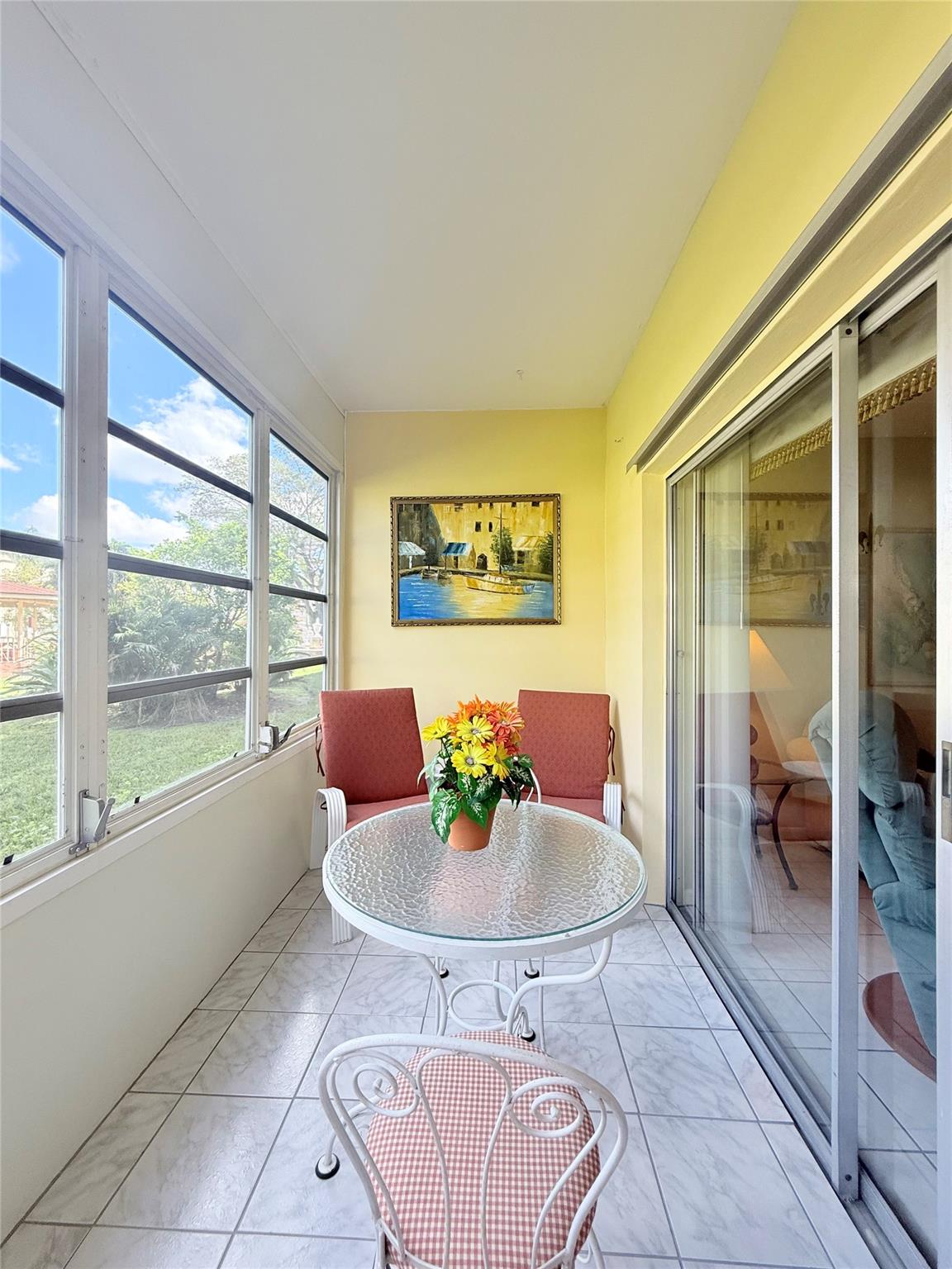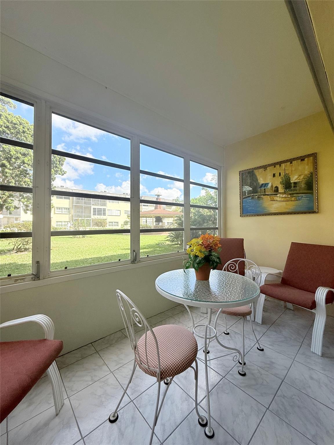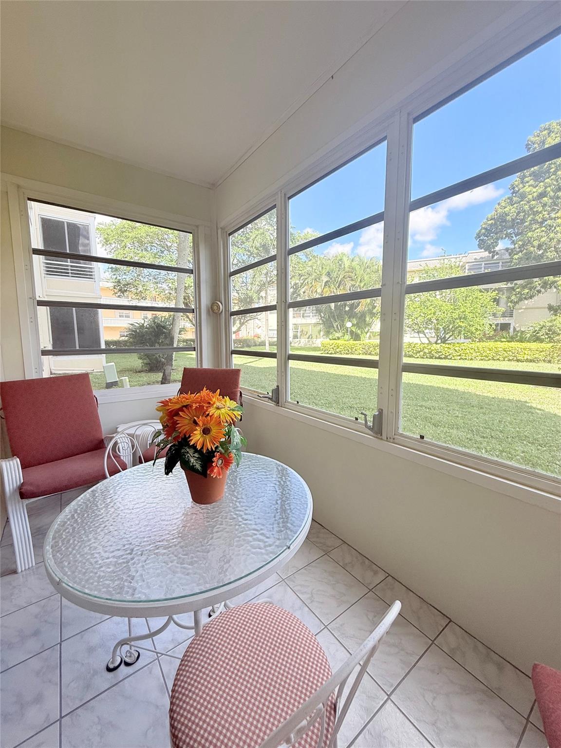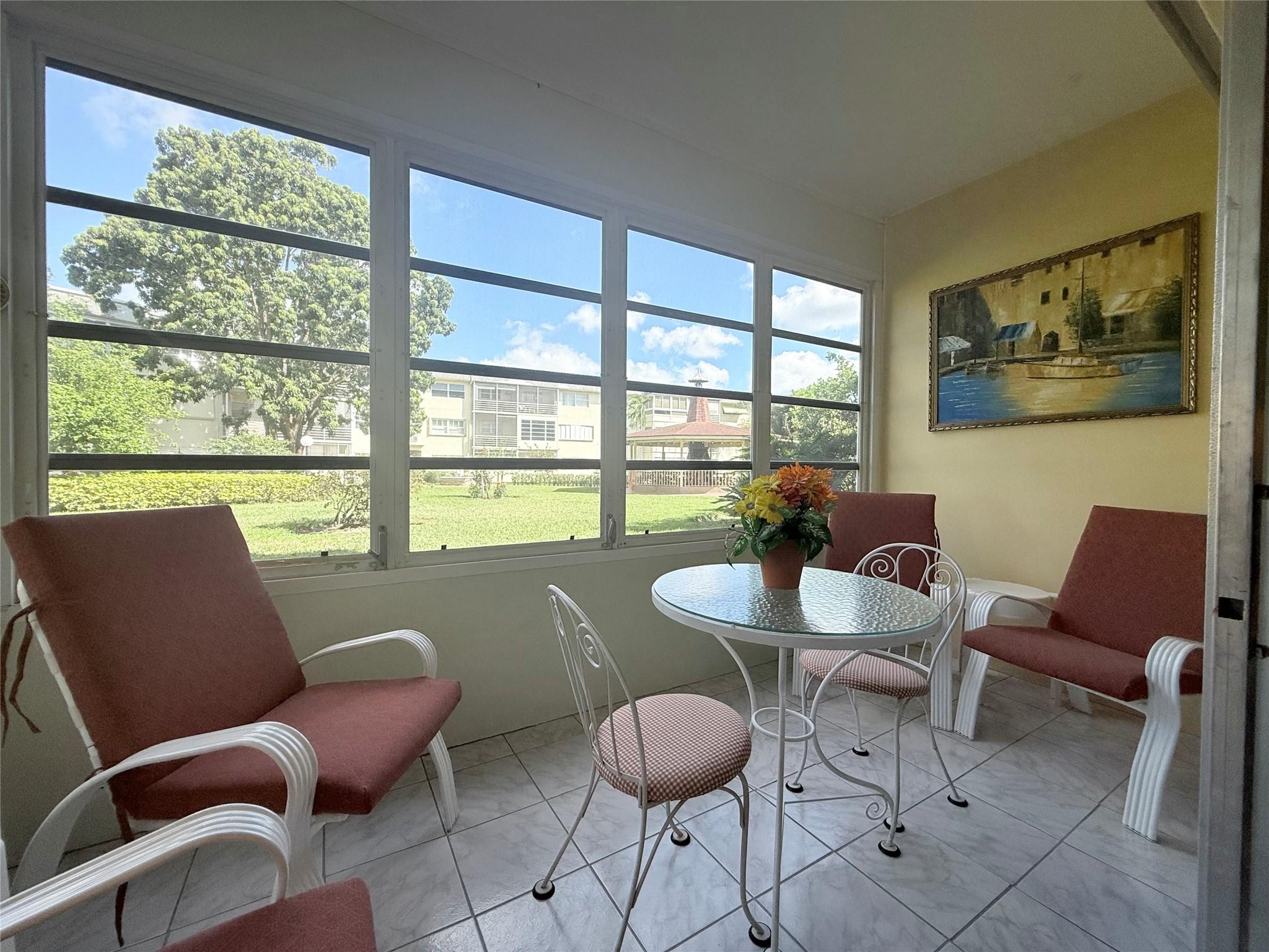 A must see! BRIGHT, CLEAN, and WELL-MAINTAINED 2 bed, 2 bath 1st-floor unit. FULLY FURNISHED (Turn key) with RENOVATED KITCHEN featuring white cabinets/appliances and ample storage. Updated bathrooms (2022). IMPACT WINDOWS in bedrooms, TILE throughout. Living room & 2nd bedroom have SOFA BEDS. Spacious primary bedroom with full wall of closets. Enclosed Florida room overlooks garden. Building is well-kept—roof 2023, 50-year inspection done. 55+ community with 2 POOLS, BBQ areas, FITNESS CENTER, clubhouse w/ billiards, library. Steps from Lauderhill 9-hole GOLF COURSE.