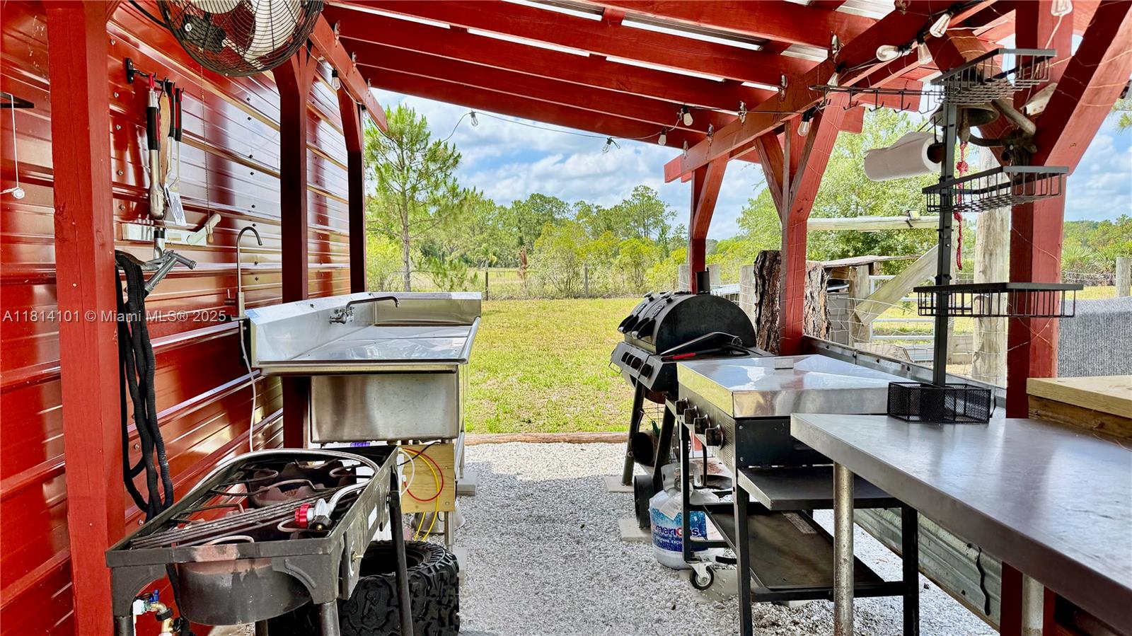 Escape to your own secluded haven on a sprawling 6.31-acre parcel with no native land restrictions, tucked away in a peaceful cul-de-sac with no neighbors on three sides. This rare property delivers true tranquility, unmatched privacy, and effortless access to nature. The 1,484 sq. ft., fully furnished 3-bedroom, 2-bath farmhouse-style home is designed for comfort and functionality: Primary suite with a king-sized bed, large closet, armoire, and a serene woodland-view office nook. Luxurious ensuite bathroom featuring a soaking tub, oversized shower, dual sinks, and a linen cabinet. Second bedroom with bunk beds, a futon, and a spacious closet. Third bedroom with a queen bed, closet, and armoire. Step outside and enjoy amenities that elevate everyday living: including a barn and kitchen.