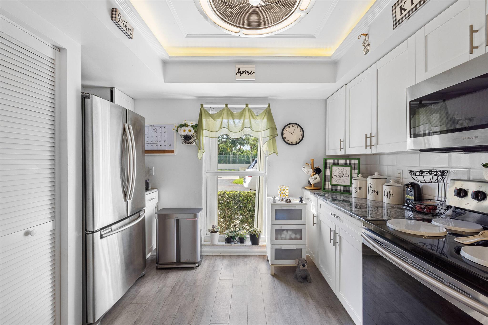 Step into sophisticated style and effortless living in this beautifully reimagined condo tucked behind secure, manned gates. Spacious three-bedroom offering an ideal balance of openness and privacy. The heart of the home--a sleek, modern kitchen--boasts quartz countertops, premium appliances, and seamless flow into the expansive living and dining areas. Porcelain wood-look tile flooring runs throughout, adding warmth and durability. Enjoy tranquil garden views from the oversized, enclosed patio--an ideal spot for relaxing or entertaining. Both bathrooms have been fully renovated with contemporary finishes, including quartz vanities, stylish subway tile, and designer fixtures. Freshly painted and move-in ready, this home is the perfect blend of function, comfort, and refined design.