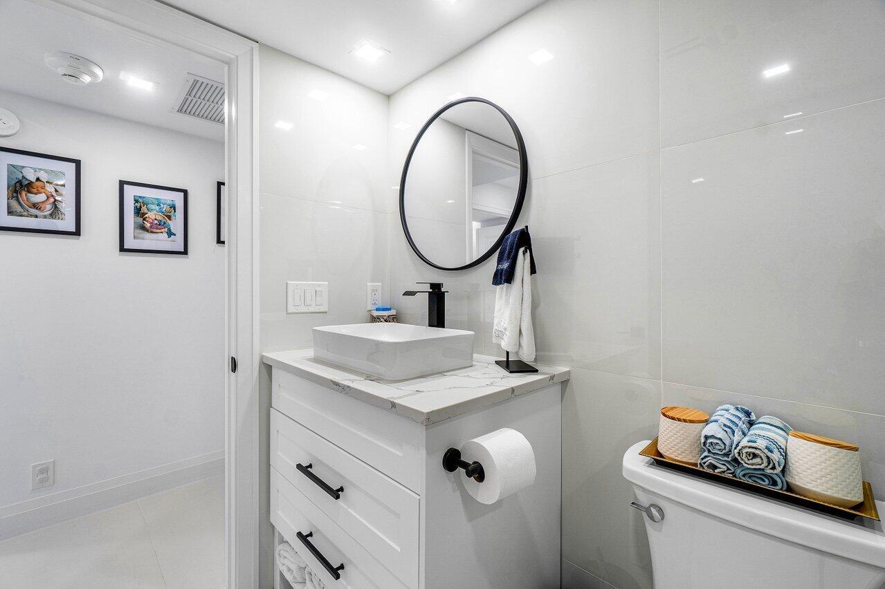 Welcome to Your Dream Condo at Lake House South! Nestled in the heart of Boca Raton, this stunning two-bedroom, two-bathroom condo offers the perfect blend of coastal elegance and modern luxury, right on the shores of picturesque Lake Boca. Just steps away from the ocean, this beautifully redesigned residence invites you to experience the ultimate in waterfront living. Spanning an impressive 1,474 square feet, you are greeted by exquisite porcelain flooring that flows seamlessly throughout the space, creating a bright and airy atmosphere. The open-concept layout is bathed in natural light, enhanced by impact windows that offer both safety and stunning views of the serene surroundings. The living area is equipped with motorized shades. This impeccable property is a must see!!!