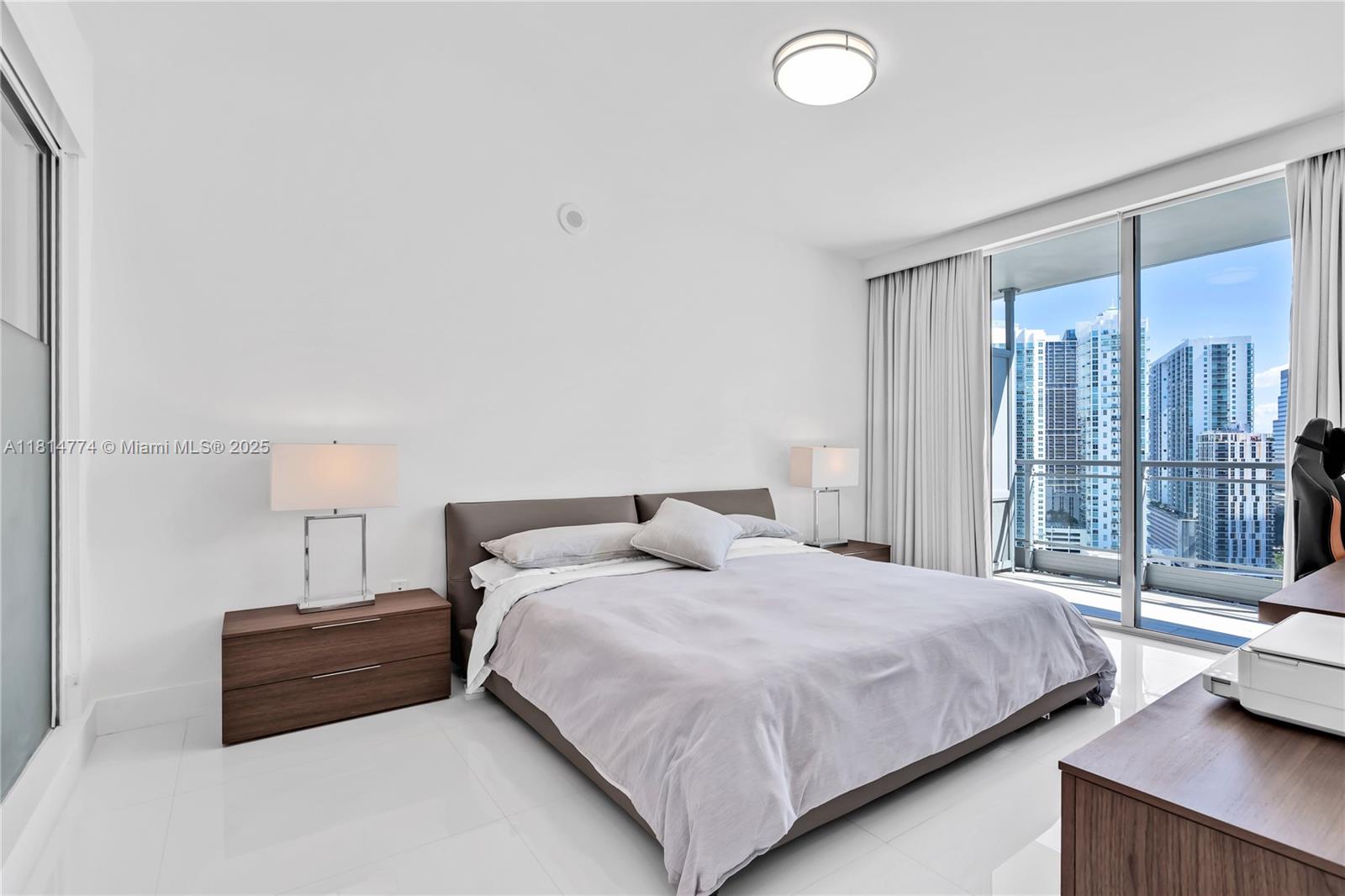Unparalleled: high-floor unit at The Ivy, a gated Riverfront community with stunning Miami River, Brickell City Centre & skyline views. Spacious 2-bed, 2-bath with split floor plan, 32x32 porcelain tile, large terrace, custom doors, molding, recessed/LED lighting, floor-to-ceiling impact windows. The kitchen features glass tile backsplash & stainless-steel appliances. Renovated baths, California closets, blackout curtains, modern lights, Italian floating wall unit. Sold unfurnished. Includes tandem parking for 2 cars & 2 storage units. Resort amenities: infinity-edge & lap pools, spa, gym, BBQ, business center, playground, cable/internet, 24-hr security. Steps from BCC & expressways.