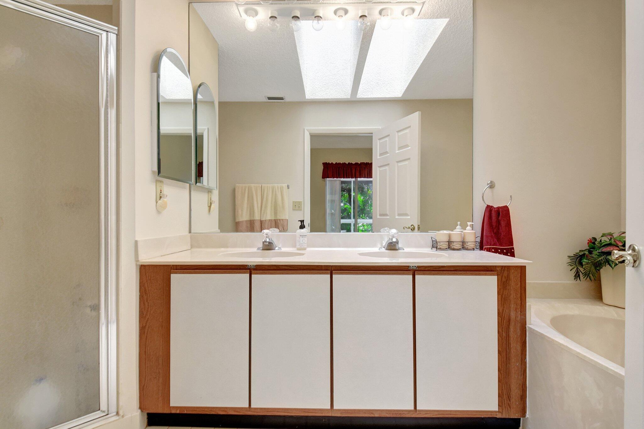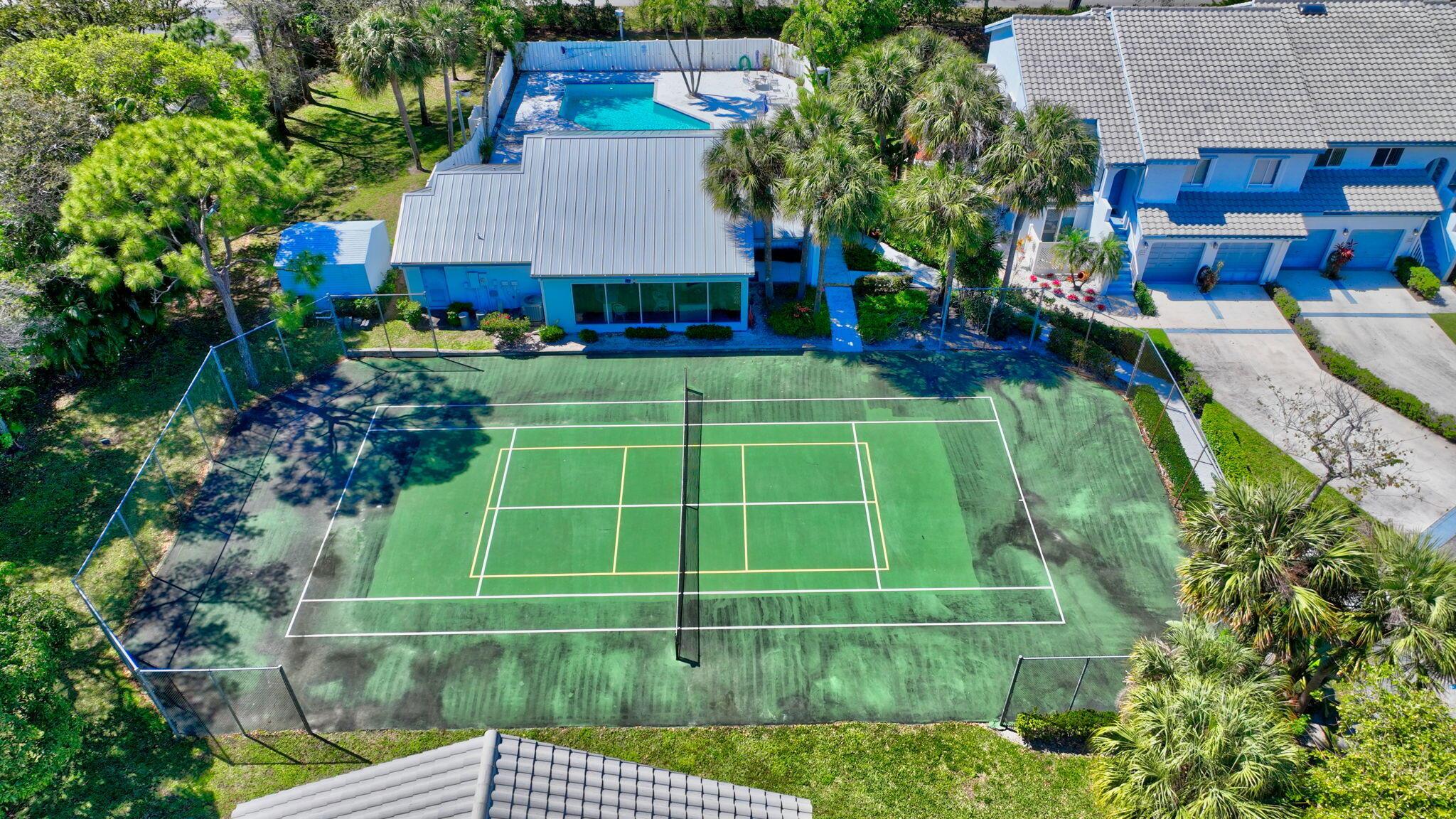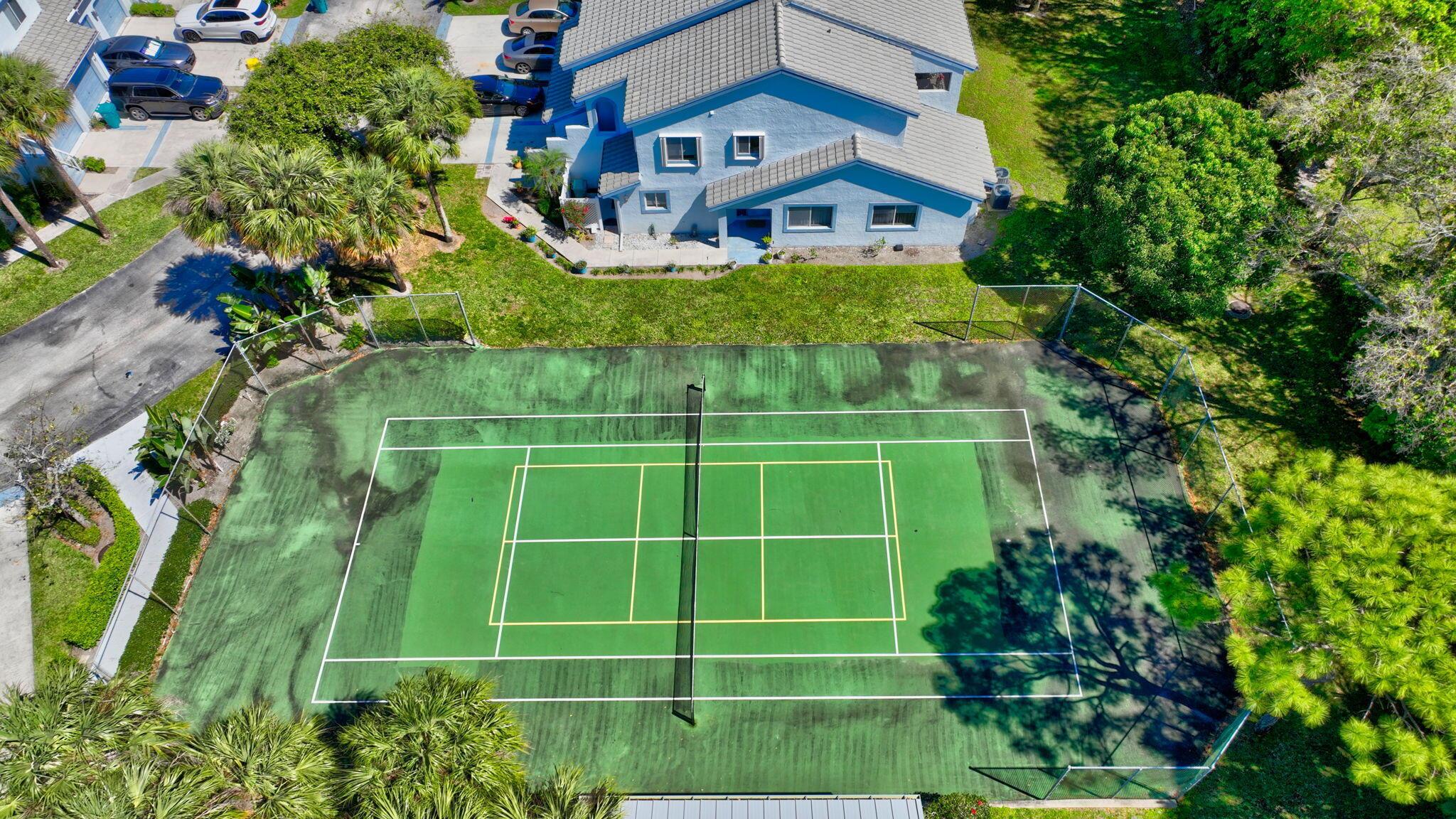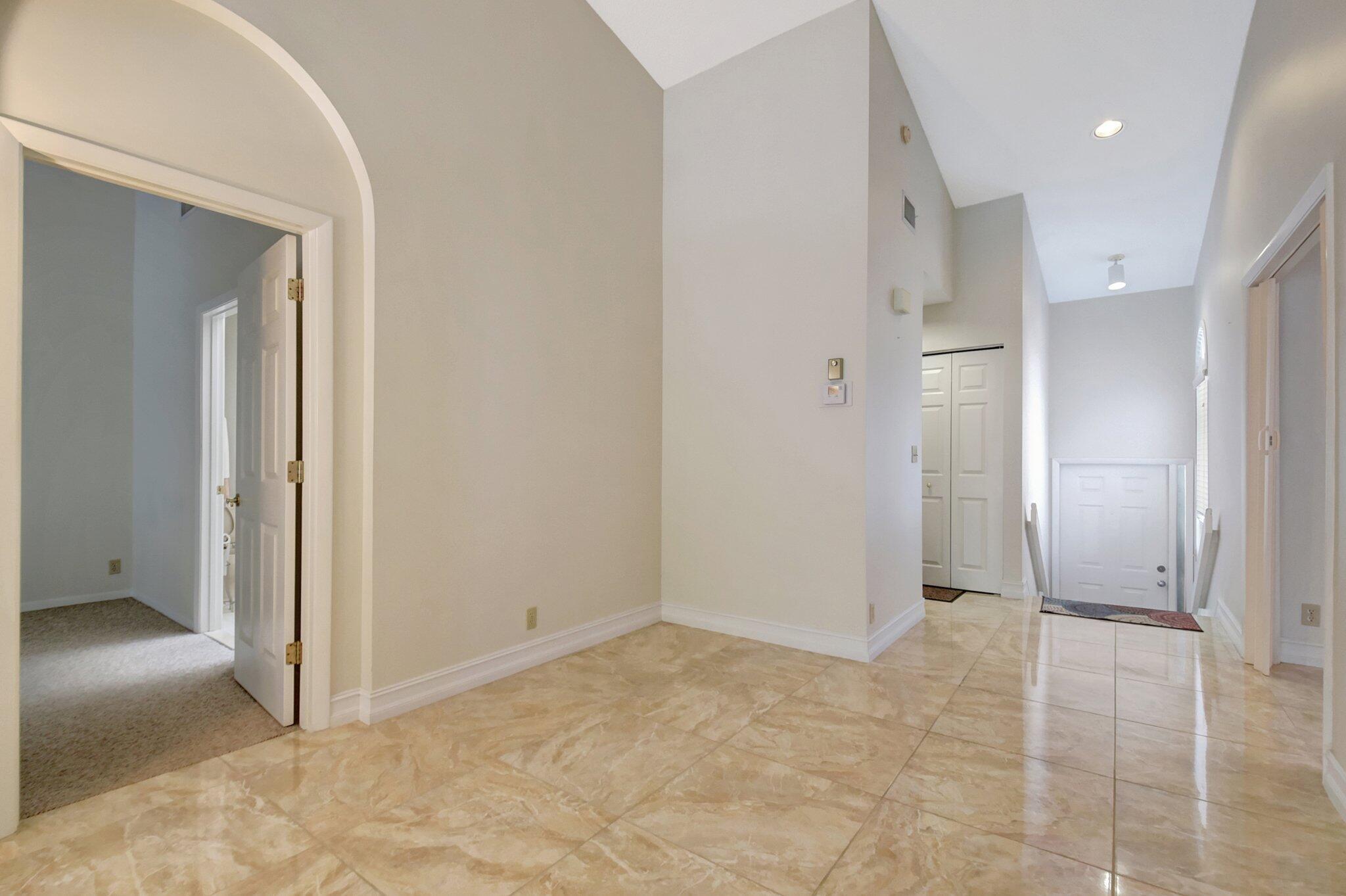Enjoy serene water views from the lanai, which can be enjoyed as either an open-air or air-conditioned space. This beautifully remodeled second-floor condo/townhome features a split-bedroom floor plan and the convenience of a private garage. The kitchen is a standout with ample cabinetry, granite countertops, and large, modern tile flooring that extends through the main living areas. Vaulted ceilings throughout create a bright and open atmosphere, making the home feel spacious and inviting. Meticulously maintained with a new roof installed in 2023. Community Pool & Tennis Court