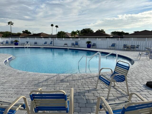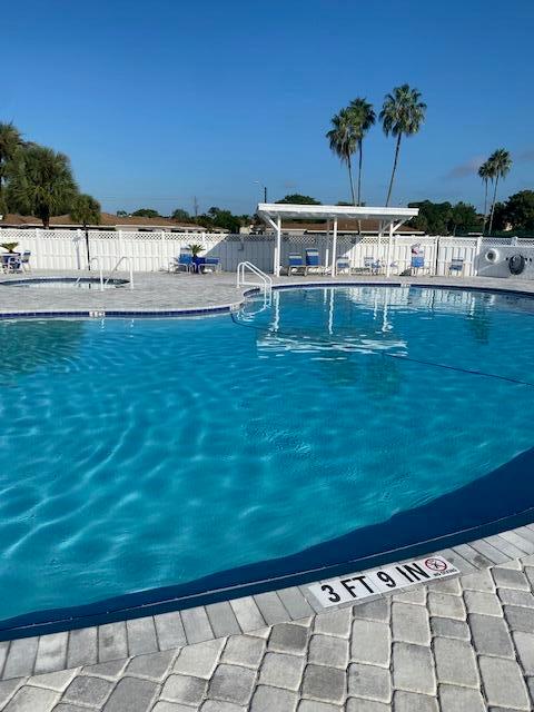 55+ VILLA, COVERED CARPORT, FRIENDLY COMMUNITY WITH LOTS OF ACTIVITIES, BINGO, SHOWS, CARDS, BILLIARDS, PUTTING GREEN, TENNIS, BOCCE, PICKLEBALL, FITNESS, INCLUDES CABLE/HBO AND INTERNET, PEST CONTROL, VERY LOW MAINTENANCE OF $290 PER MONTH. COMMUNITY HAS OVER A MILLION IN RESERVE. WALKING DISTANCE TO PUBLIX SHOPPING CENTER, MOVIES, DUNKIN DOUGHNUT ,WALGREENS, WORSHIP,RESTAURANTS.1 MILE TO TURNPIKE, 3 MILES TO 95, 5 MILES TO OCEAN.