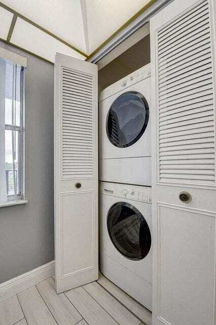 Light and bright, top floor two bedroom and two bath condo in elevator building. Enjoy relaxing water & fountain views from the screened patio. All tiled throughout, with eat in kitchen, updated cabinets & countertops. Huge walk-in closet & full bathroom with stall shower in the primary suite. Washer and dryer in unit! Deauville boasts a recently renovated & completed clubhouse with exercise room, theatre, pool and lots more. Walk to shopping, McDonalds, Duncan Donuts, Restaurants & more.15-20 minutes drive to the beach and trendy downtown Delray Beach.
