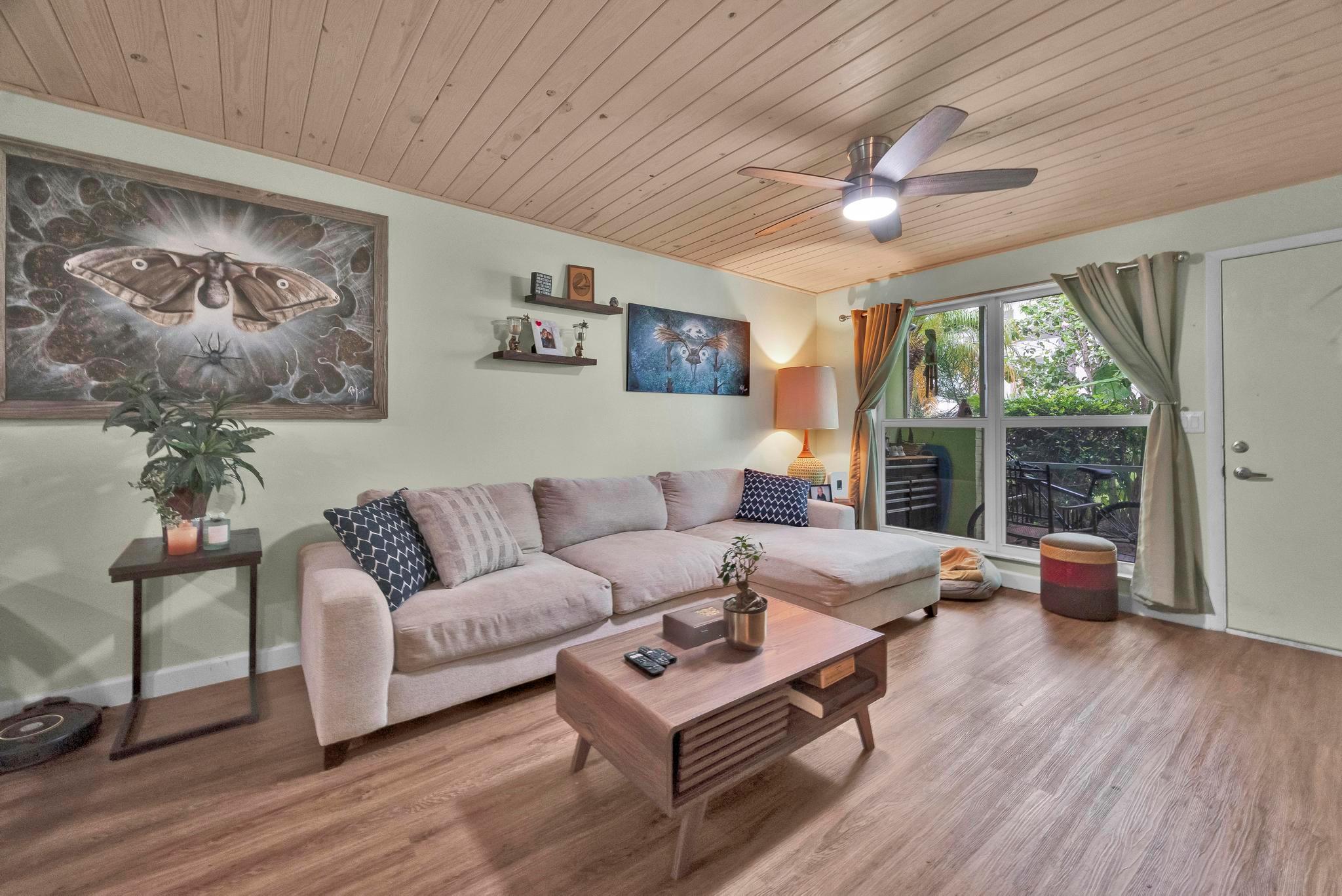 Fall in love with this stylishly updated 2 bed, 1 bath single-story condo in the welcoming, all-ages community of Kingman Acres II. From the moment you step inside, you'll notice the luxury waterproof vinyl plank floors, the gorgeous modern kitchen with sleek cabinetry and fixtures, and the spa-like bathroom with fresh, contemporary finishes. Sip your morning coffee on the private screened-in front porch, surrounded by lush greenery, or head out to enjoy the nearby beaches, shops, and restaurants just minutes away. Take advantage of the community pool and clubhouse, with HOA covering water, trash, exterior maintenance, and more. One small pet (up to 20lbs) is welcome. No trucks or motorcycles allowed. Move in and start living the Stuart lifestyle you've been dreaming of!