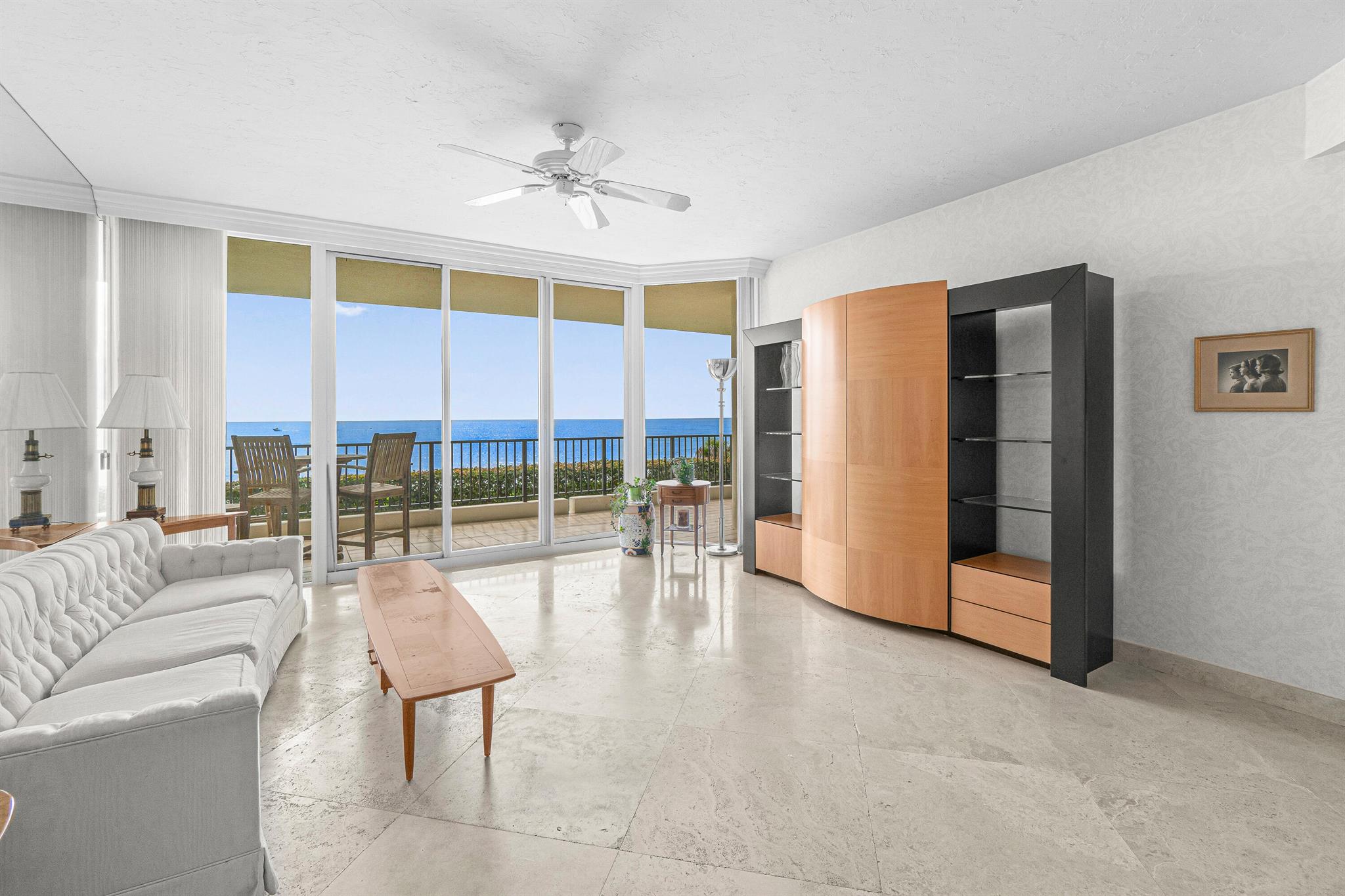 Welcome to Waterfront on the Ocean! RARELY AVAILABLE PRIVATE ONE CAR GARAGE AVAILABLE WITH PURCHASE OF CONDO. Wake up every day to stunning views of the ocean in one of the most coveted and peaceful coastal communities in Palm Beach County. Right on the sands of Juno Beach, this 2nd-floor condo in this boutique building offers a front-row seat to some of the quietest and most pristine beaches in South Florida, far from the crowds, yet close to everything.From the moment you step off the elevator into your private foyer, you're greeted by a light-filled coastal sanctuary featuring hand-painted French rag wash wall treatments and marble floors throughout.