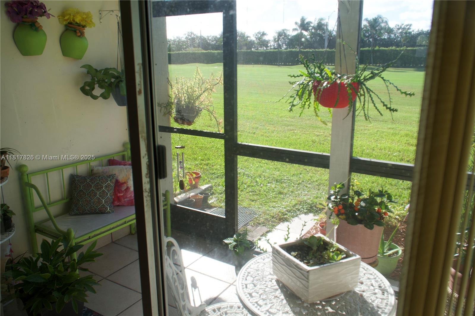 Gold Course View/Prime 1st floor corner unit/NO RECREATION LEASE a valuable advantage for homeowners. Ready to move in, cozy & spacious 1st floor unit with peaceful views of the golf course from your private screened-in porch. This desirable corner unit is just steps from the laundry facility, a dedicated parking space in front for easy access. Enjoy tile flooring throughout, hurricane shutters, newer AC (only 3 years old), tiled patio & your own kettle garden, perfect for herbs, flowers or simply relaxing in your personal green space . Enjoy this great community with 24 hrs security, golf course, 14 tennis courts, heated pool, theater, fitness center and restaurants. Everything within walking distance. Centrally located, near Pembroke Lakes Mall, restaurants and Memorial Hospital.