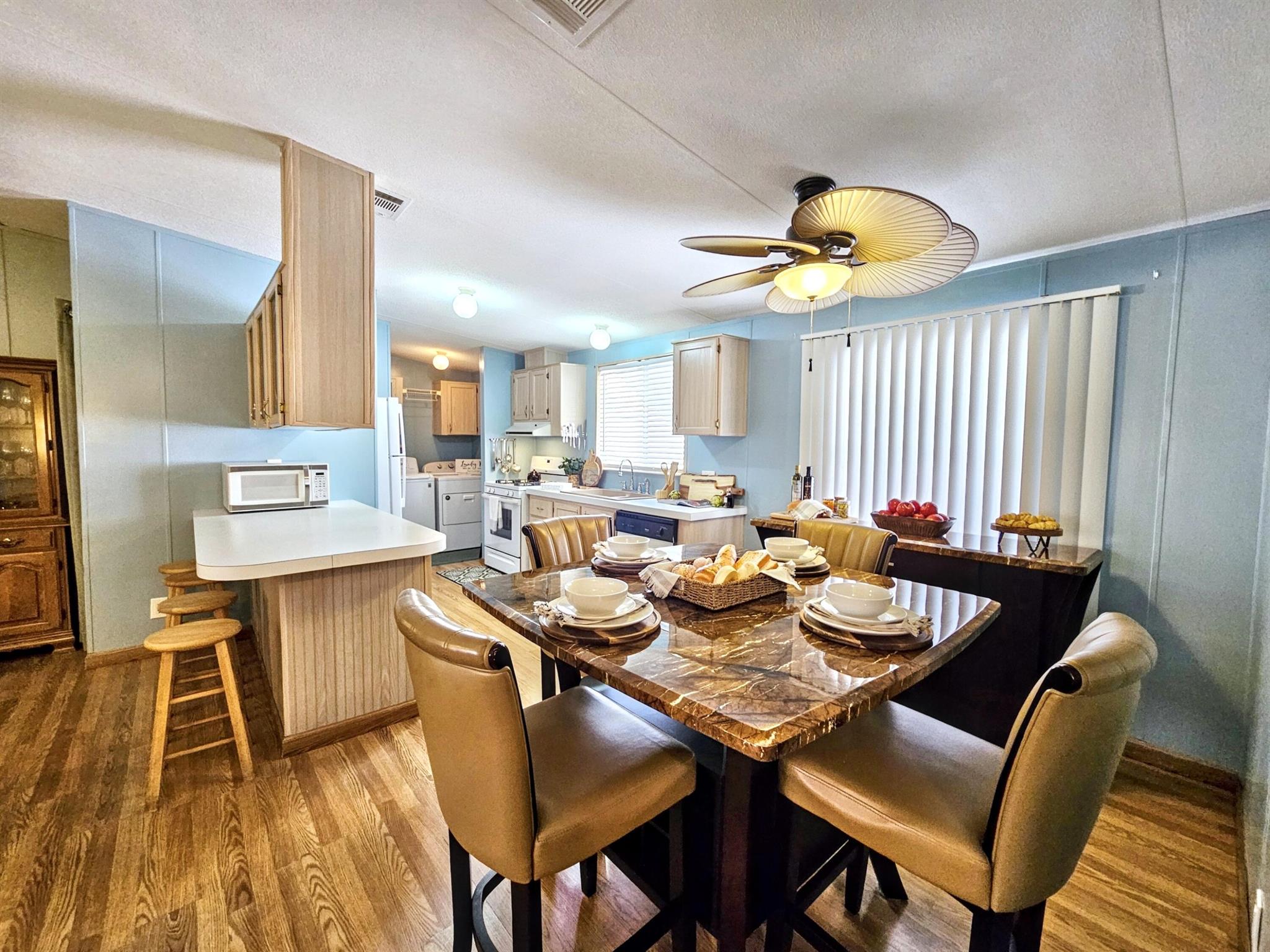 Own the land and the home in this desirable gated community! This fully furnished 3-bedroom, 2-bath mobile home offers comfortable living in a community where you own both the land and the home--no lot rent! Featuring quality furnishings and a desirable split-bedroom layout, this home is move-in ready.